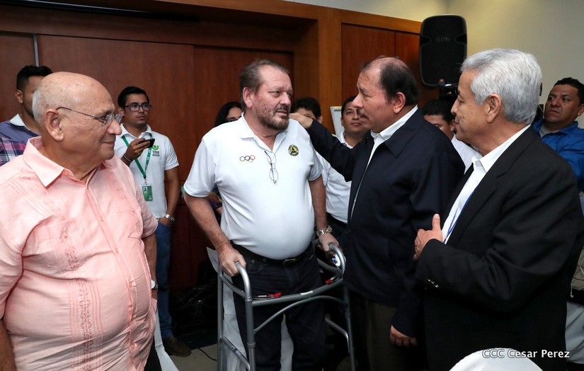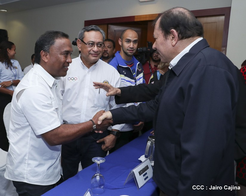 El Presidente de la República, Comandante Daniel Ortega, se reunió este sábado con los delegados al Foro Regional de Solidaridad Olímpica, un evento internacional que se lleva a cabo en Nicaragua y que aglutina 20 países de América.