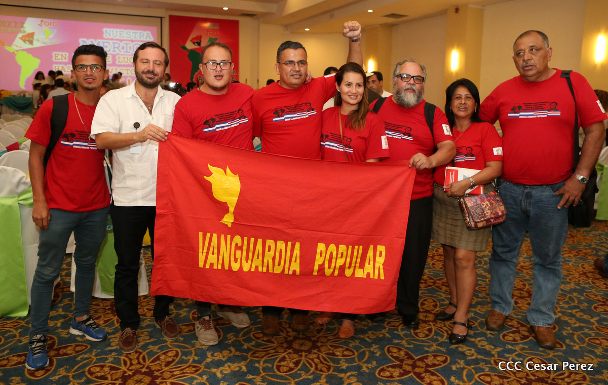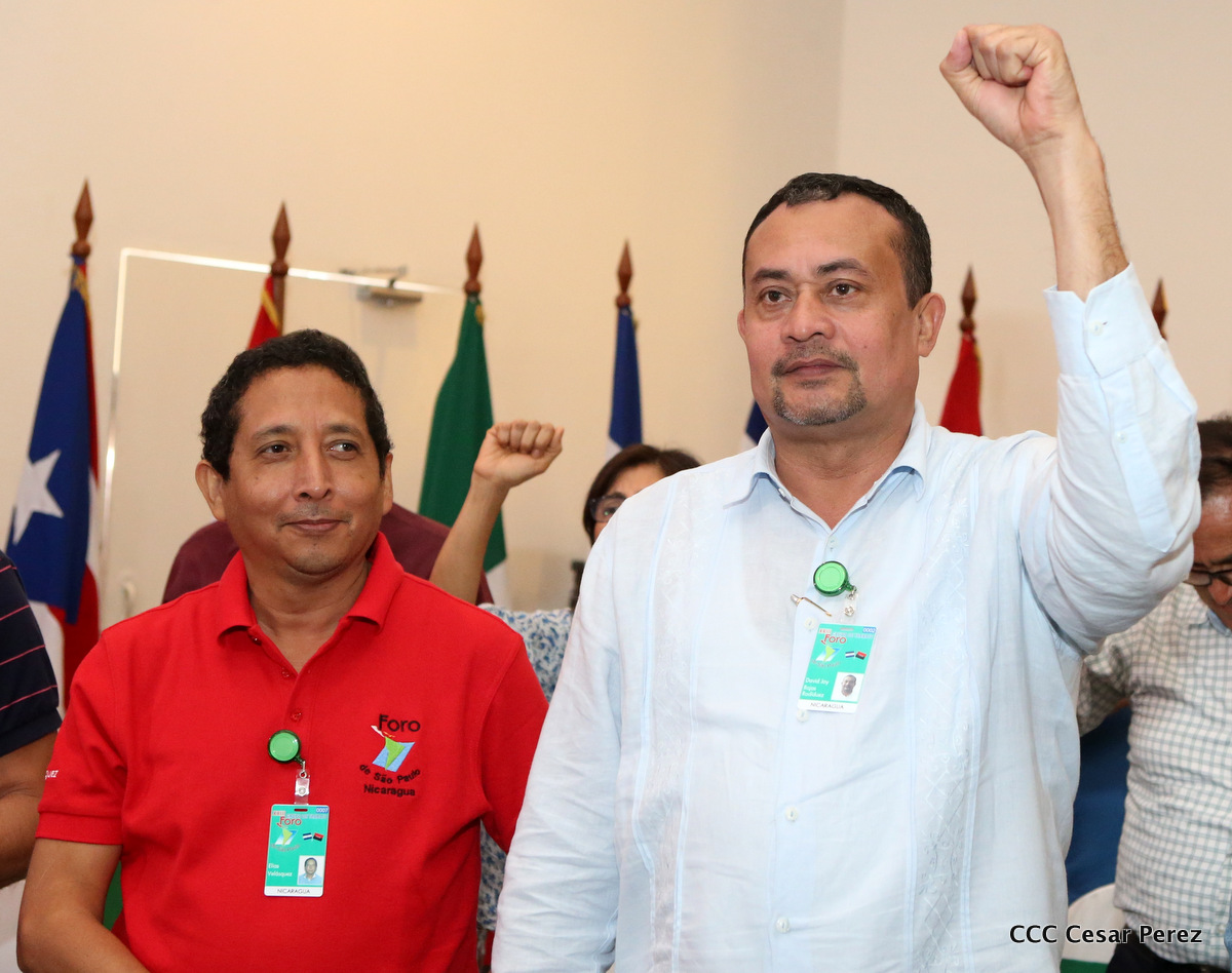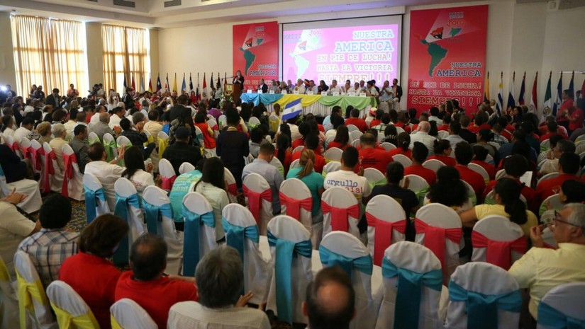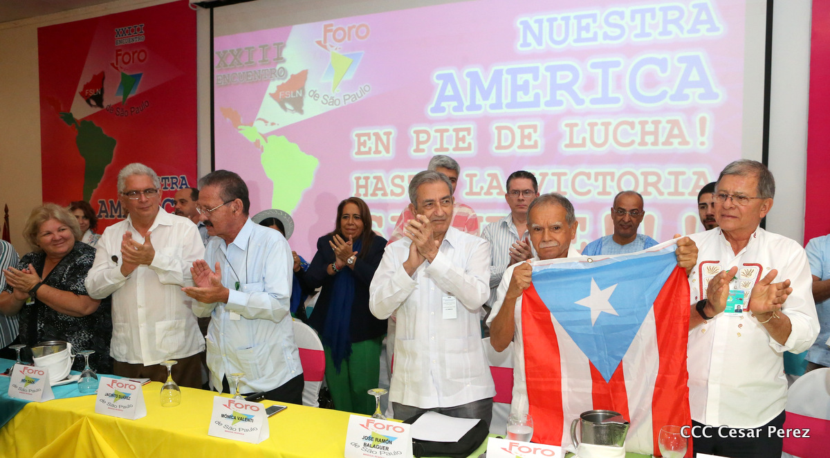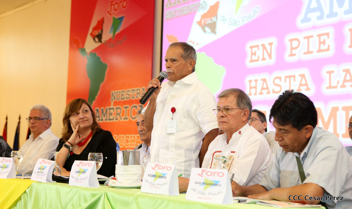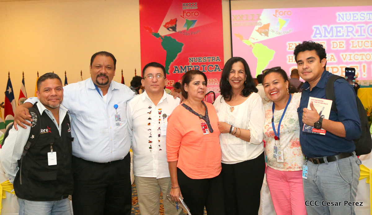 Representantes de partidos políticos y movimientos sociales de 22 países latinoamericanos, participan en el XXIII encuentro del Foro de Sao Paulo, que sesiona en Managua, en saludo al 38 aniversario del triunfo de la Revolución Popular Sandinista.