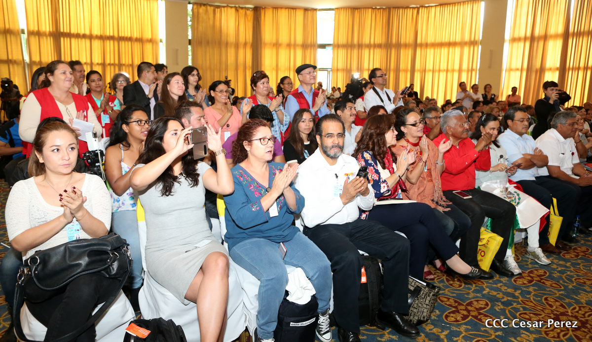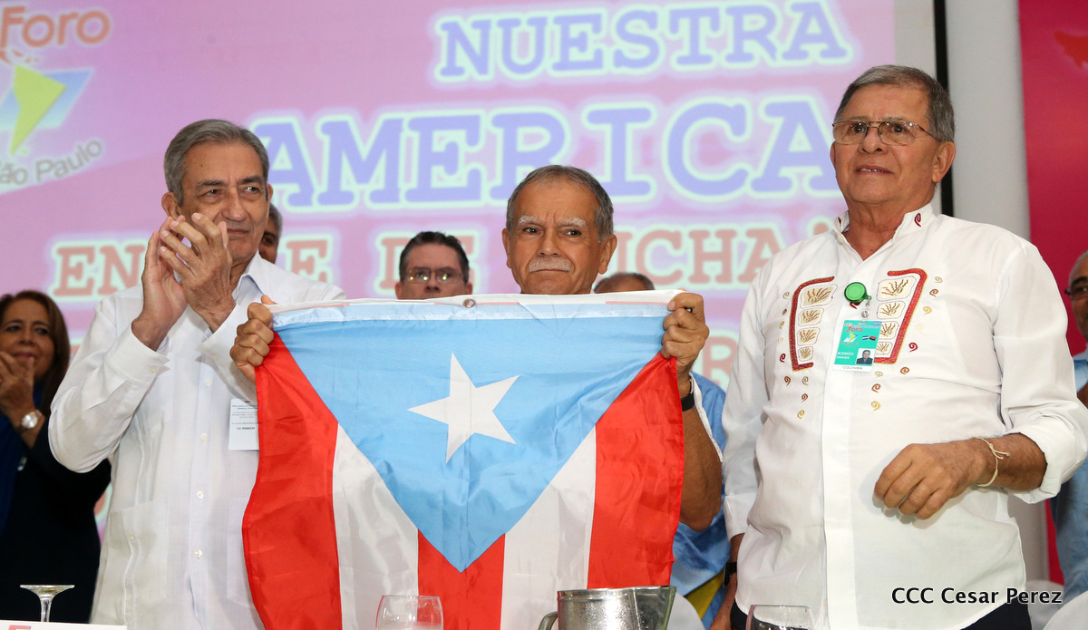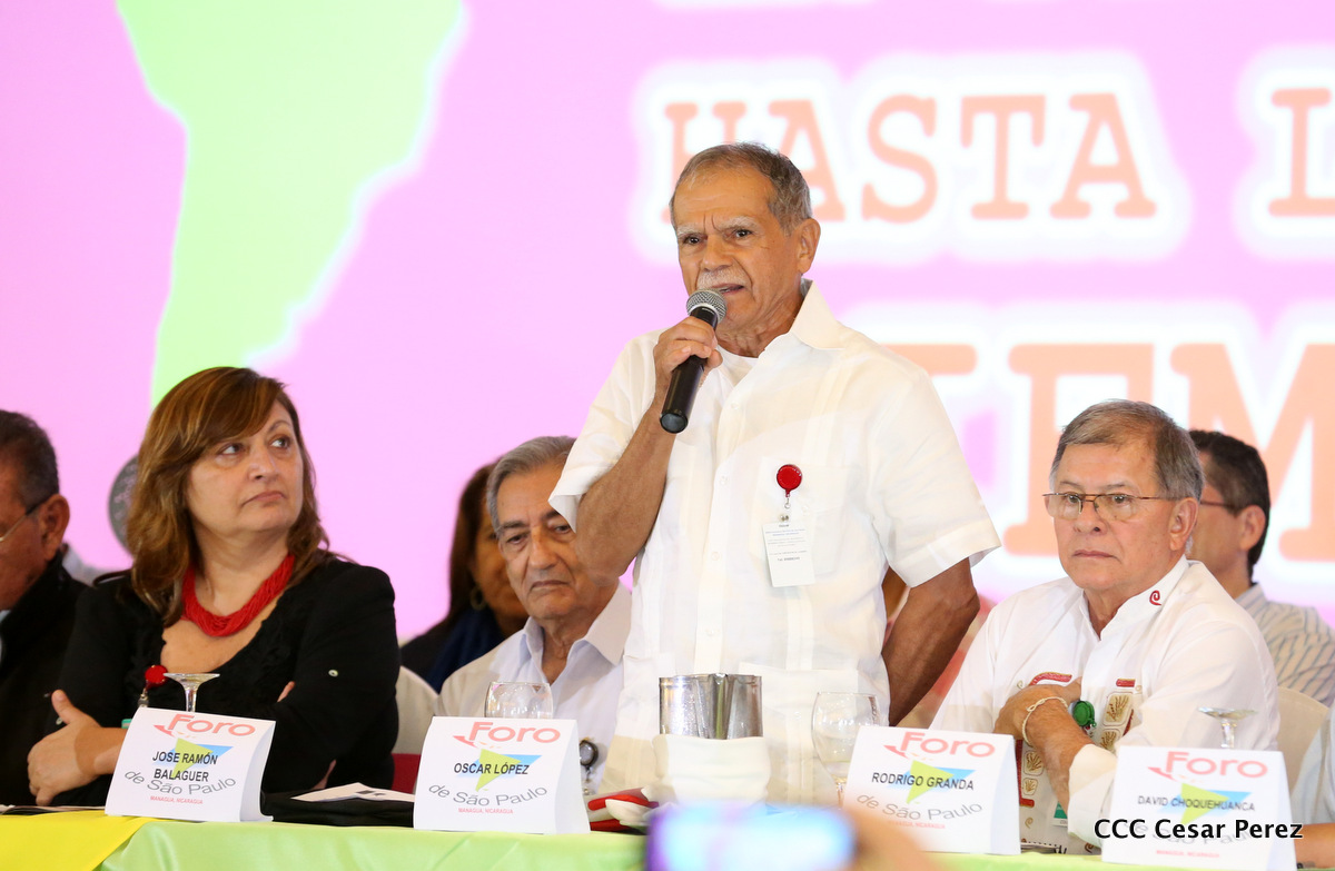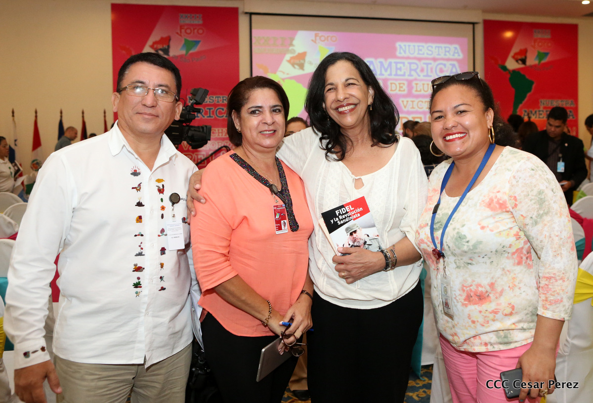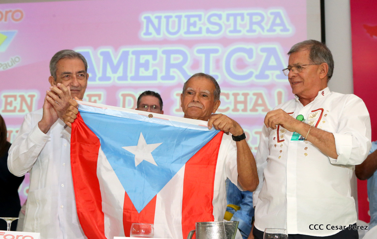 Representantes de partidos políticos y movimientos sociales de 22 países latinoamericanos, participan en el XXIII encuentro del Foro de Sao Paulo, que sesiona en Managua, en saludo al 38 aniversario del triunfo de la Revolución Popular Sandinista.