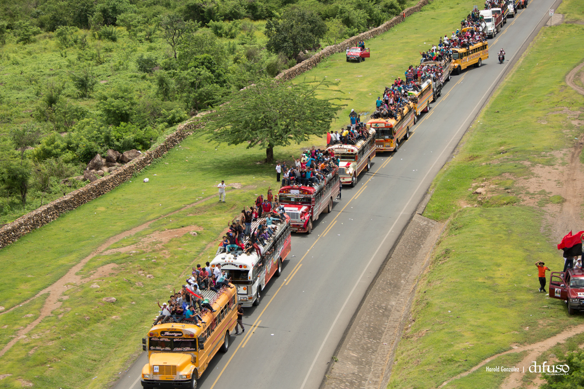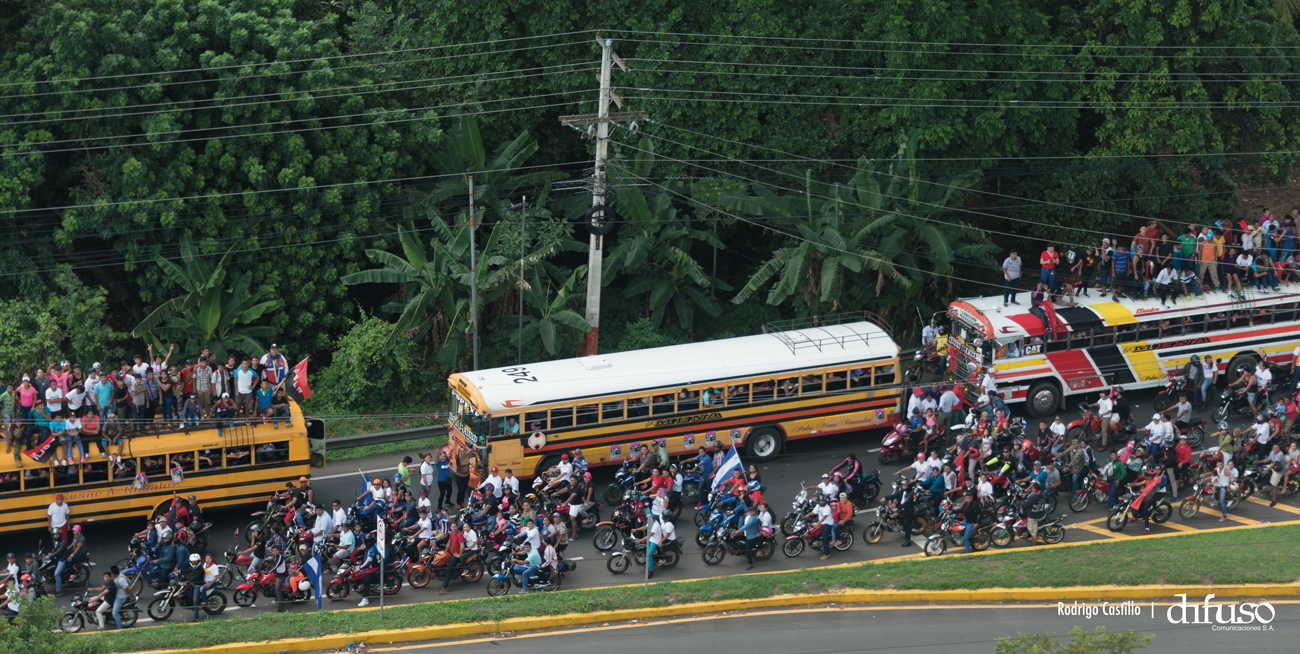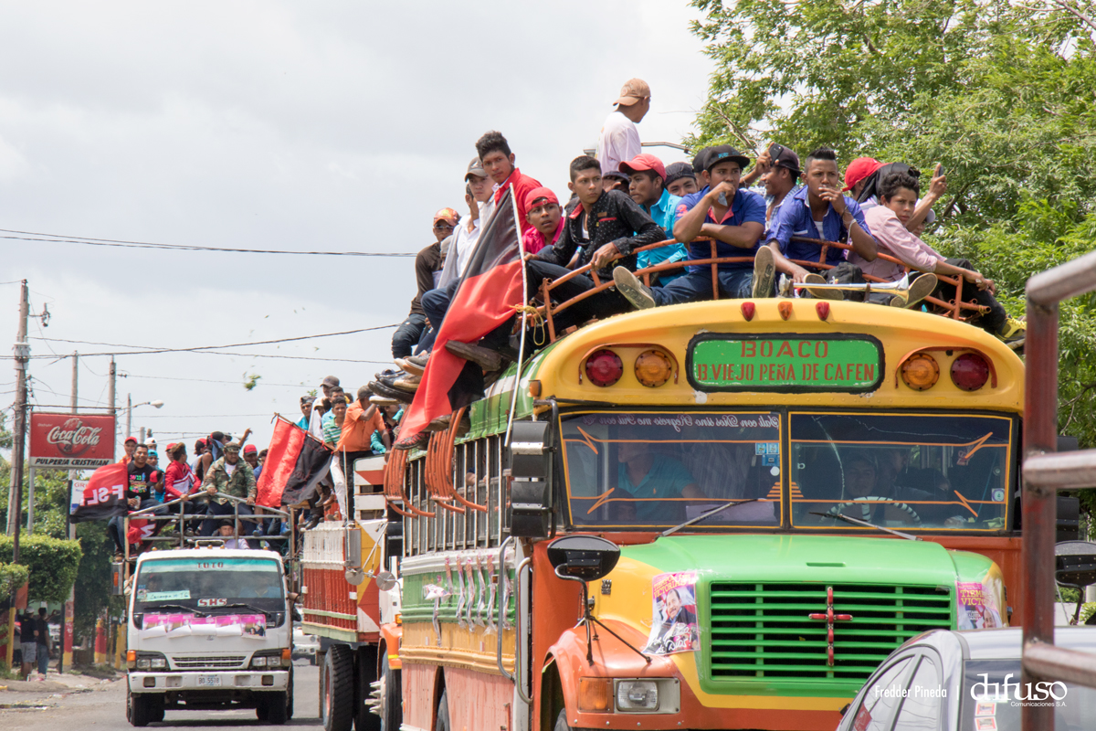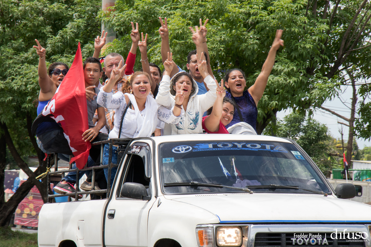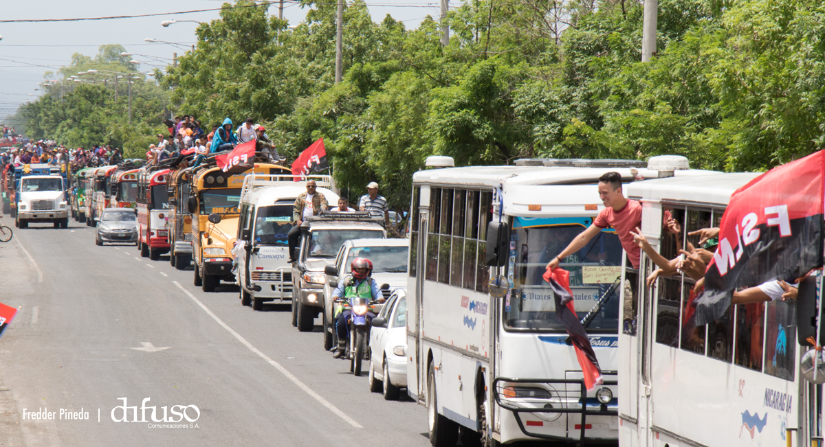 Miles de nicaragüenses de todos los municipios del país llegan a Managua en las Caravanas de la Victoria, para acompañar la celebración del 38 aniversario de la Revolución Popular Sandinista.