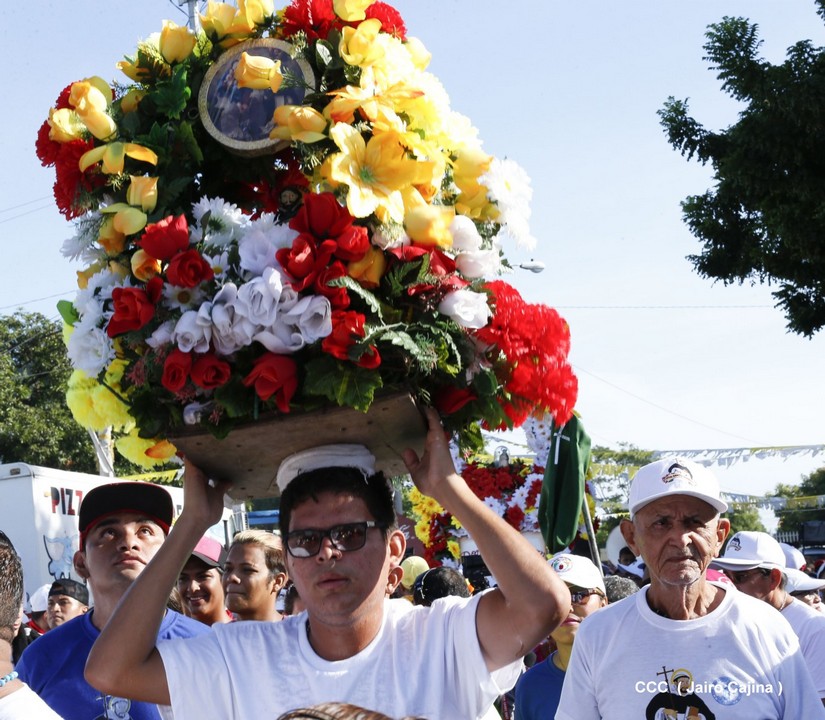 La diminuta imagen de Santo Domingo de Guzmán recorrió este 4 de agosto los barrios orientales de Managua y el populoso mercado Oriental.