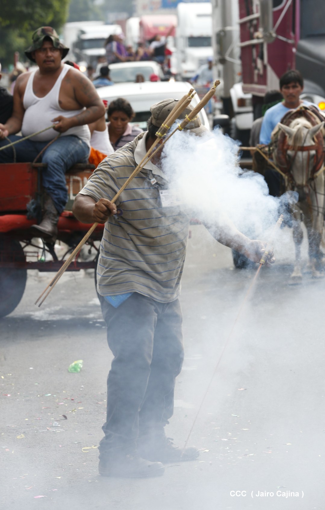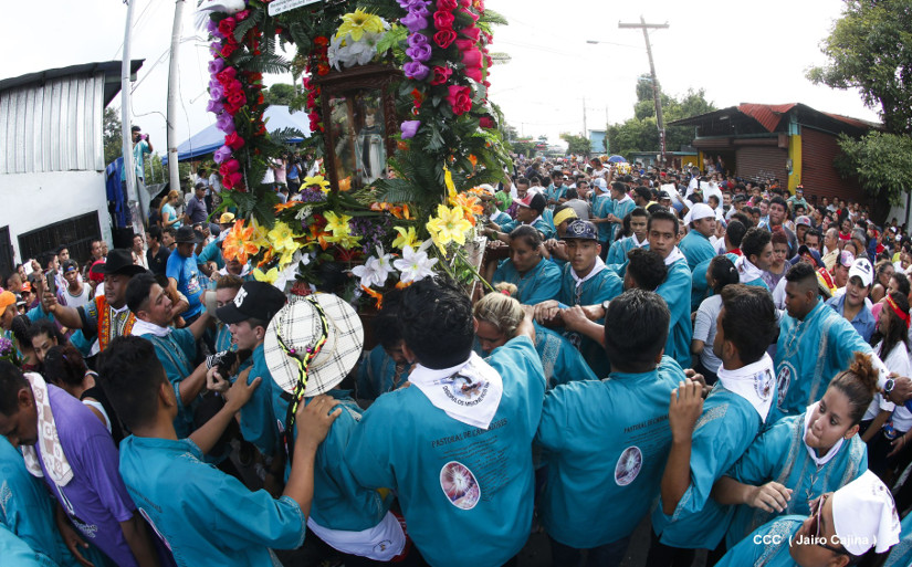 Llega a Managua Santo Domingo de Abajo, le cargaban y acompañaban feligreses procedentes de la comunidad de San Andrés de la Palanca y de los barrios occidentales de Managua.