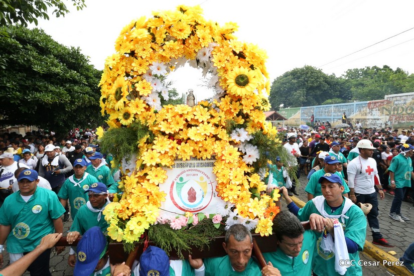 Miles de devotos y tradicionalistas acomapañaron este 10 de agosto a la diminuta pero milagrosa imagen de Santo Domingo a su santuario en Las Sierritas de Managua.