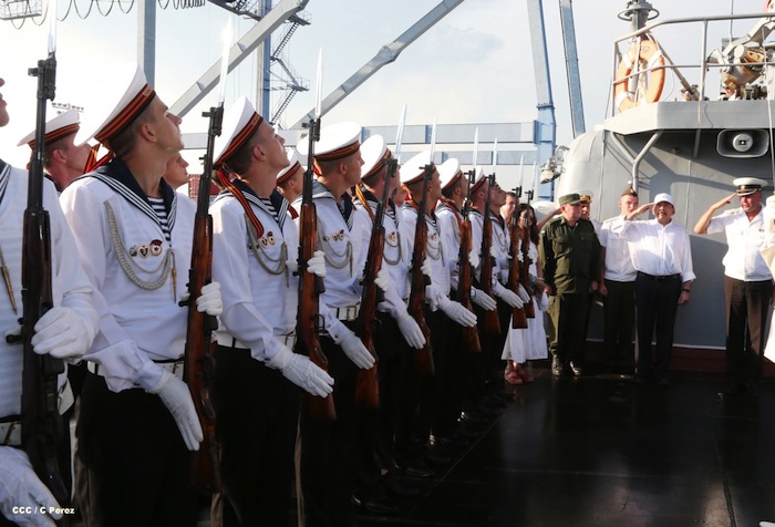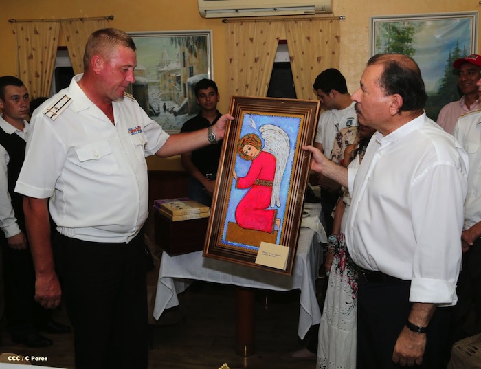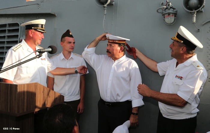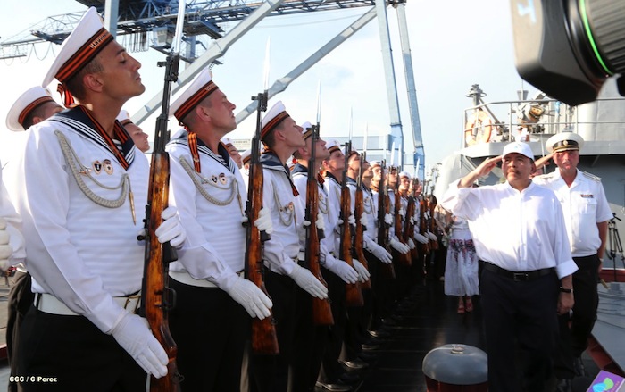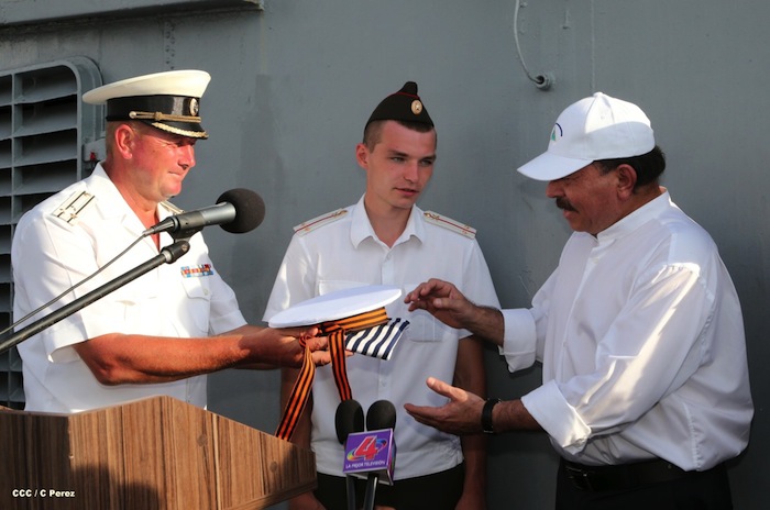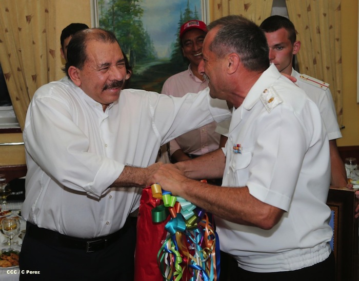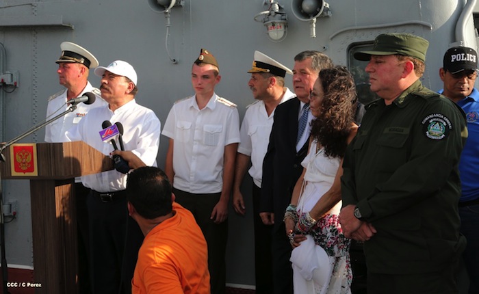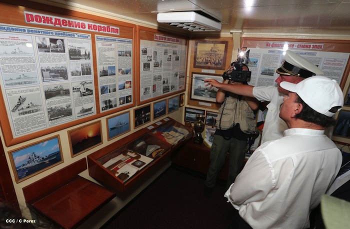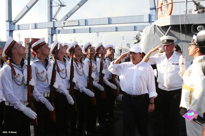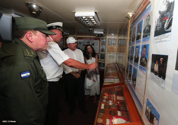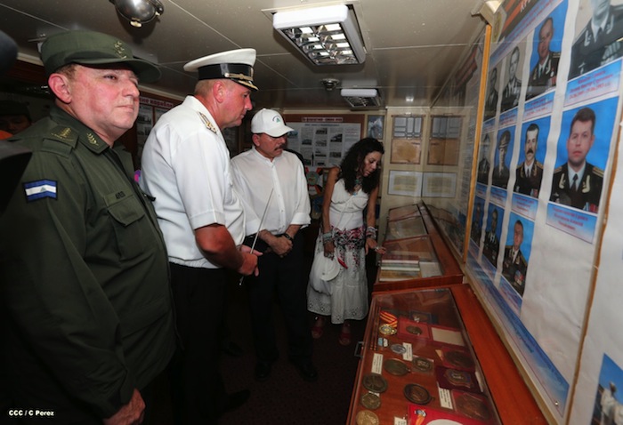 El presidente Daniel Ortega y la Compañera Rosario Murillo visitaron a la tripulación del buque ruso "Moskva", que atracó en Puerto Corinto, Nicaragua.