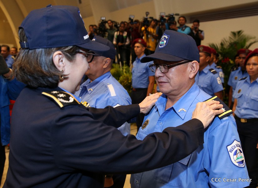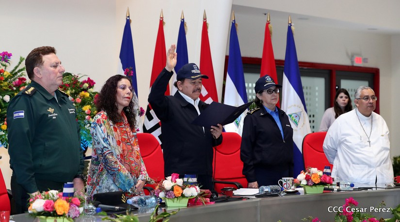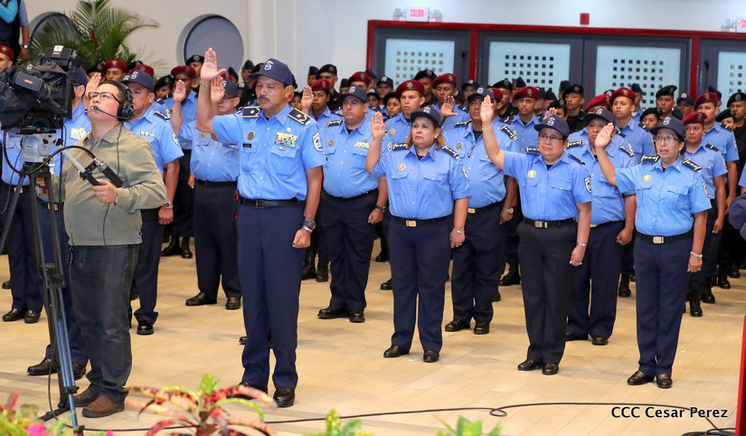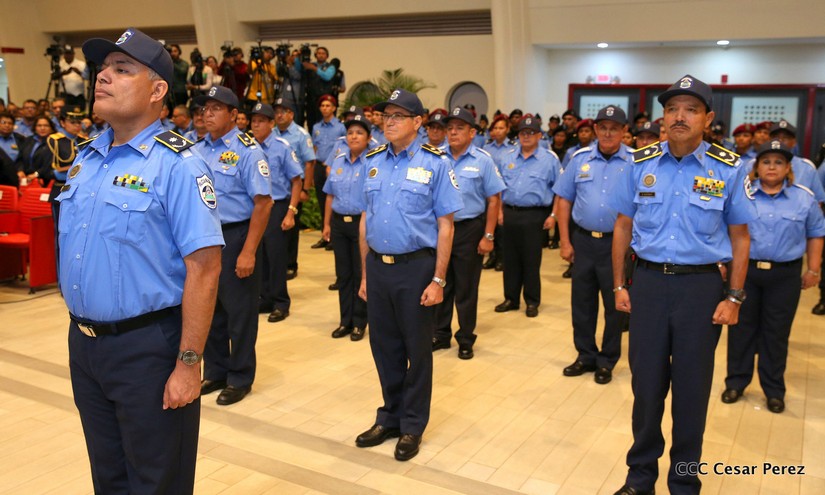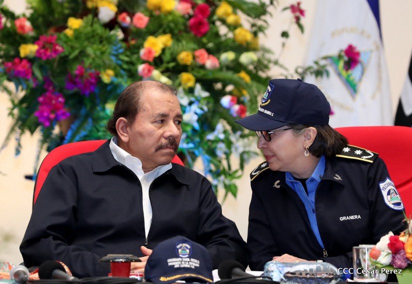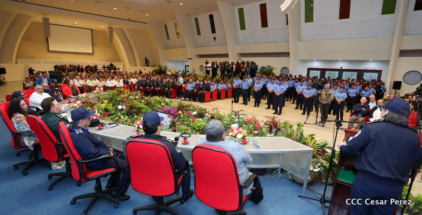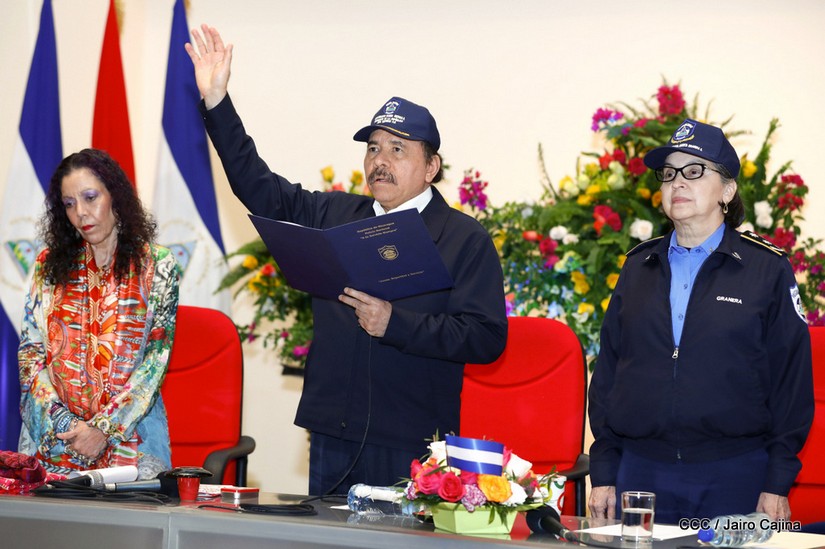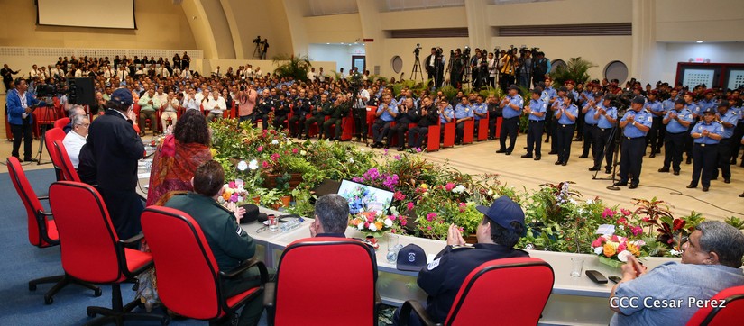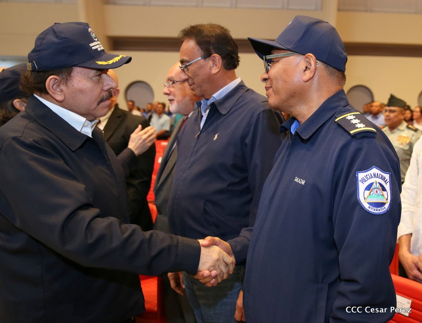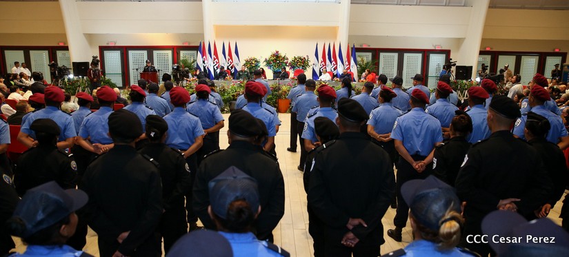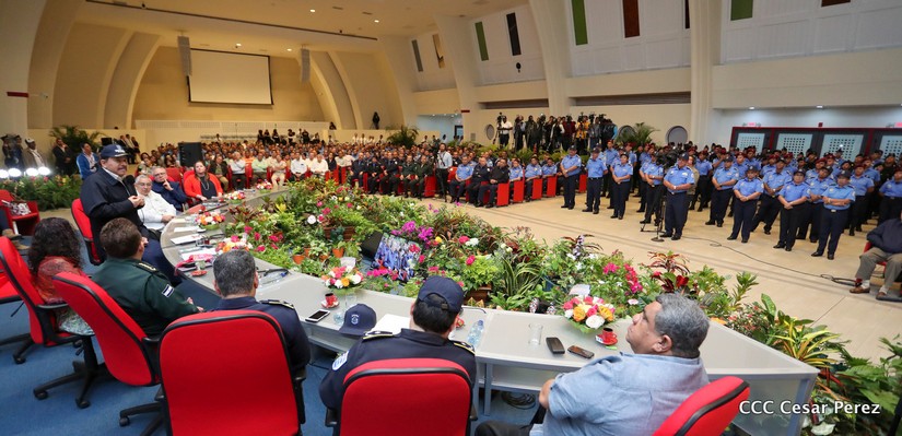 El Presidente de Nicaragua, Comandante Daniel Ortega y la Compañera Rosario Murillo, Vicepresidenta de la República, presidieron el Acto del 38 Aniversario de fundación de la Policía Nacional.