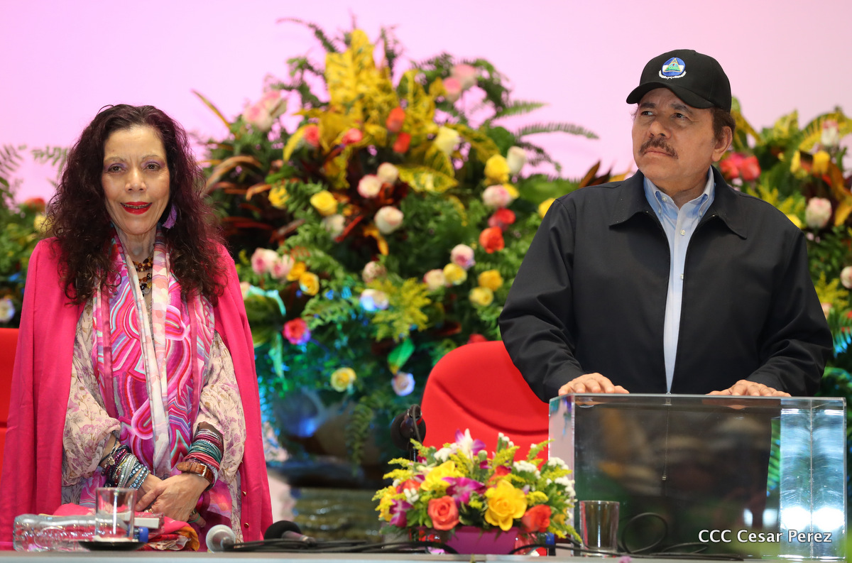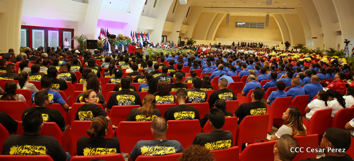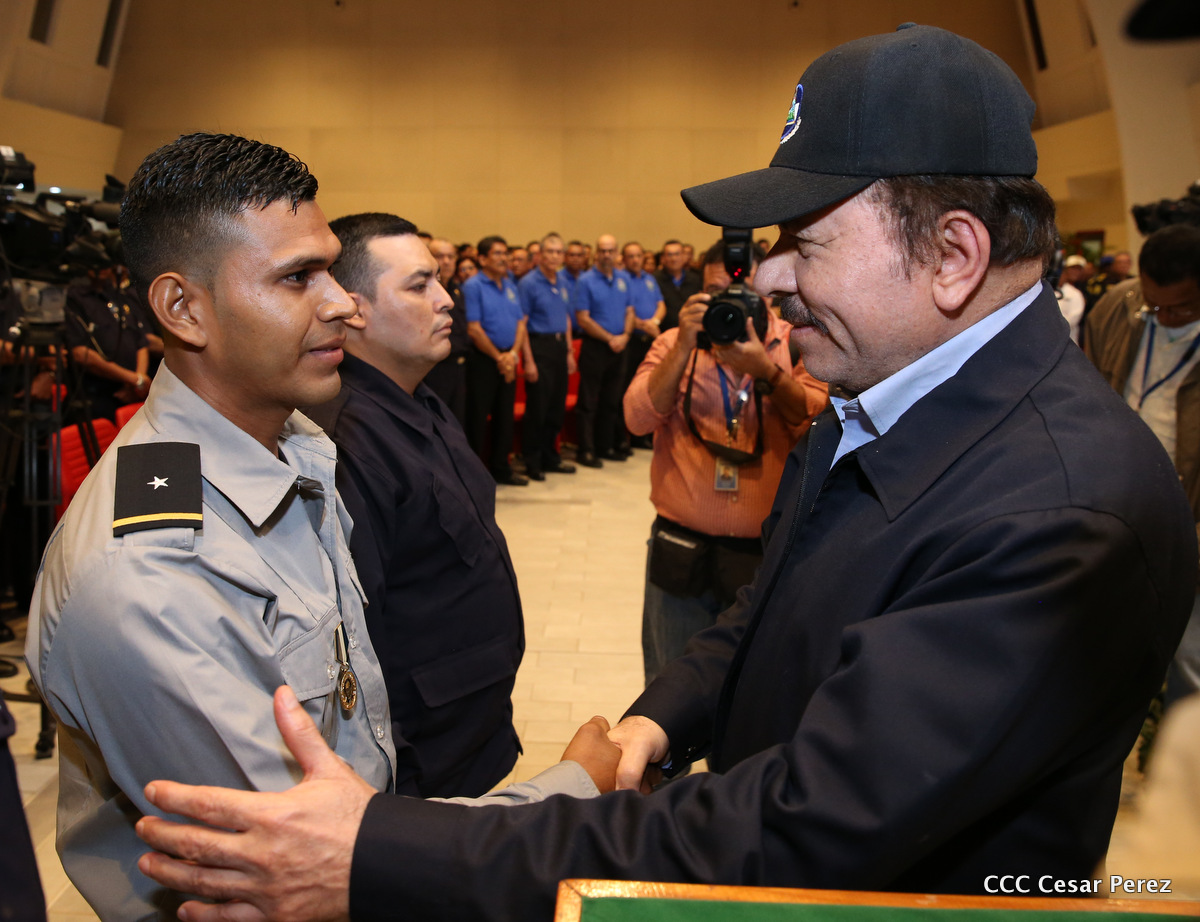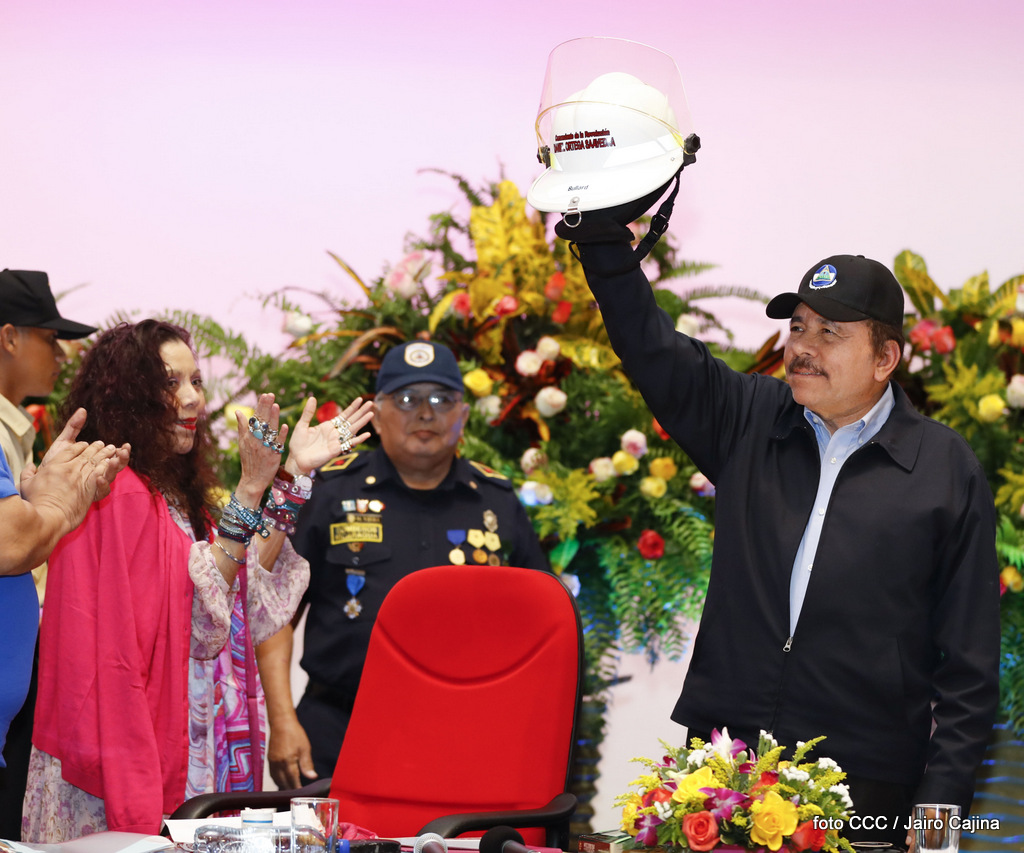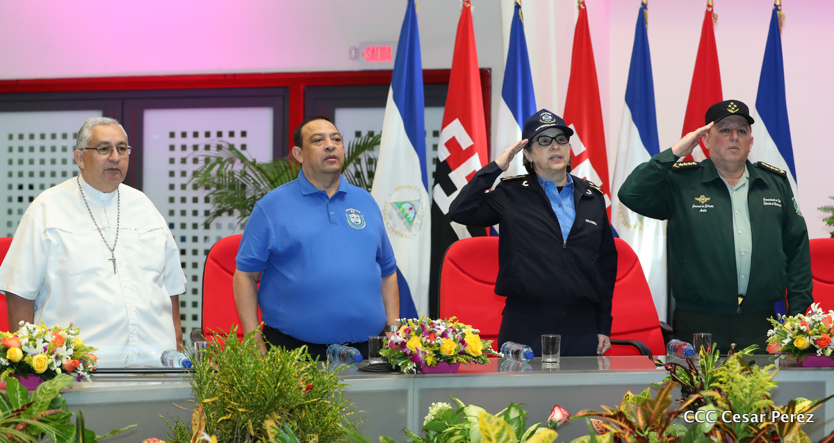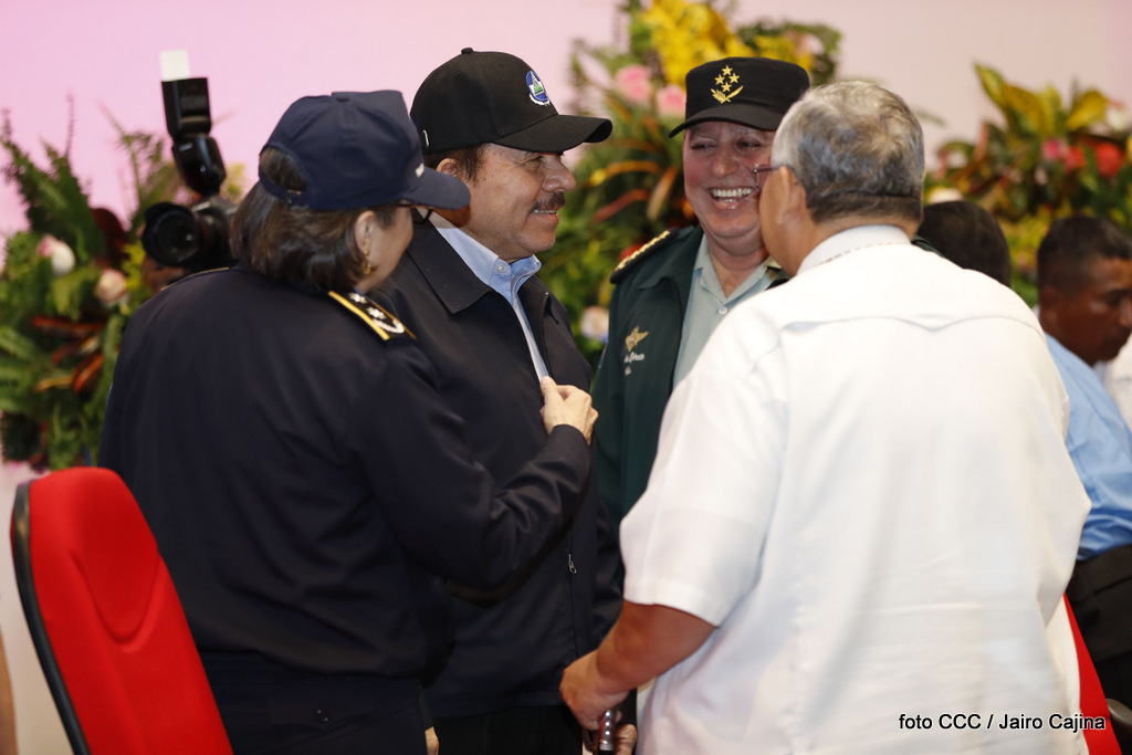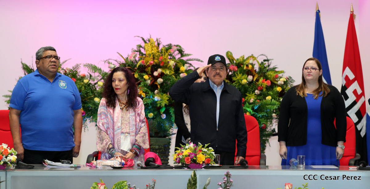 El Presidente de la República, Comandante Daniel Ortega Saavedra, y la Vicepresidenta Compañera Rosario Murillo, encabezaron el acto del 38 aniversario de la fundación del Ministerio de Gobernación.