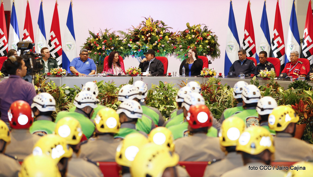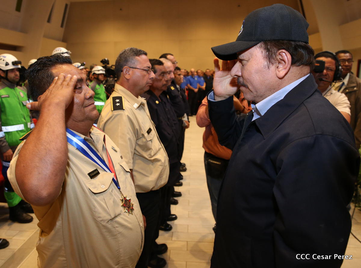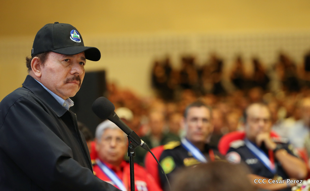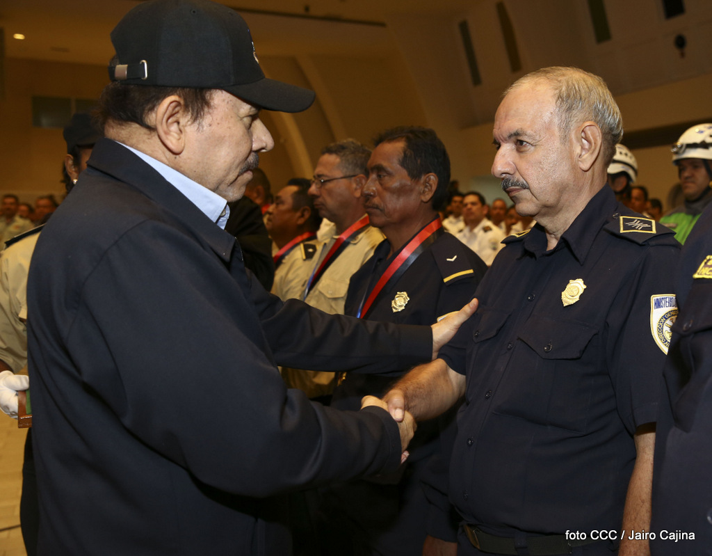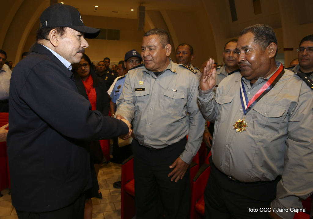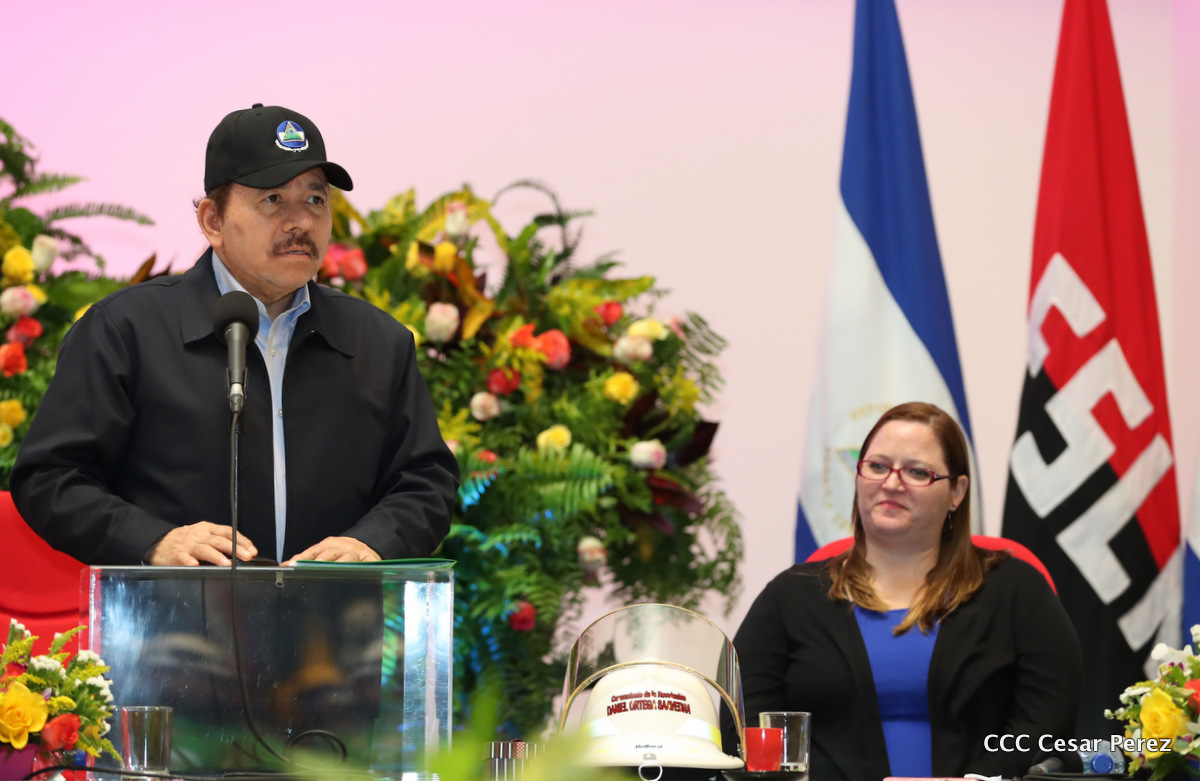 El Presidente de la República, Comandante Daniel Ortega Saavedra, y la Vicepresidenta Compañera Rosario Murillo, encabezaron el acto del 38 aniversario de la fundación del Ministerio de Gobernación.