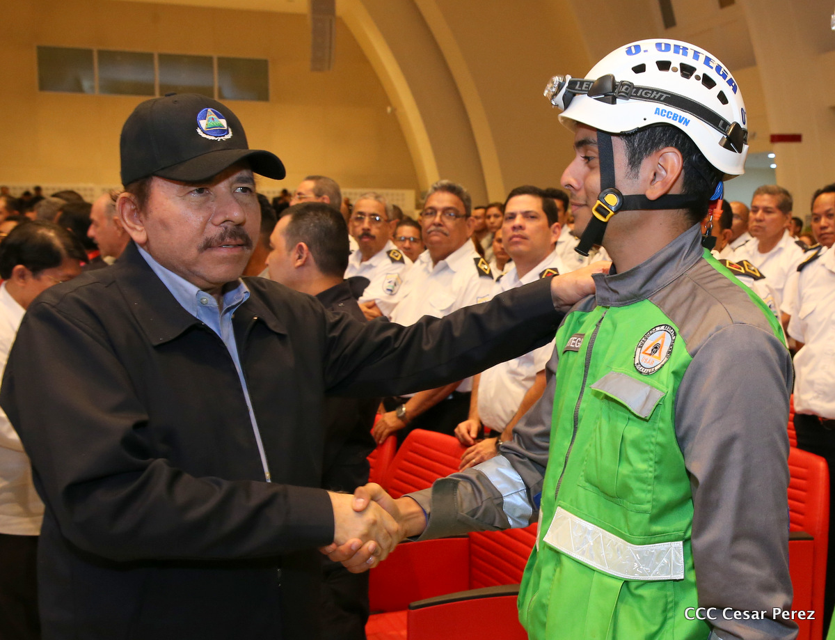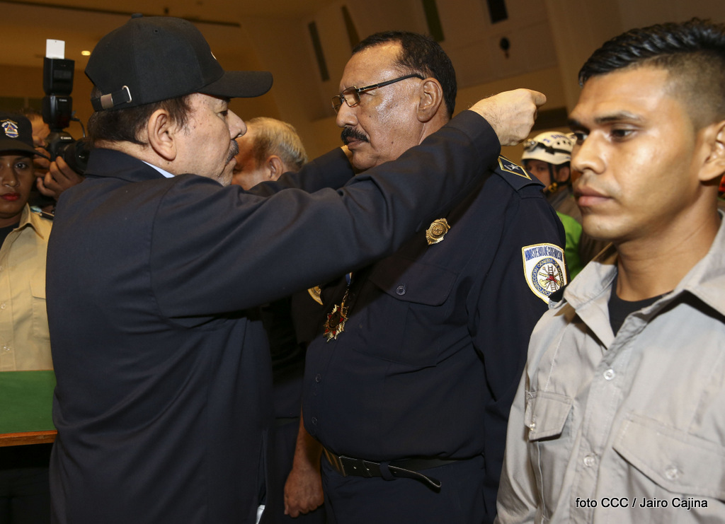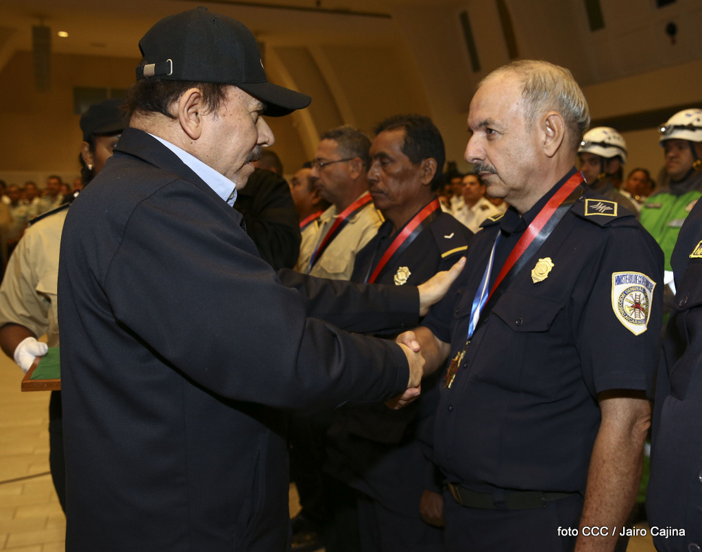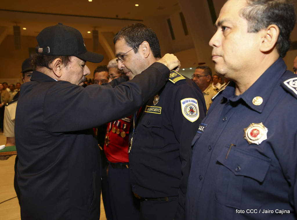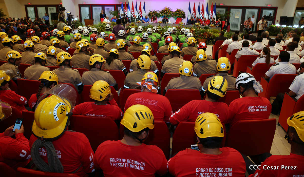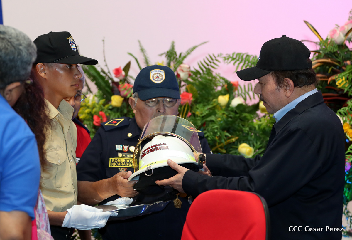El Presidente de la República, Comandante Daniel Ortega Saavedra, y la Vicepresidenta Compañera Rosario Murillo, encabezaron el acto del 38 aniversario de la fundación del Ministerio de Gobernación.