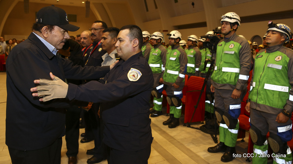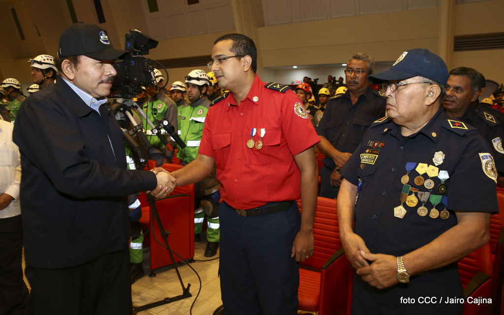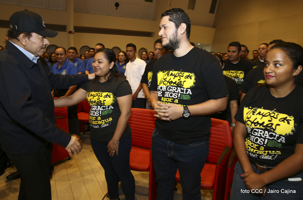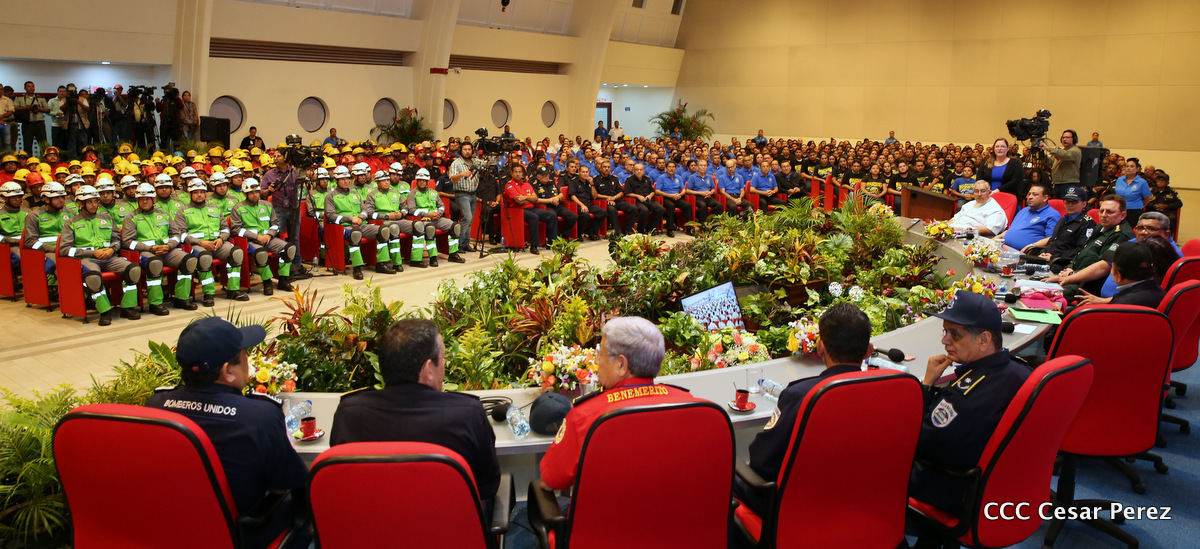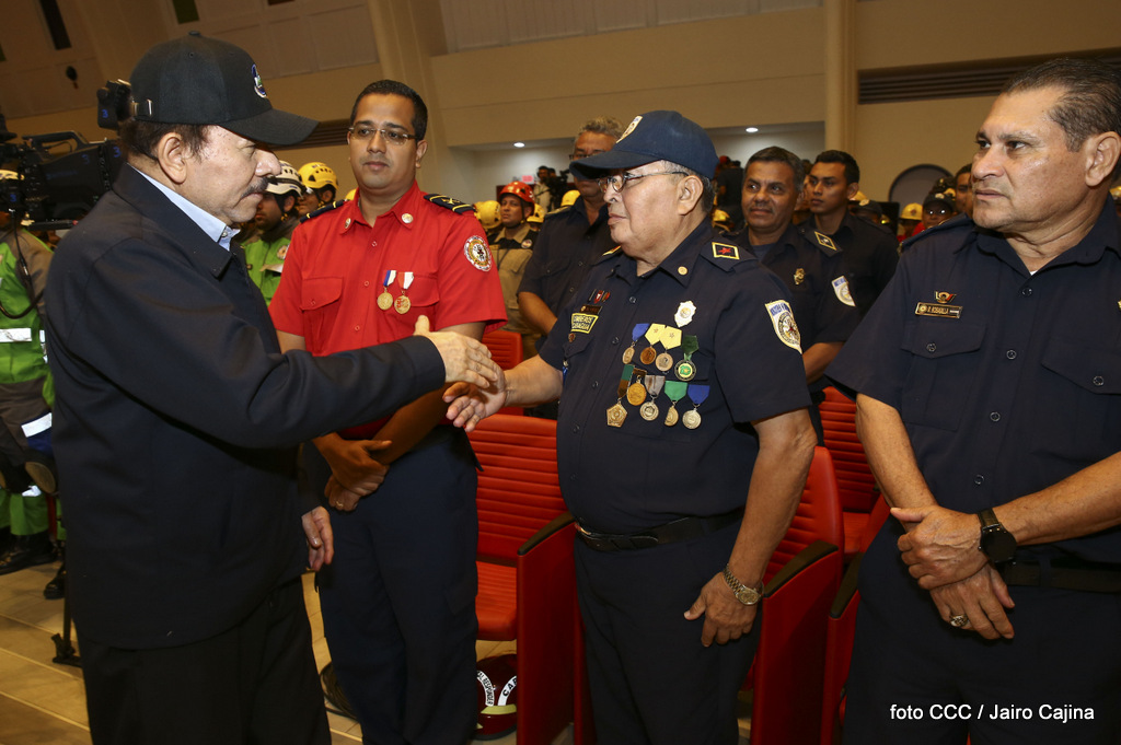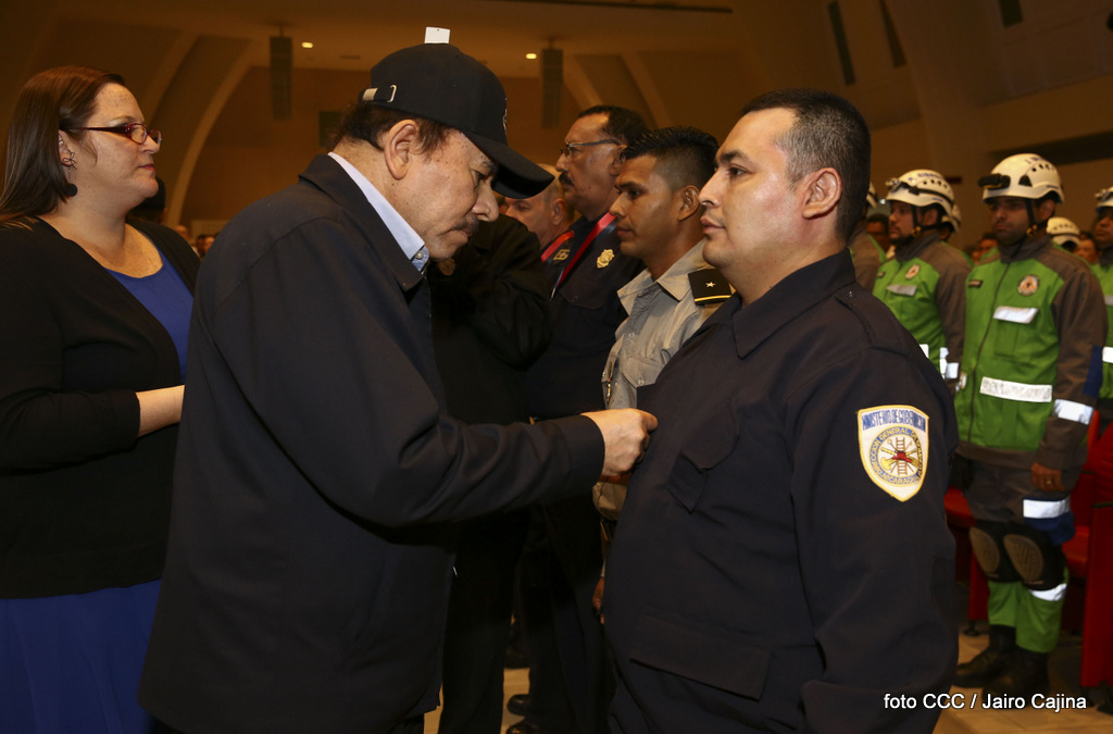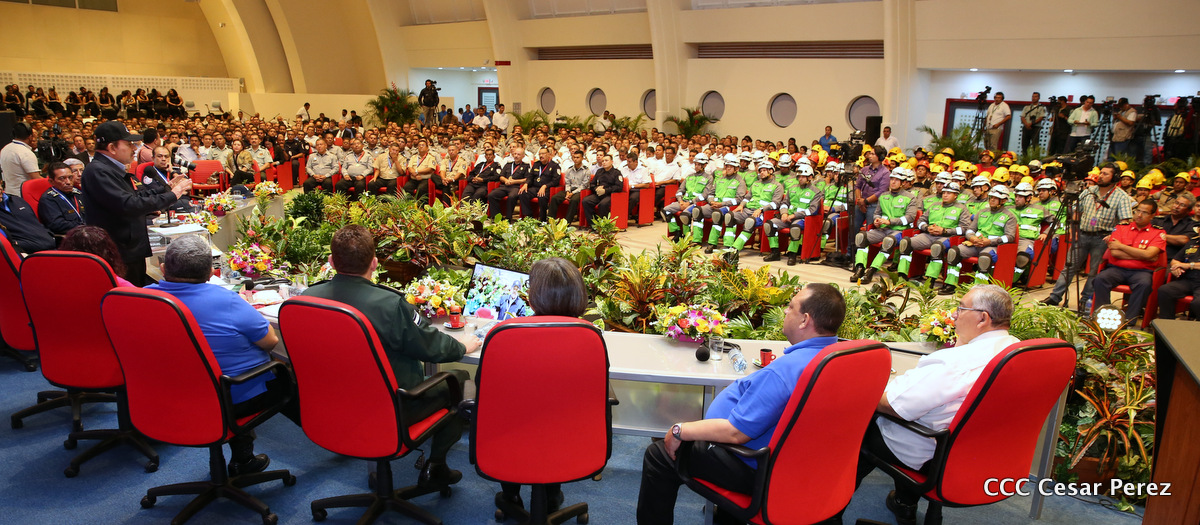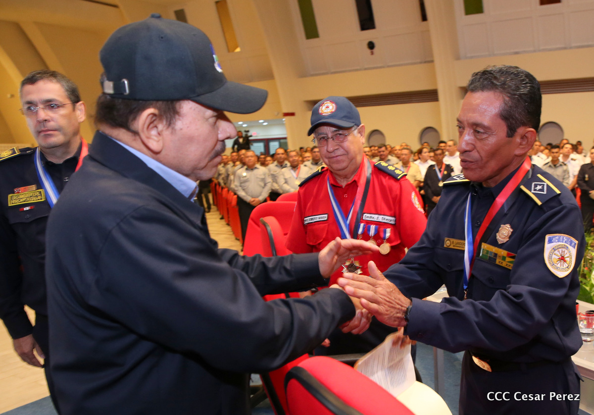 El Presidente de la República, Comandante Daniel Ortega Saavedra, y la Vicepresidenta Compañera Rosario Murillo, encabezaron el acto del 38 aniversario de la fundación del Ministerio de Gobernación.