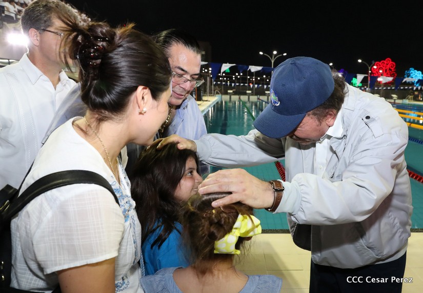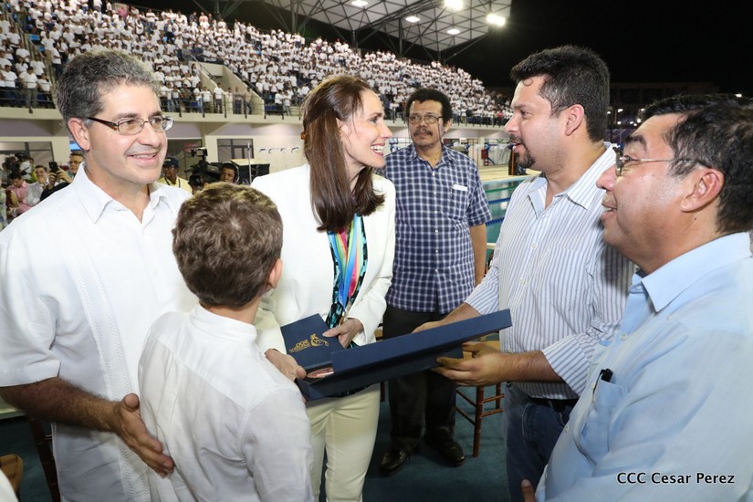 El Presidente Daniel Ortega y la Compañera Rosario Murillo, participaron este viernes 1 de diciembre en la inauguración del Complejo de Piscinas Olímpicas que llevan el nombre de Michele Richardson, destacada atleta nicaraguense.