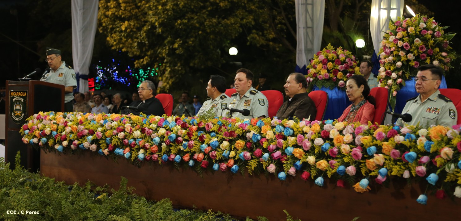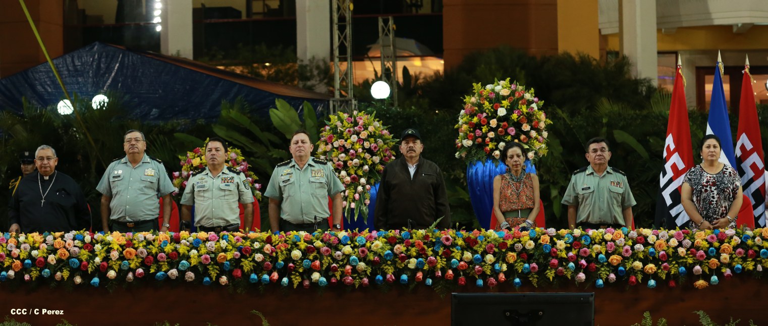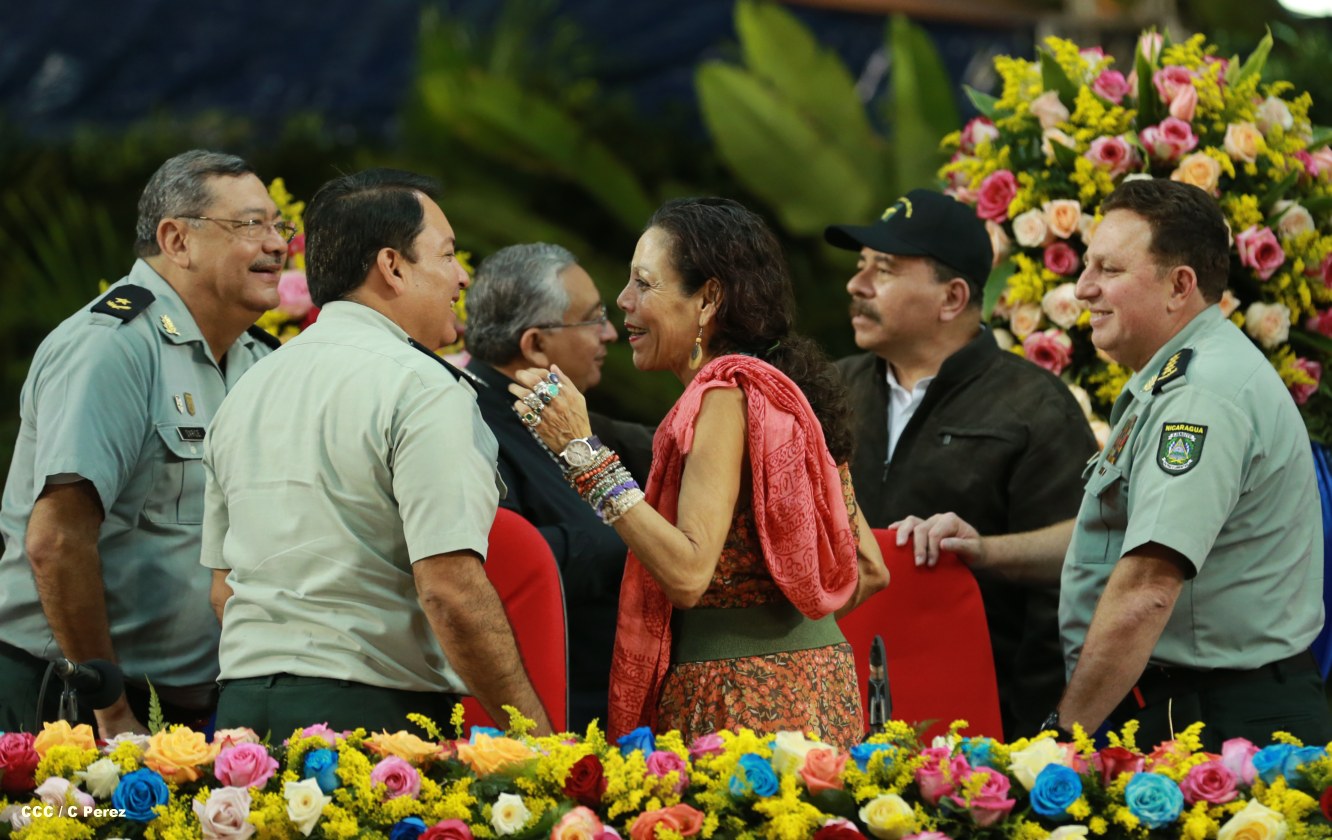 El presidente Daniel Ortega y la compañera Rosario Murillo encabezan acto del 34 Aniversario del Cuerpo Médico Militar.