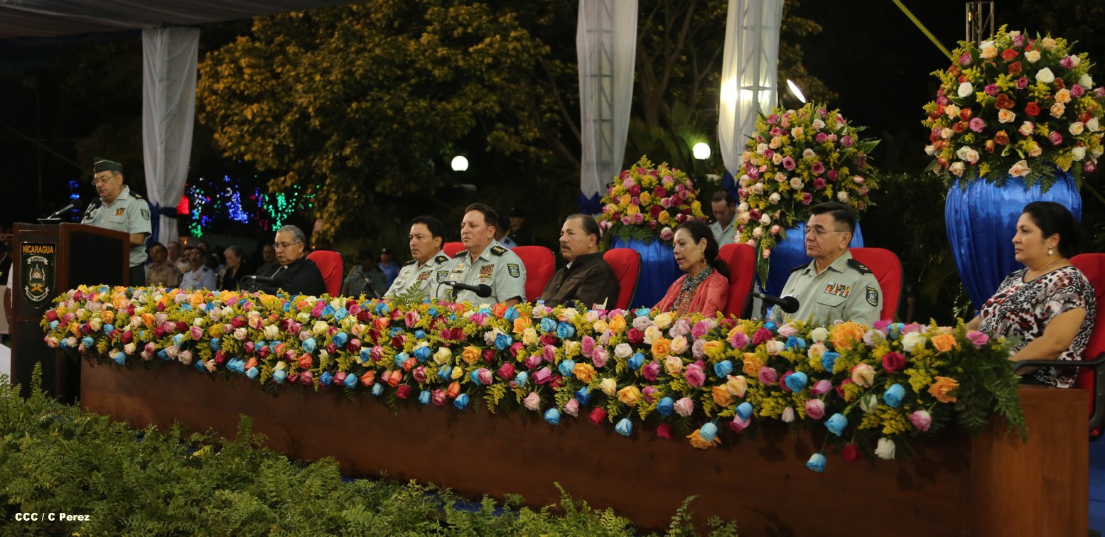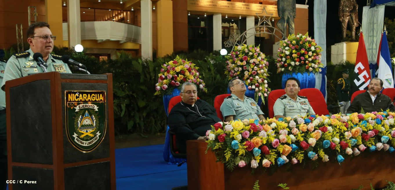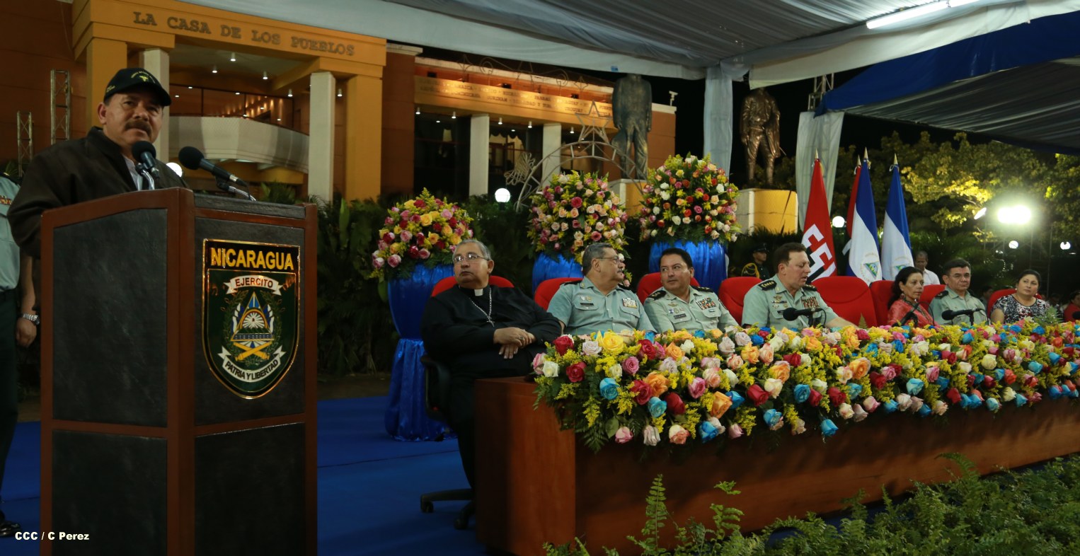 El presidente Daniel Ortega y la compañera Rosario Murillo encabezan acto del 34 Aniversario del Cuerpo Médico Militar.