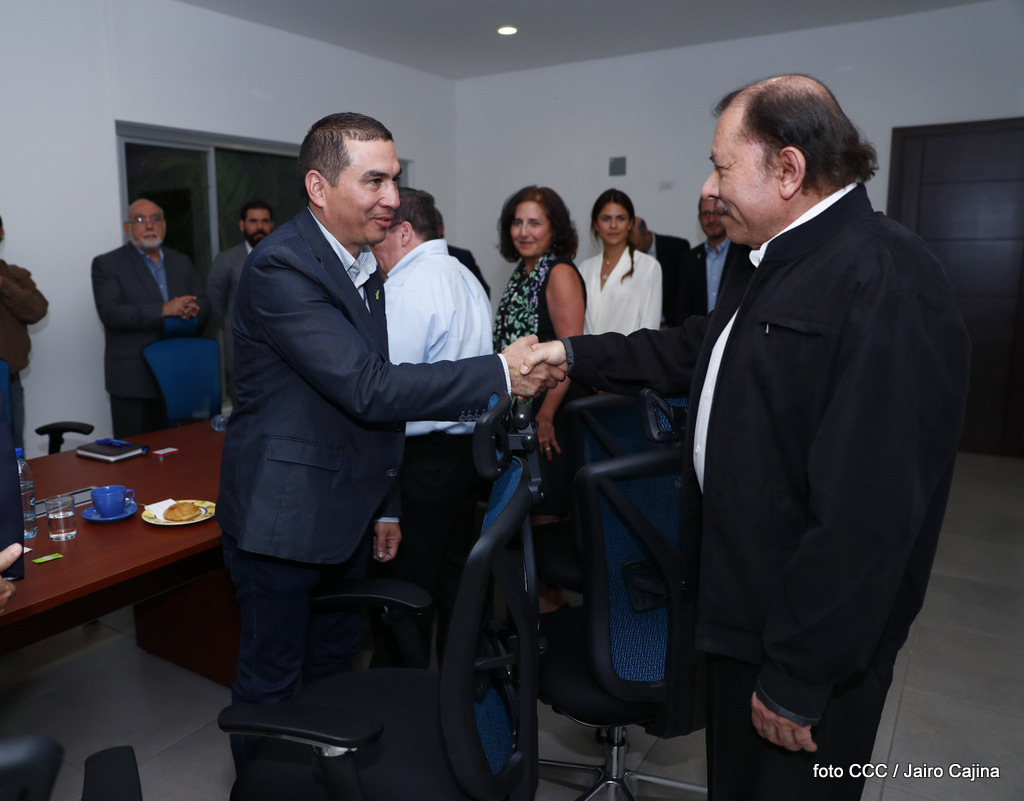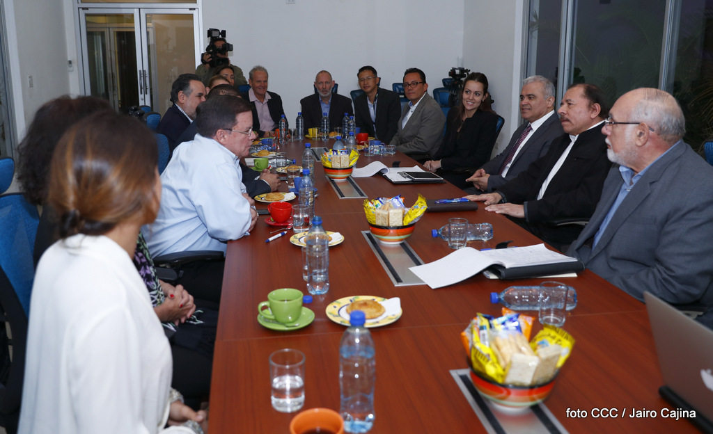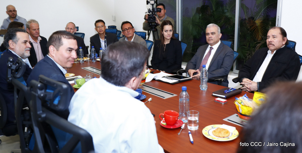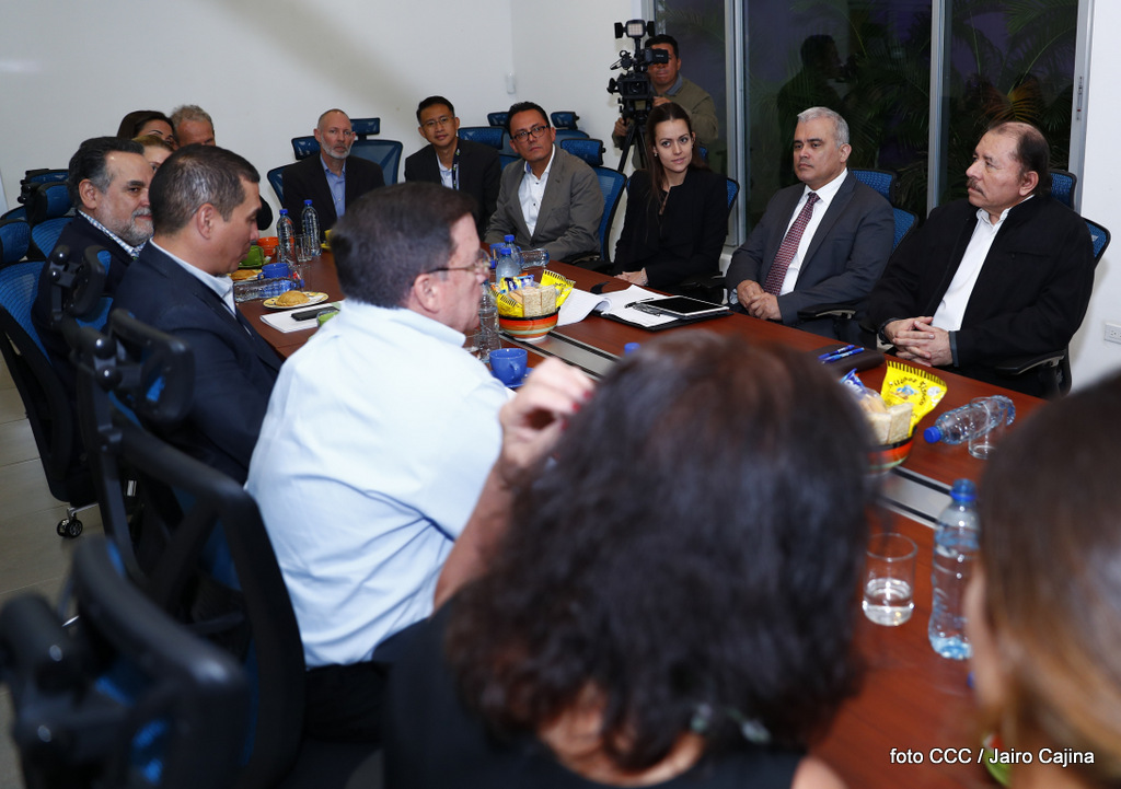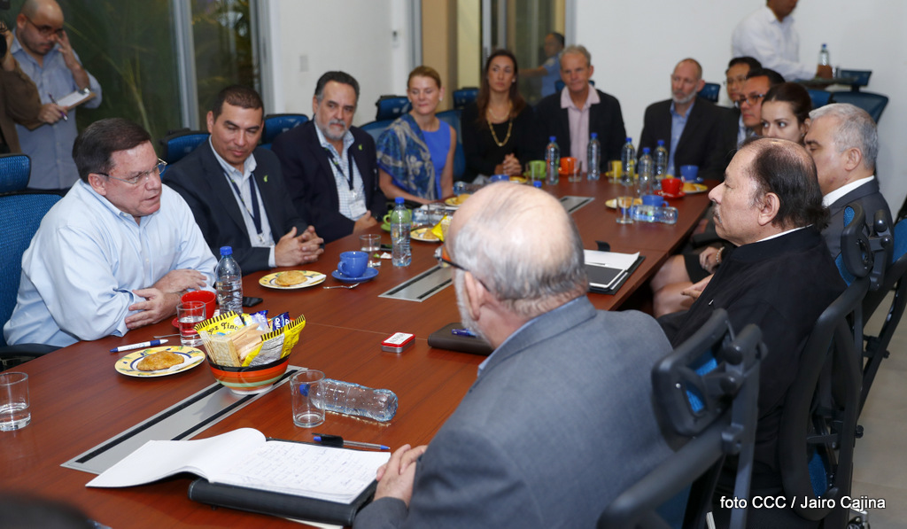 El Presidente de la República, Comandante Daniel Ortega Saavedra, sostuvo un encuentro la tarde de este miércoles con una delegación de empresarios y productores de azúcar que participan en Nicaragua en la Semana Bonsucro 2018.