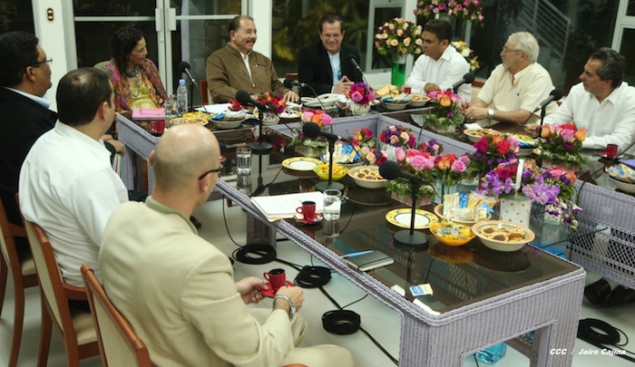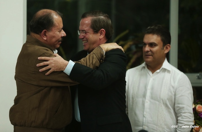 El Presidente de la República, Comandante Daniel Ortega Saavedra, y la Compañera Rosario Murillo, Coordinadora del Consejo de Comunicación y Ciudadanía, se reunieron con el Canciller de Ecuador, Compañero Ricardo Patiño.