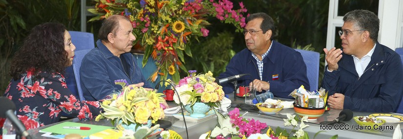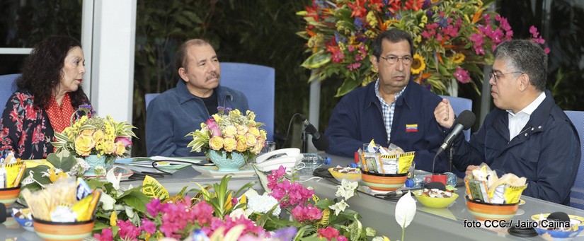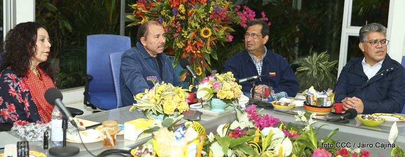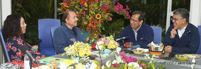 El Presidente de la República Comandante Daniel Ortega Saavedra y la Vicepresidenta Compañera Rosario Murillo, sostuvieron un encuentro fraterno con los compañeros Adán Chávez Frías y Elias Jaua, de Venezuela.
