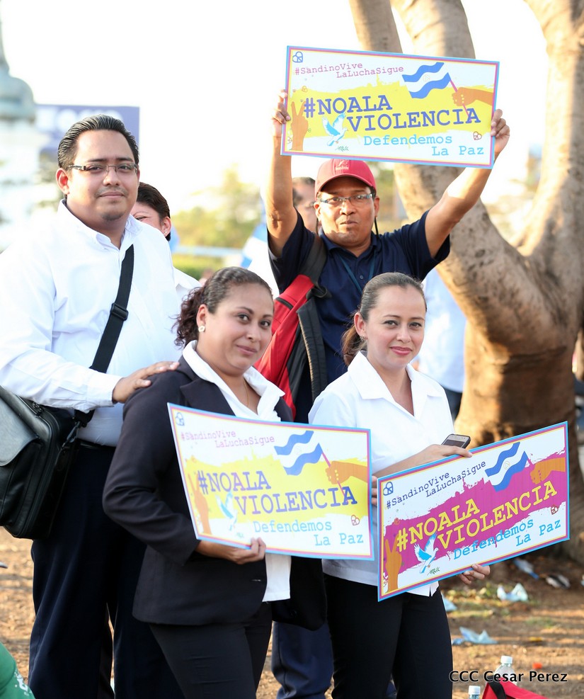 La capital vivió este miércoles una jornada de alegría, con música revolucionaria, donde todos los presentes pidieron Paz y se sumaron al diálogo convocado por el Gobierno Sandinista. Los pobladores con sus rostros llenos de energía, bailaron y corearon, en múltiples oportunidades, que no quieren vivir sin violencia y que desean trabajar con tranquilidad para seguir desarrollando el país.
