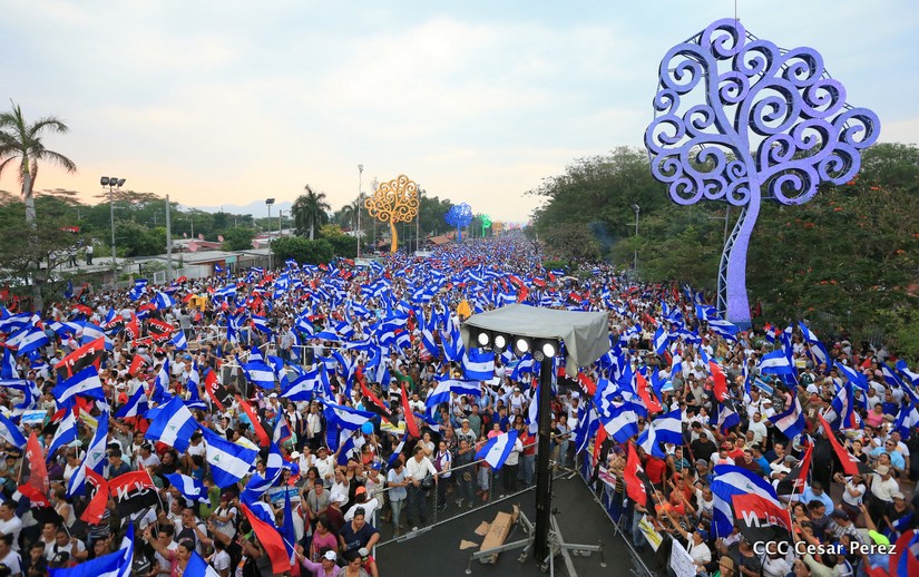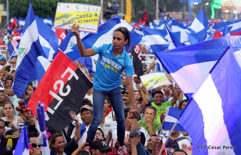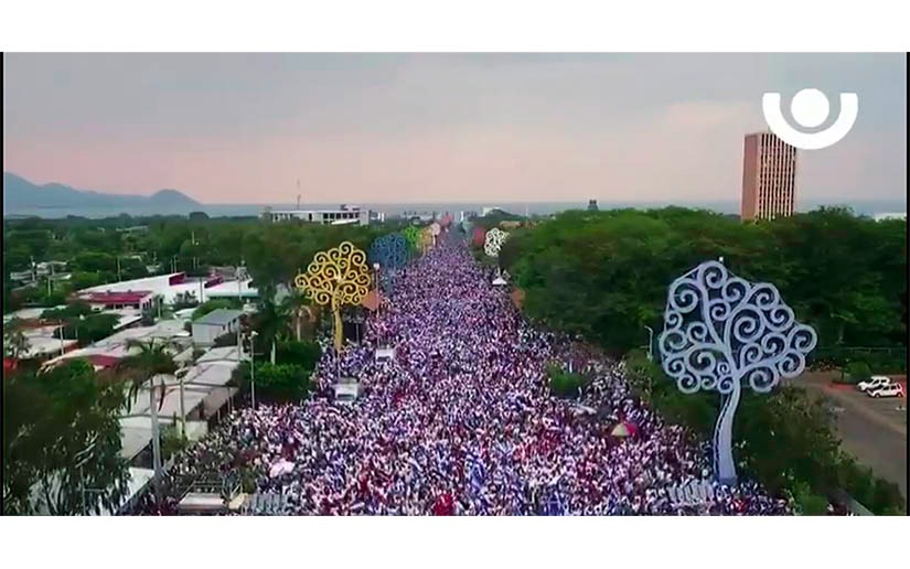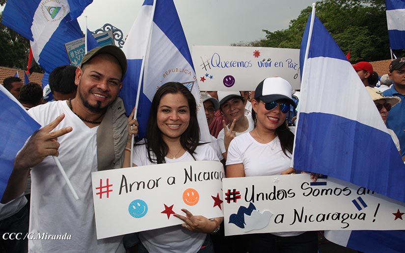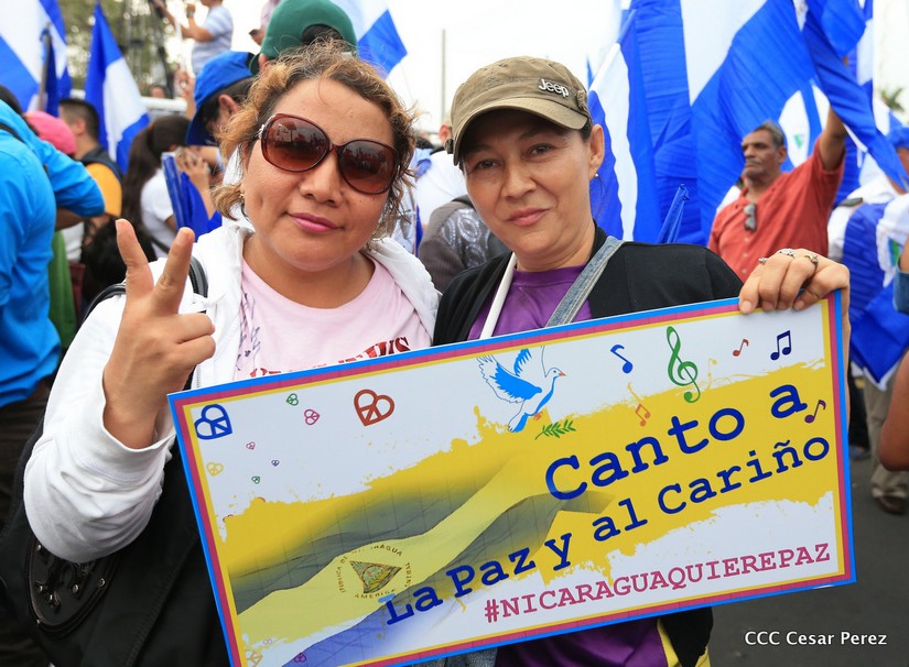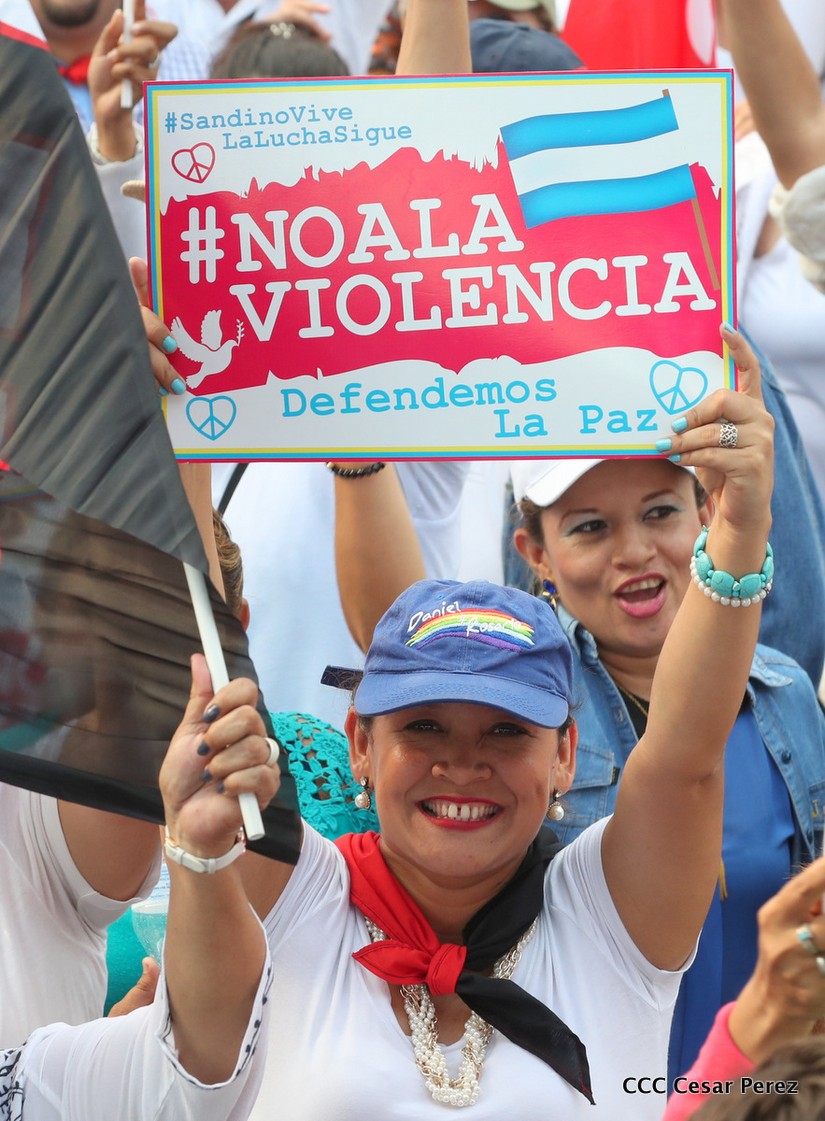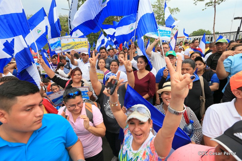 Cientos de miles de nicaragüenses, se concentraron este miércoles en la emblemática Avenida de Bolívar a Chávez, unidos en un solo Canto por la Paz y el Cariño, ondeando sus banderas azul y blanco y rojinegro, por el Diálogo, el Amor y el Trabajo en esta hermosa Nicaragua.