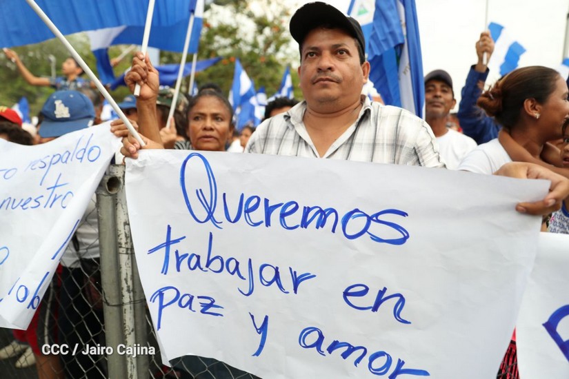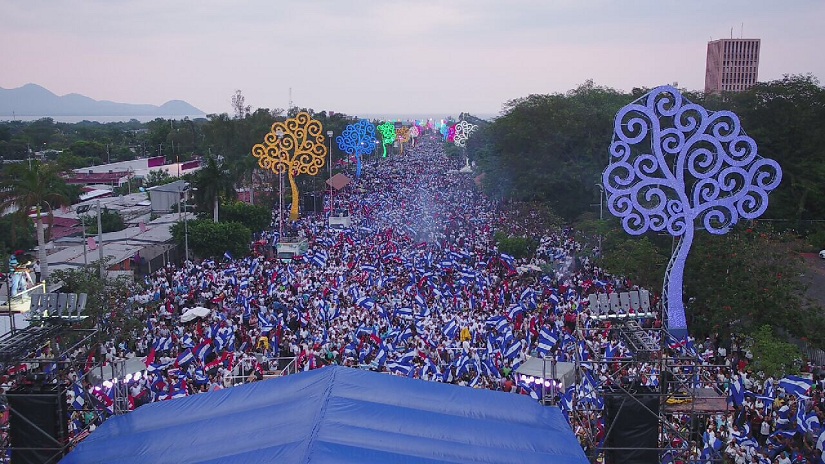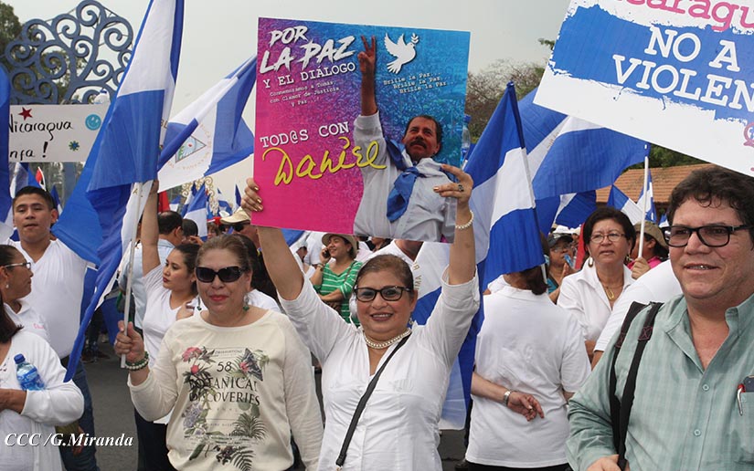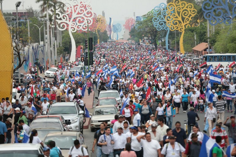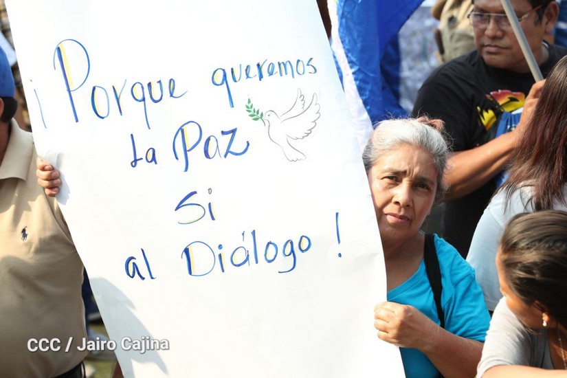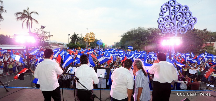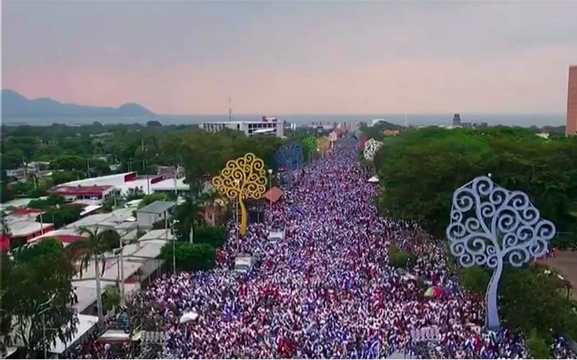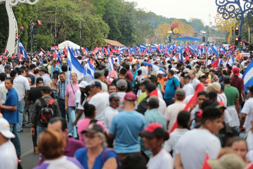 Cientos de miles de nicaragüenses, se concentraron este miércoles en la emblemática Avenida de Bolívar a Chávez, unidos en un solo Canto por la Paz y el Cariño, ondeando sus banderas azul y blanco y rojinegro, por el Diálogo, el Amor y el Trabajo en esta hermosa Nicaragua.