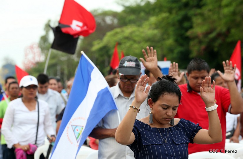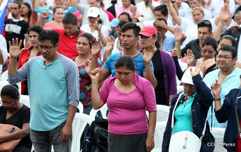 Con su oración, las familias piden a Dios por la paz, por la estabilidad social y por el levantamiento de todo aquello que impida la libre circulación y movilización de las personas por toda Nicaragua.