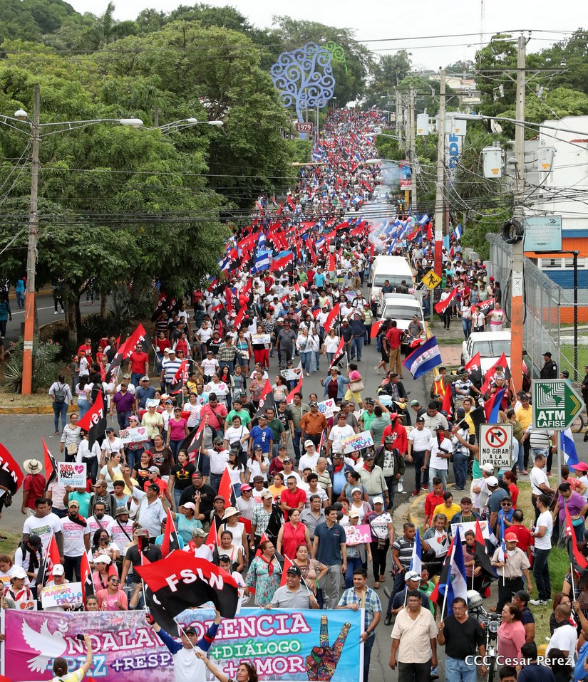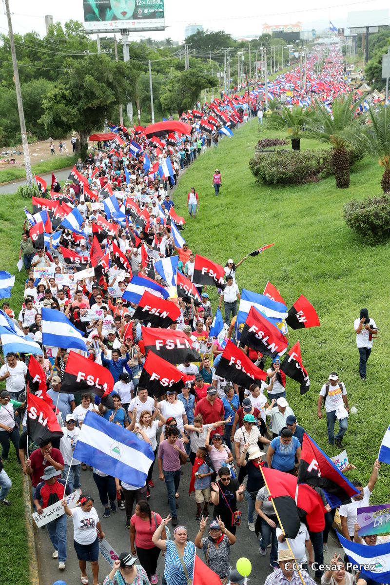 Miles se desbordaron en Managua para clamar por la paz y la tranquilidad, en una caminata que recoorió varios kilómetros y culminó con el mensaje del Presidente de la República, Comandante Daniel Ortega Saavedra.