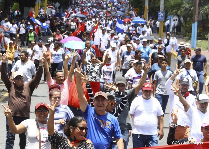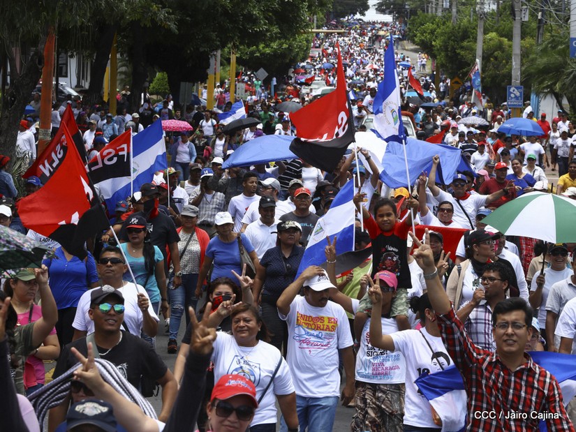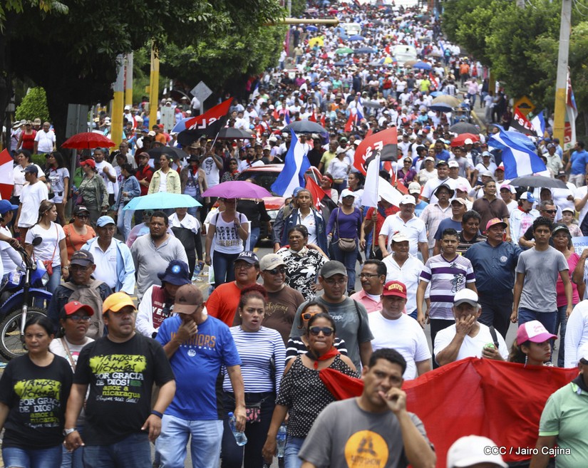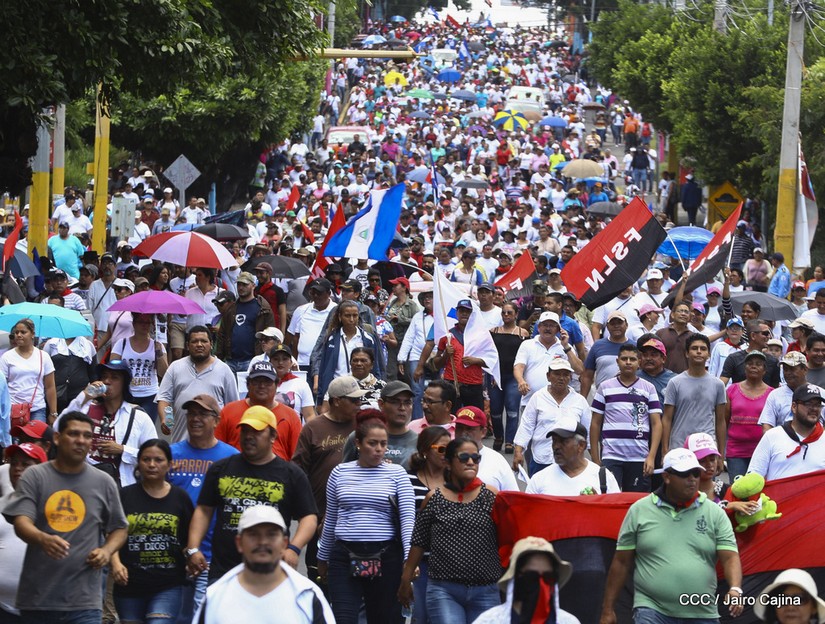 Miles de Nicaragüenses se congregan en los alrededores de la Universidad Nacional Autónoma de Nicaragua para iniciar una caminata y exigir justicia para las víctimas del terrorismo golpista.