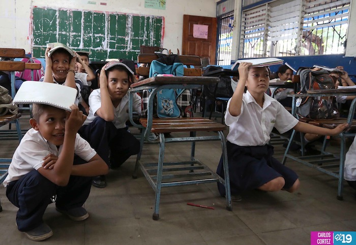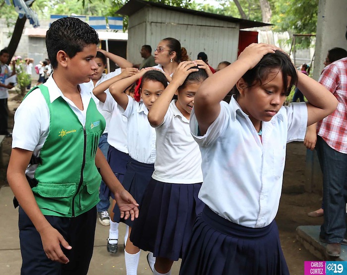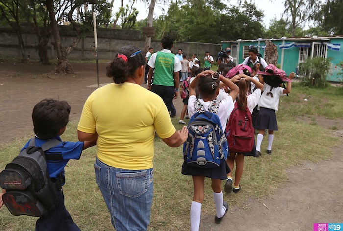 Un simulacro prepararon las autoridades junto a la población en el barrio El Recreo de Managua.