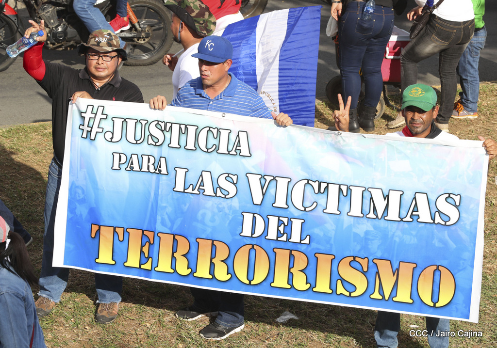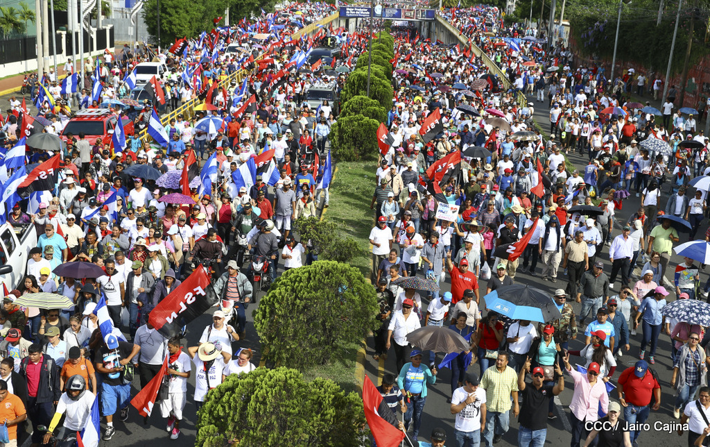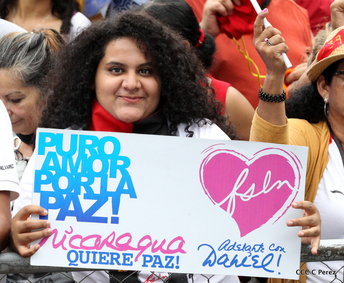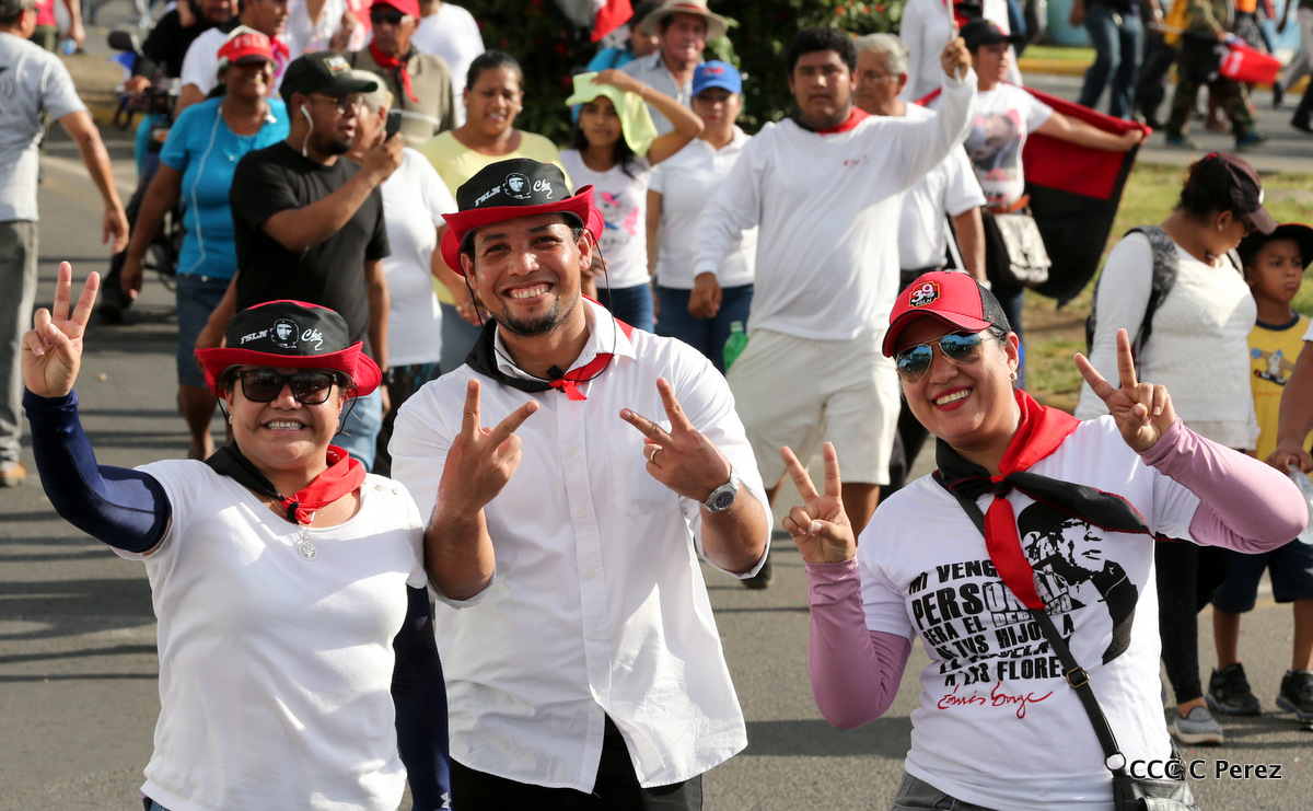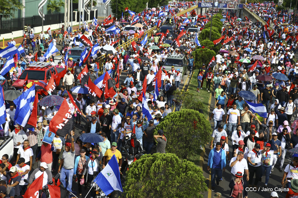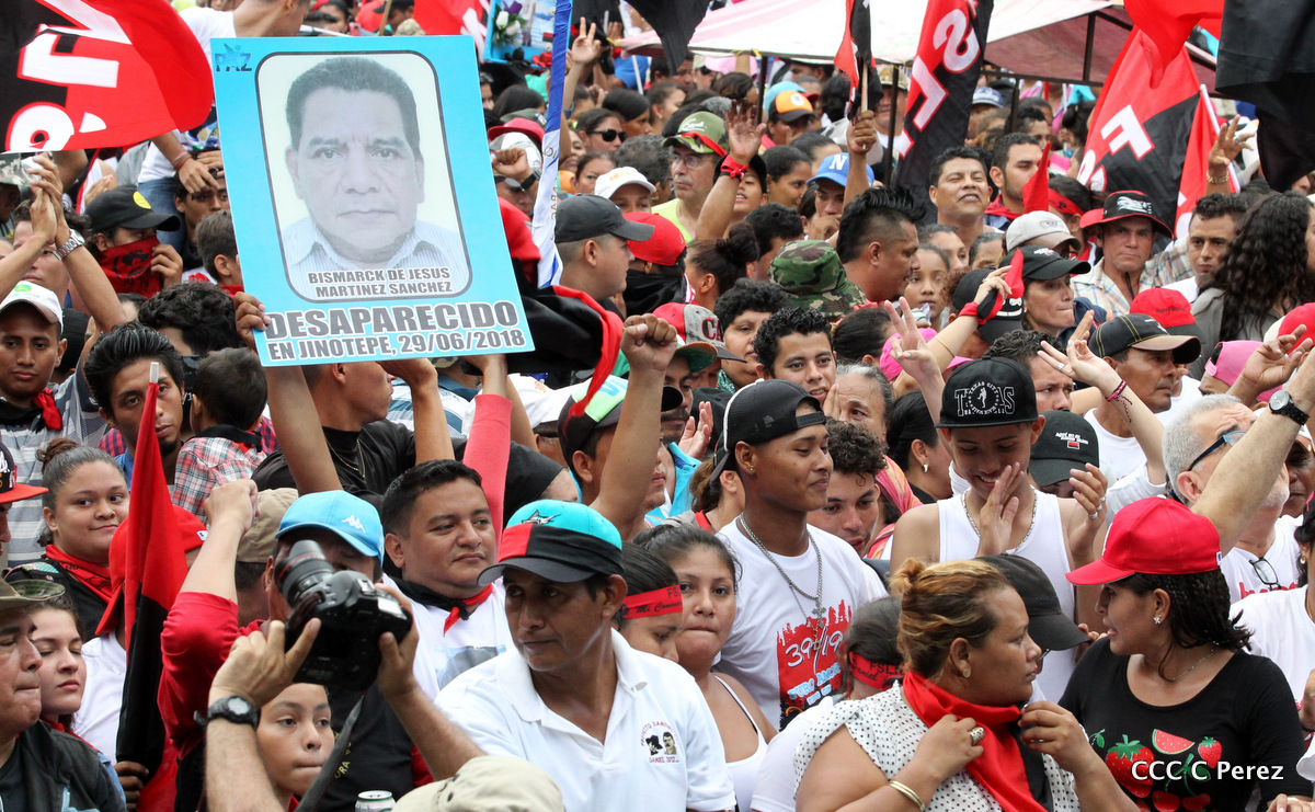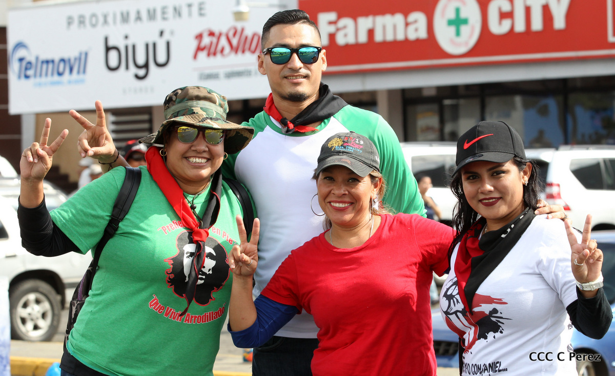 Desde la rotonda Jean Paul Genie cientos de miles de nicaragüenses caminaron hasta llegar a la Avenida de Bolívar a Chávez, en respaldo al Gobierno del Comandante Daniel Ortega y la Compañera Rosario Murillo y en solidaridad con quienes perdieron a un amigo, a un familiar o un compañero de trabajo. Miles recorrieron las principales arterias de la ciudad pidiendo justicia y reparación para las víctimas del terrorismo.