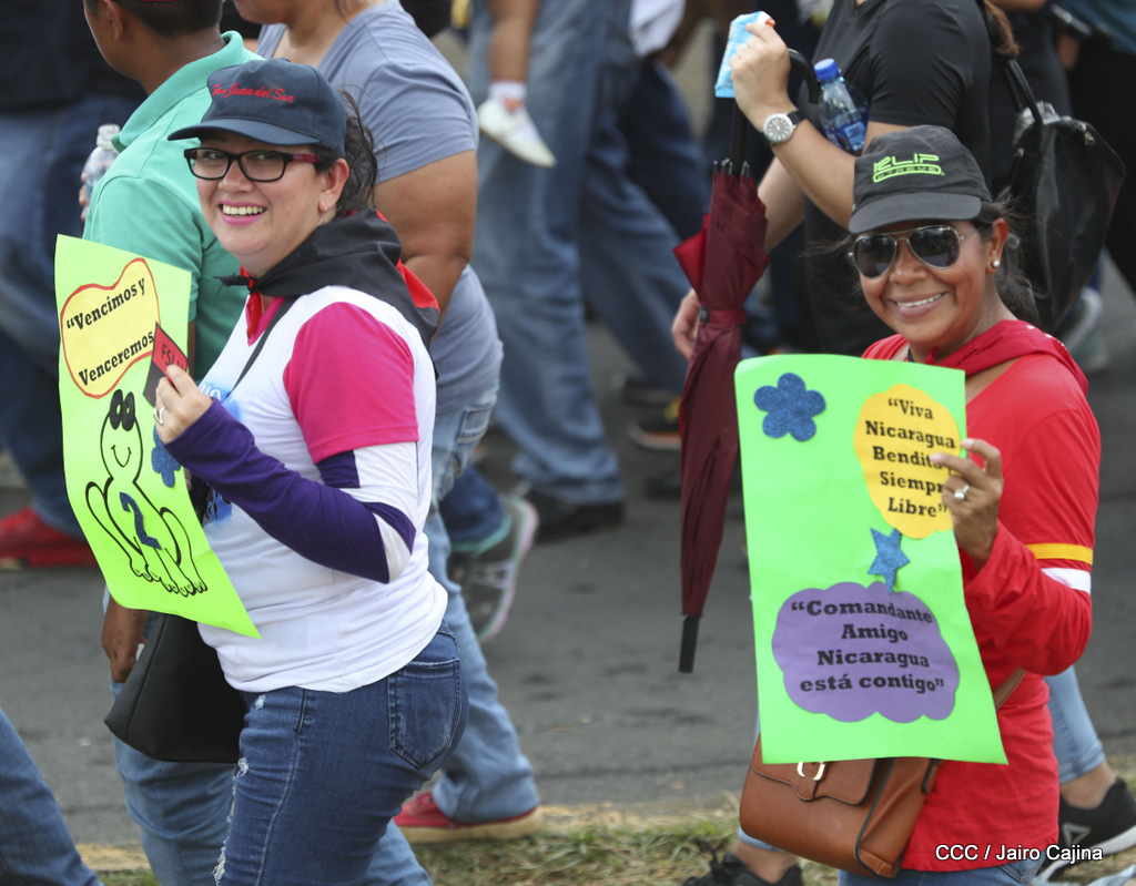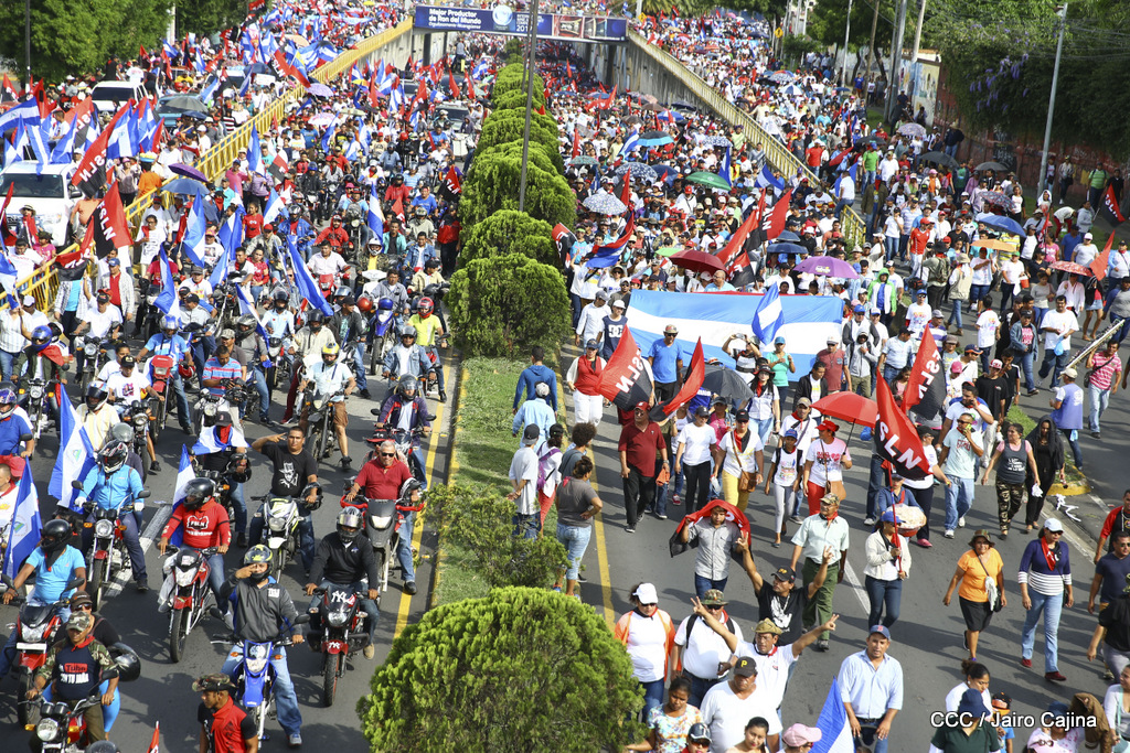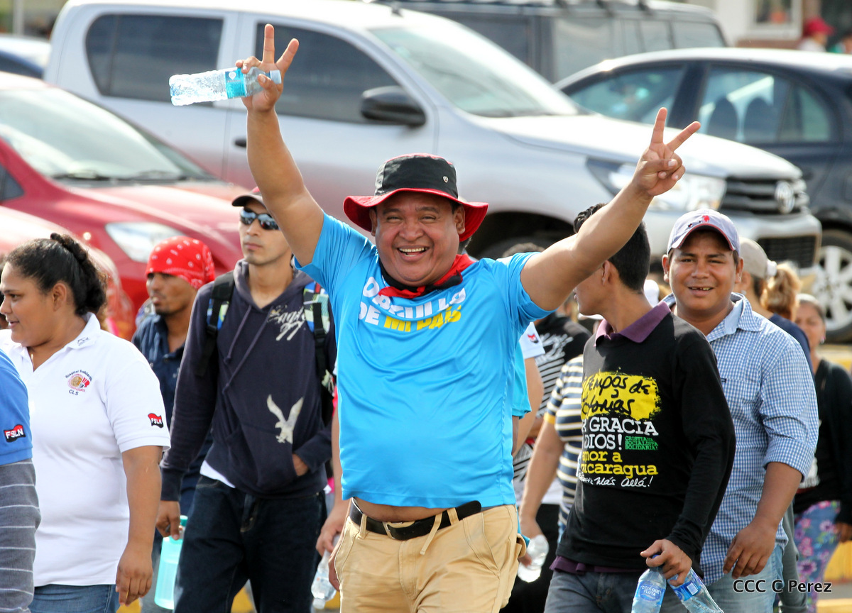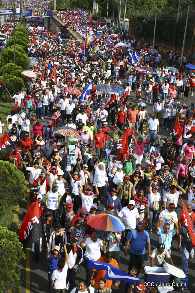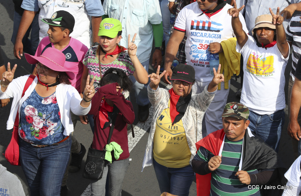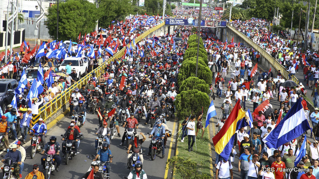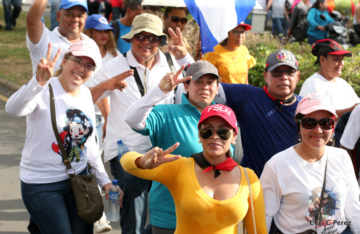 Desde la rotonda Jean Paul Genie cientos de miles de nicaragüenses caminaron hasta llegar a la Avenida de Bolívar a Chávez, en respaldo al Gobierno del Comandante Daniel Ortega y la Compañera Rosario Murillo y en solidaridad con quienes perdieron a un amigo, a un familiar o un compañero de trabajo. Miles recorrieron las principales arterias de la ciudad pidiendo justicia y reparación para las víctimas del terrorismo.