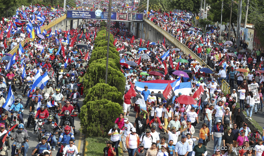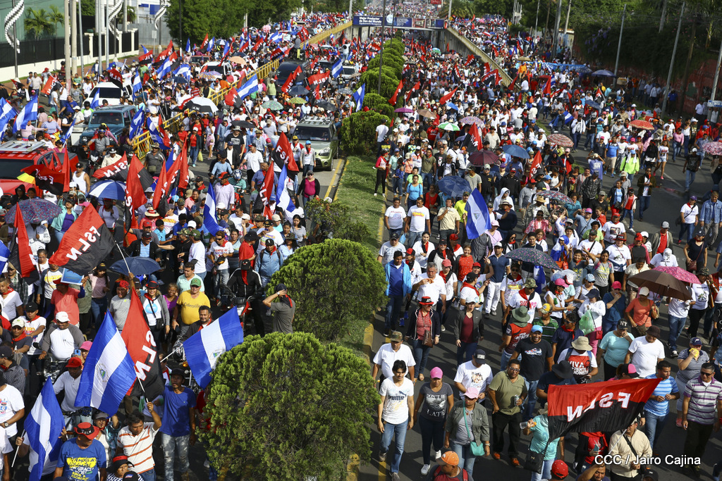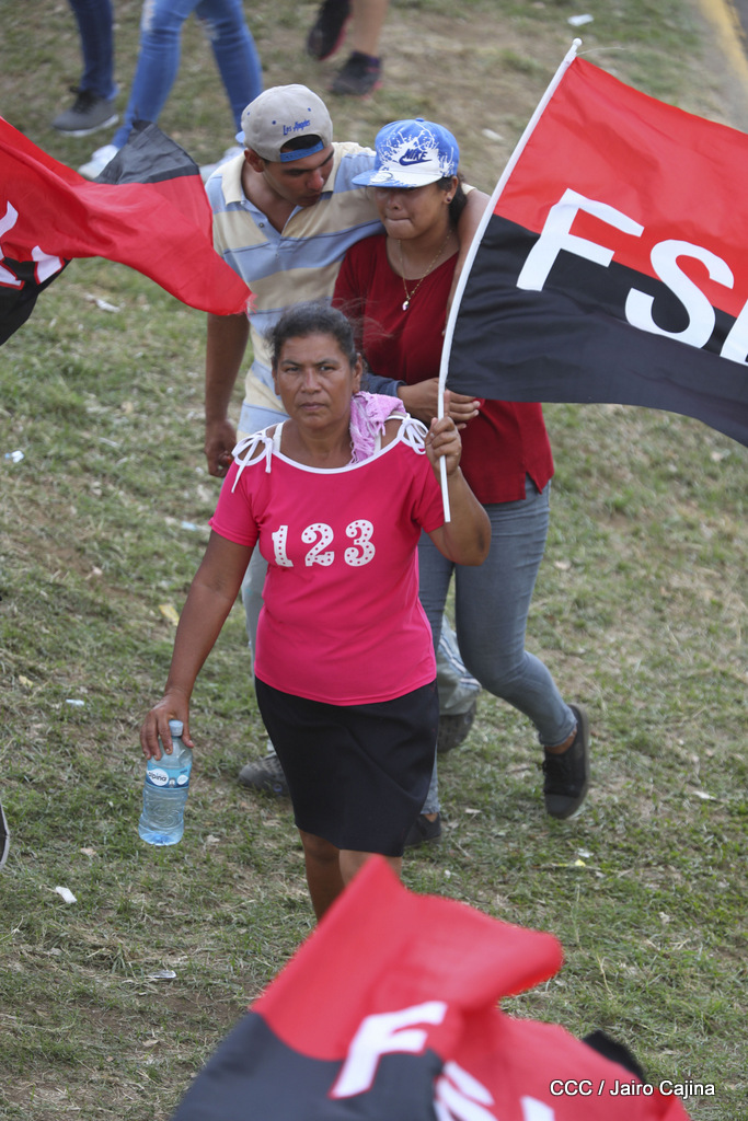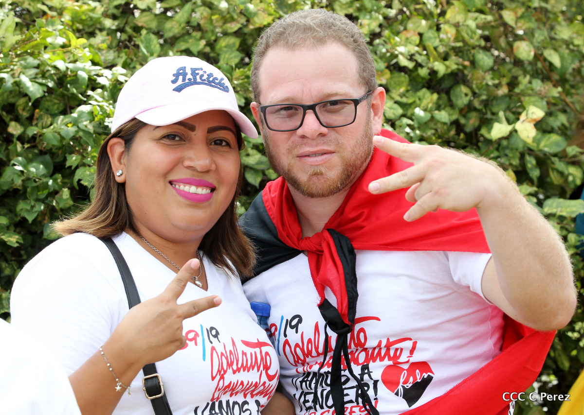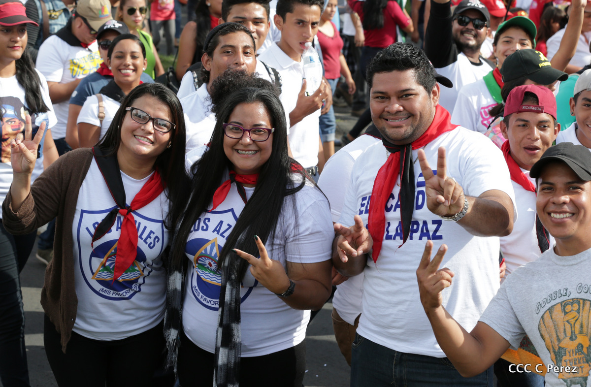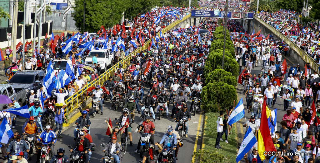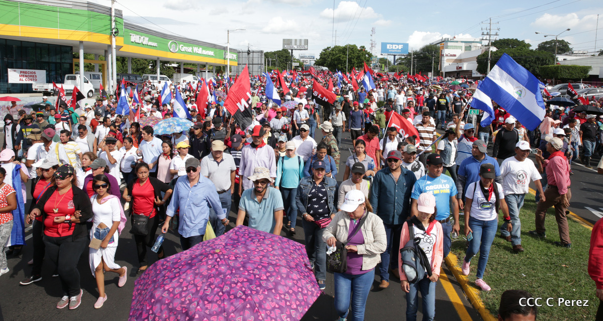Desde la rotonda Jean Paul Genie cientos de miles de nicaragüenses caminaron hasta llegar a la Avenida de Bolívar a Chávez, en respaldo al Gobierno del Comandante Daniel Ortega y la Compañera Rosario Murillo y en solidaridad con quienes perdieron a un amigo, a un familiar o un compañero de trabajo. Miles recorrieron las principales arterias de la ciudad pidiendo justicia y reparación para las víctimas del terrorismo.