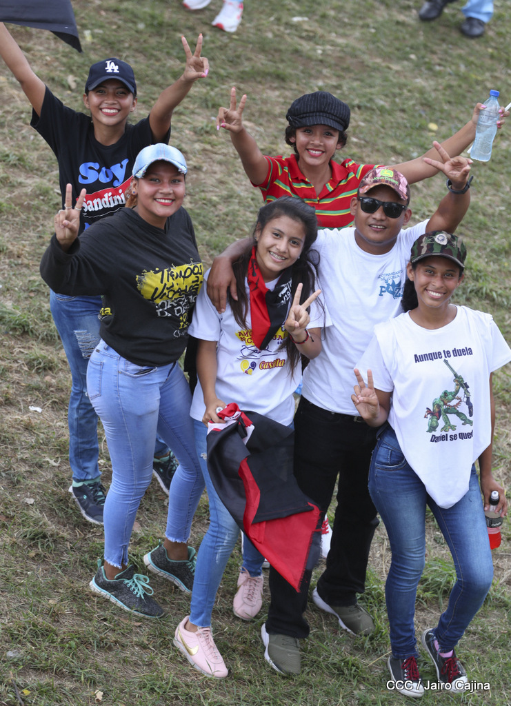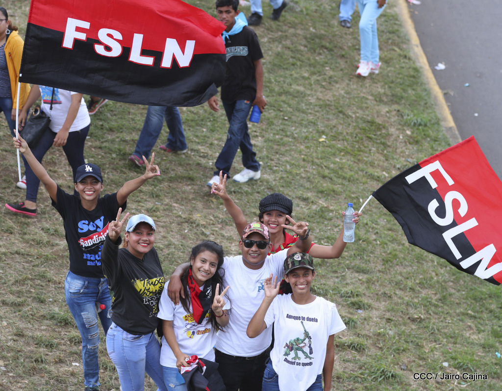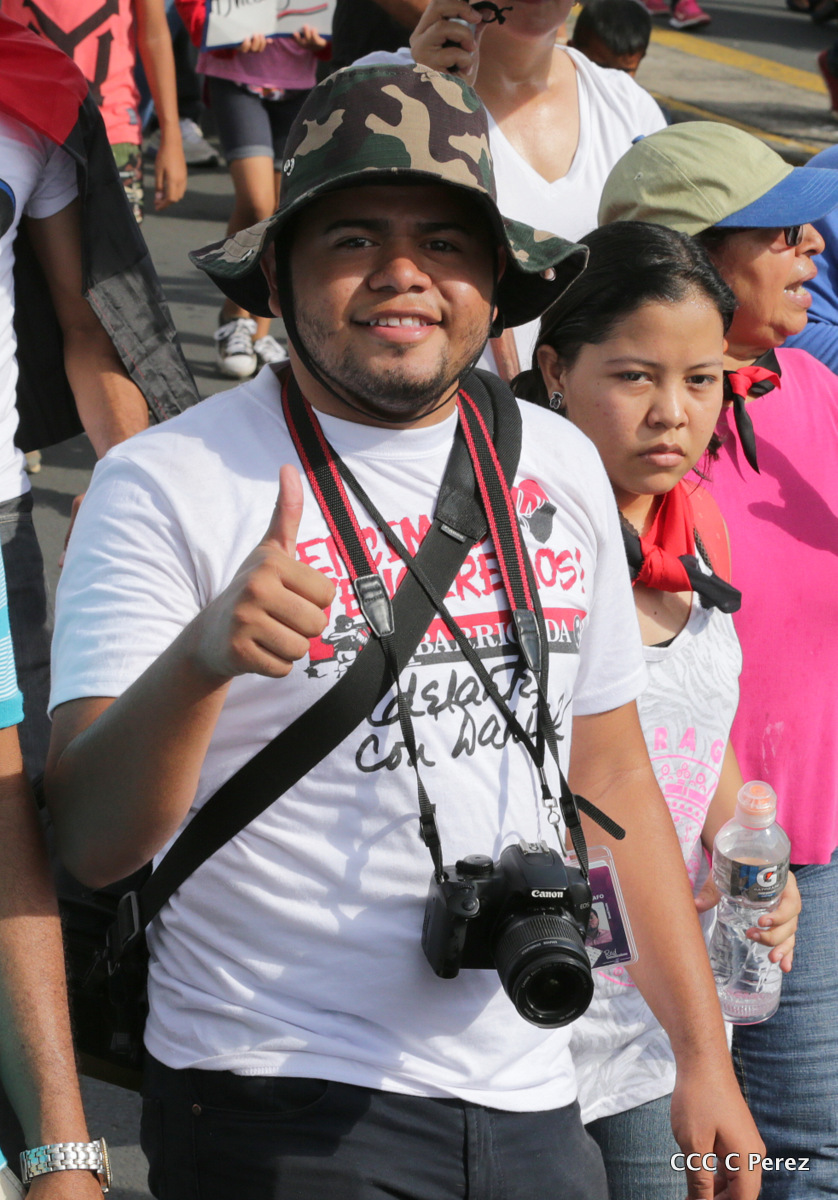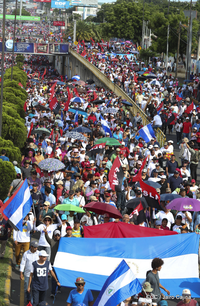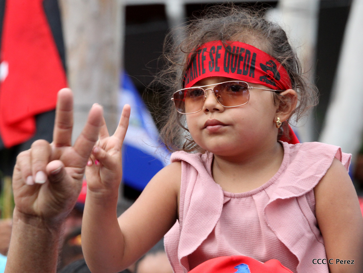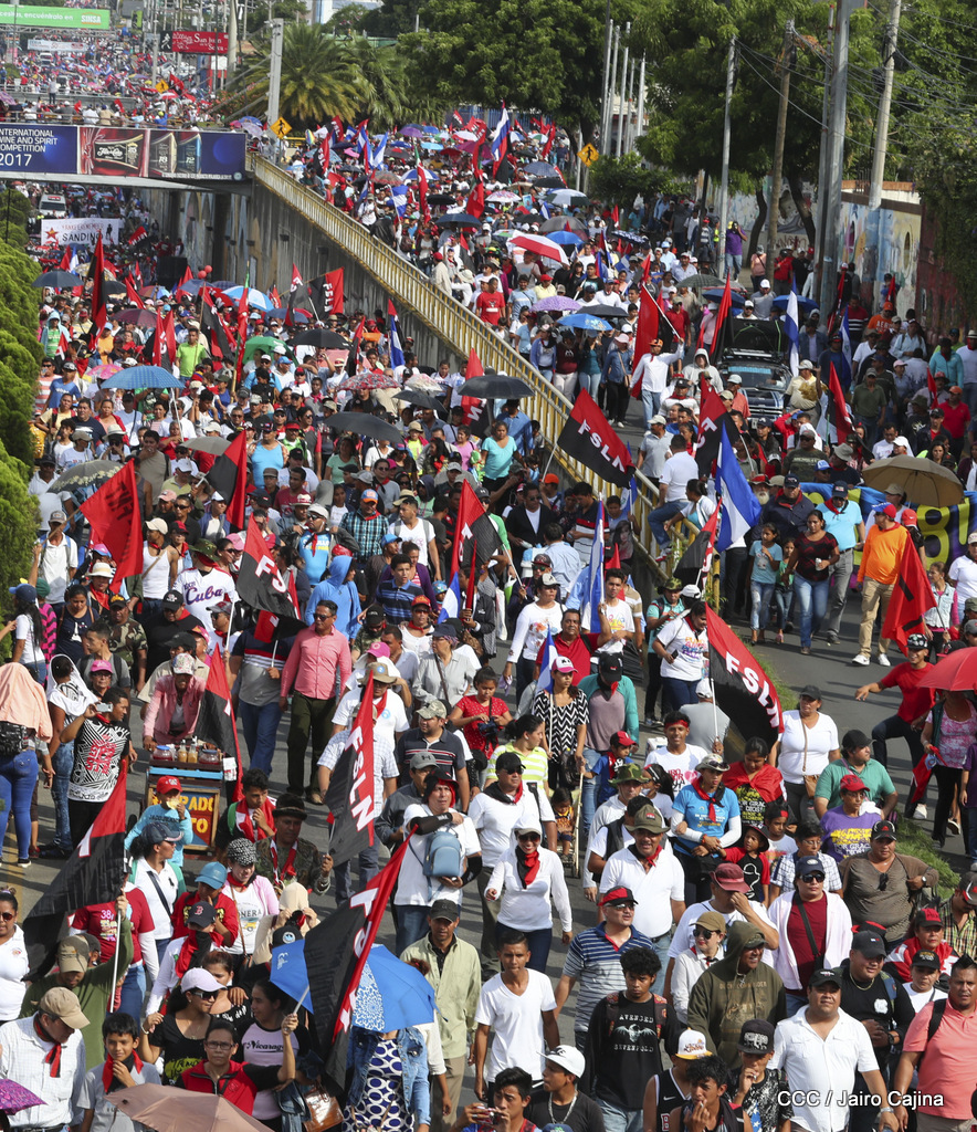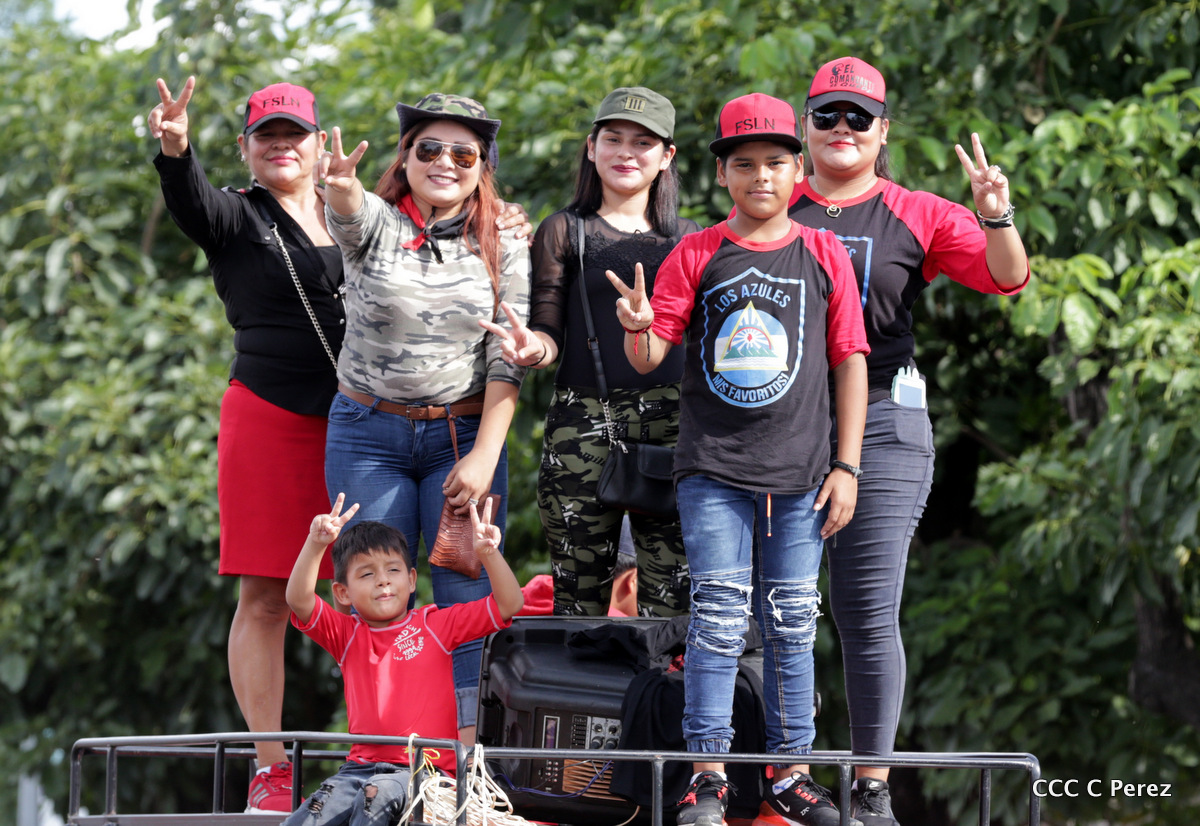 Desde la rotonda Jean Paul Genie cientos de miles de nicaragüenses caminaron hasta llegar a la Avenida de Bolívar a Chávez, en respaldo al Gobierno del Comandante Daniel Ortega y la Compañera Rosario Murillo y en solidaridad con quienes perdieron a un amigo, a un familiar o un compañero de trabajo. Miles recorrieron las principales arterias de la ciudad pidiendo justicia y reparación para las víctimas del terrorismo.