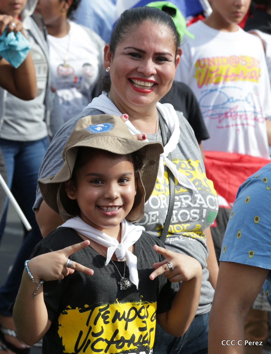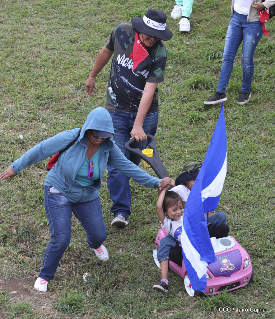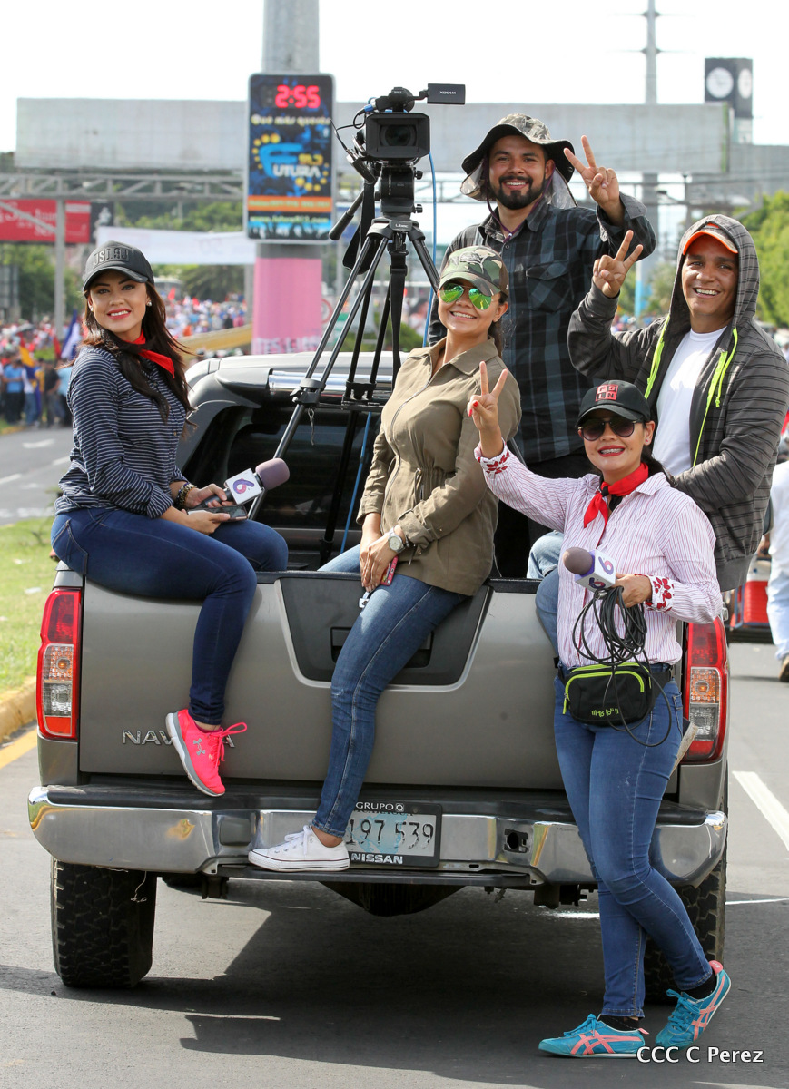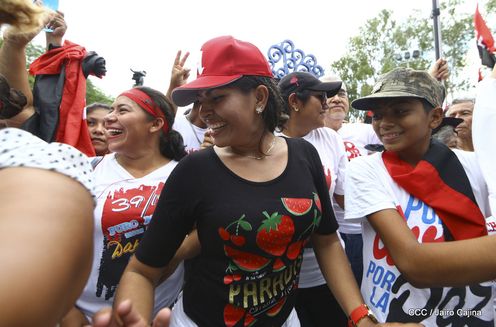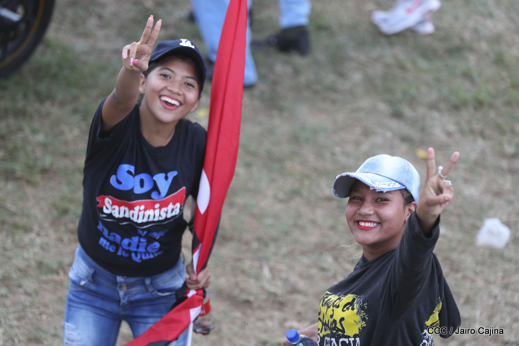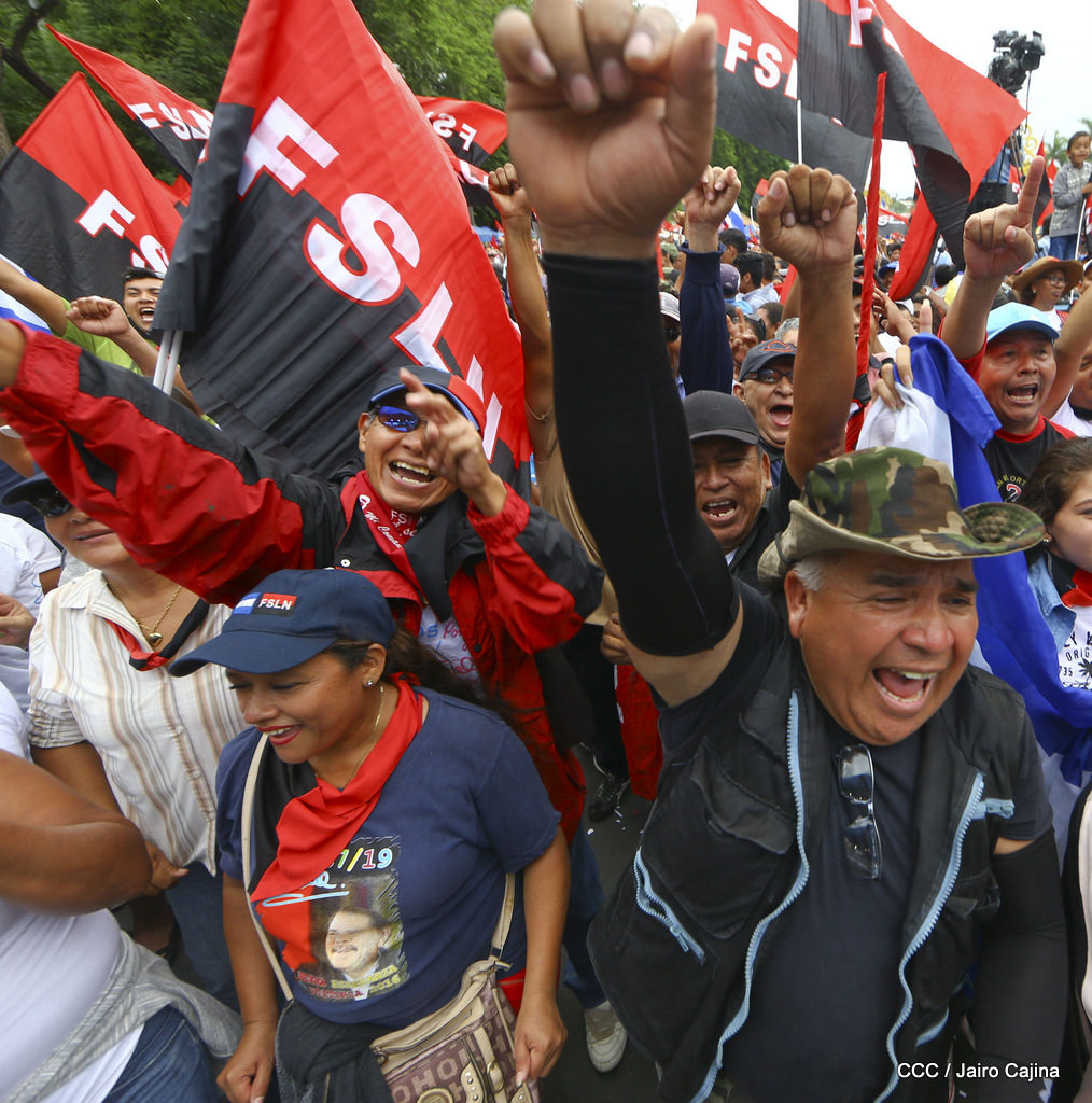 Desde la rotonda Jean Paul Genie cientos de miles de nicaragüenses caminaron hasta llegar a la Avenida de Bolívar a Chávez, en respaldo al Gobierno del Comandante Daniel Ortega y la Compañera Rosario Murillo y en solidaridad con quienes perdieron a un amigo, a un familiar o un compañero de trabajo. Miles recorrieron las principales arterias de la ciudad pidiendo justicia y reparación para las víctimas del terrorismo.