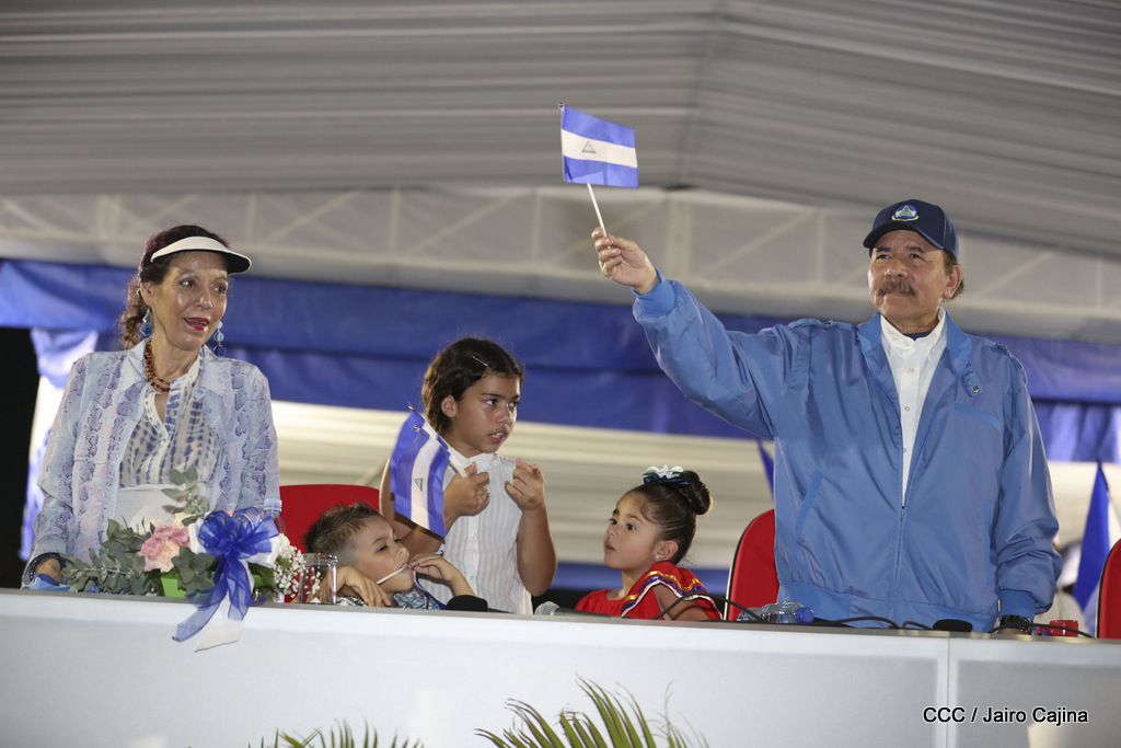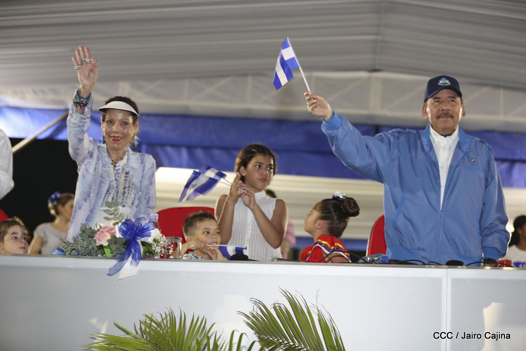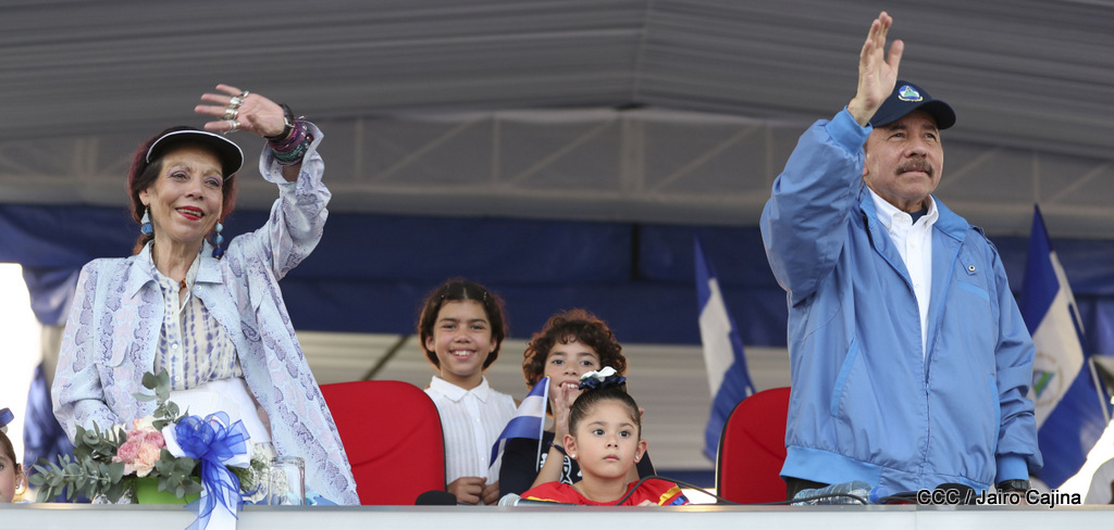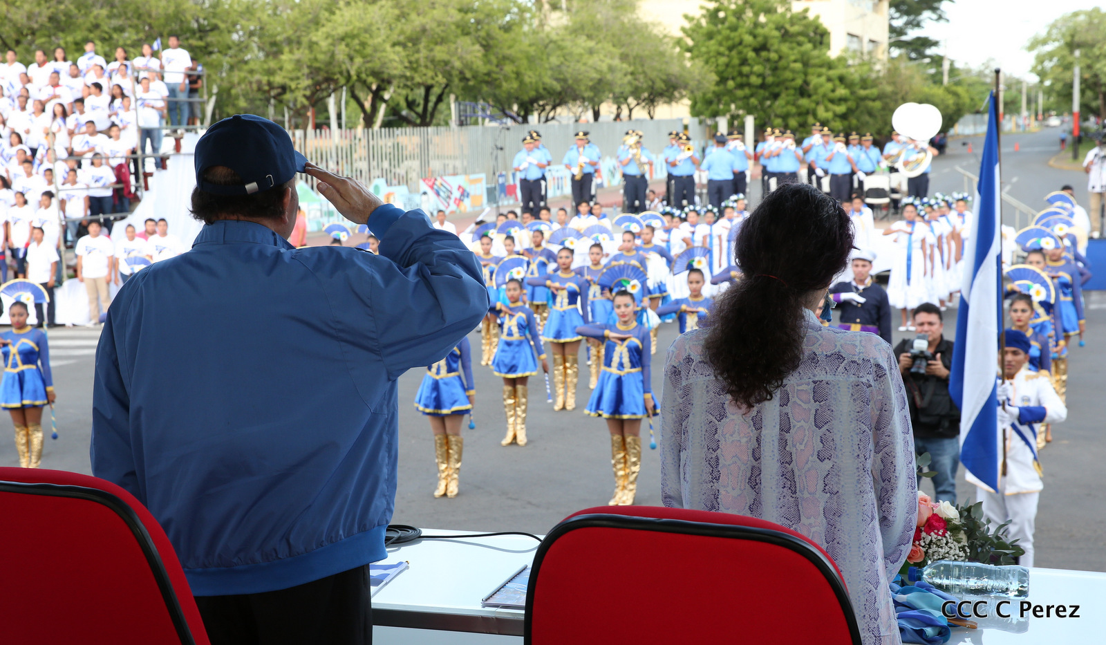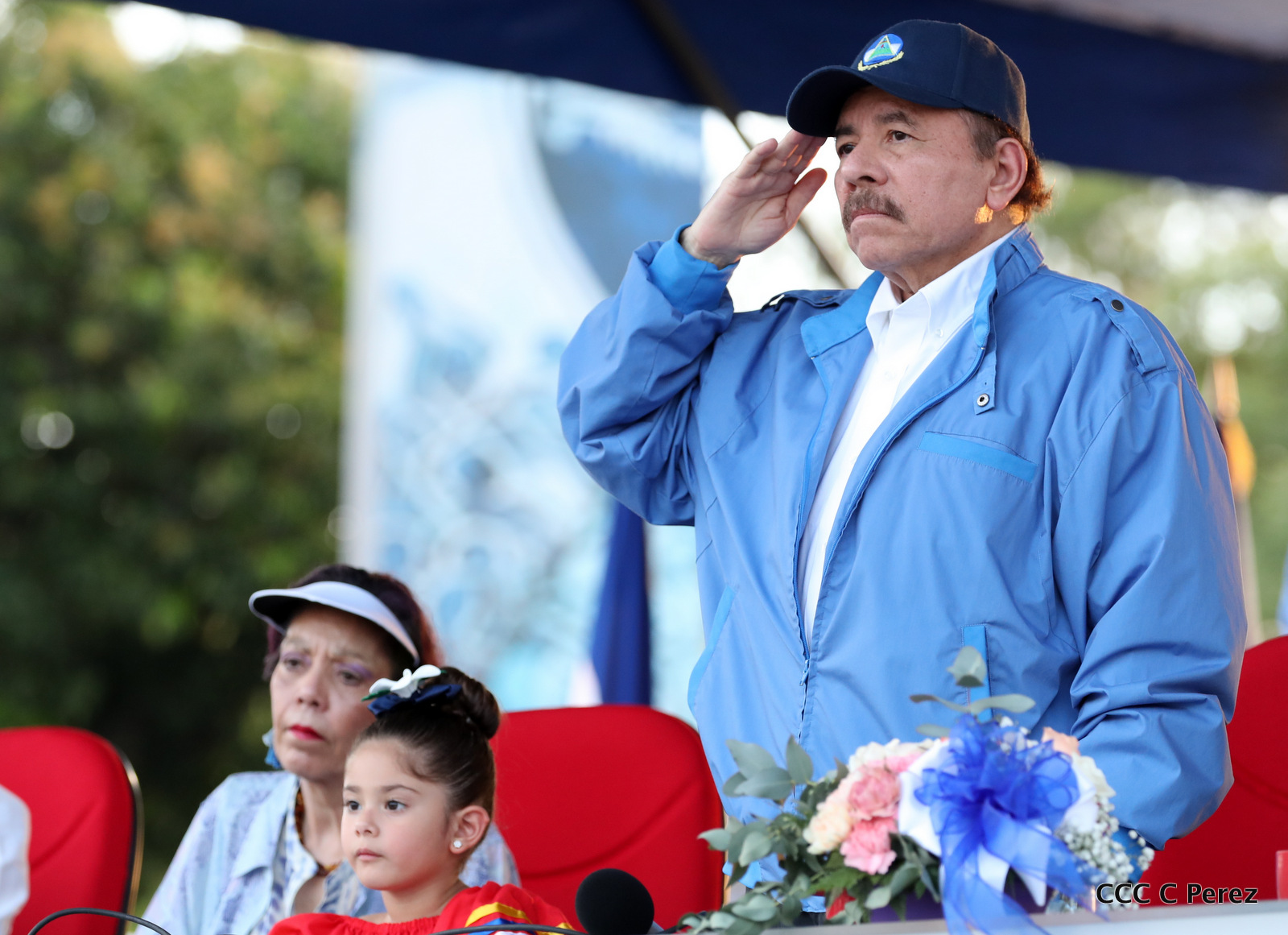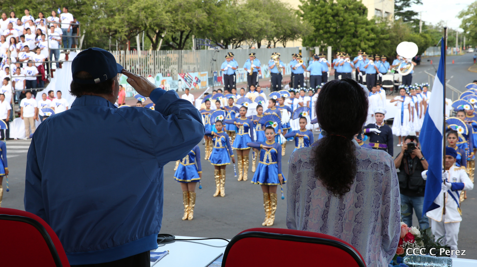 El Comandante Daniel Ortega y Compañera Rosario Murillo presidieron el desfile patrio 2018. Estos Jóvenes que han desfilado en todo el país, celebrando nuestra Independencia y el heroísmo de la Batalla de San Jacinto. Estos jóvenes, generación del Bicentenario, serán artífices, protagonistas y testigos de esa Nicaragua que prosperará, y prosperar quiere decir también crecer en Justicia, crecer en Capacidad de Amor al Prójimo.