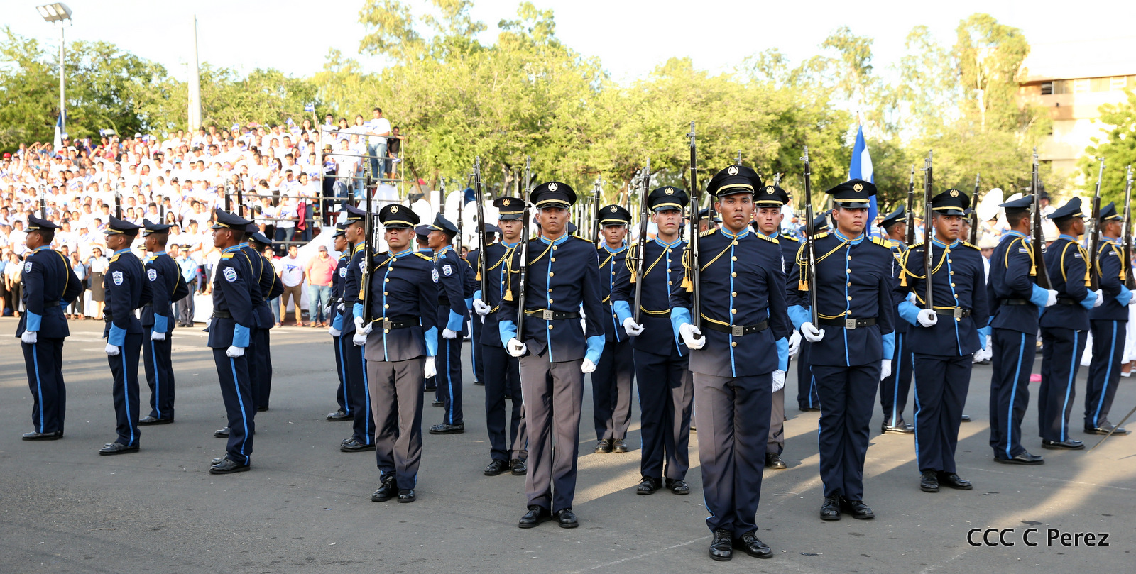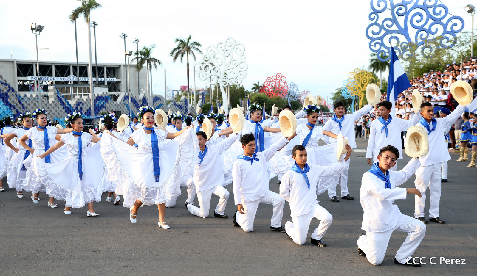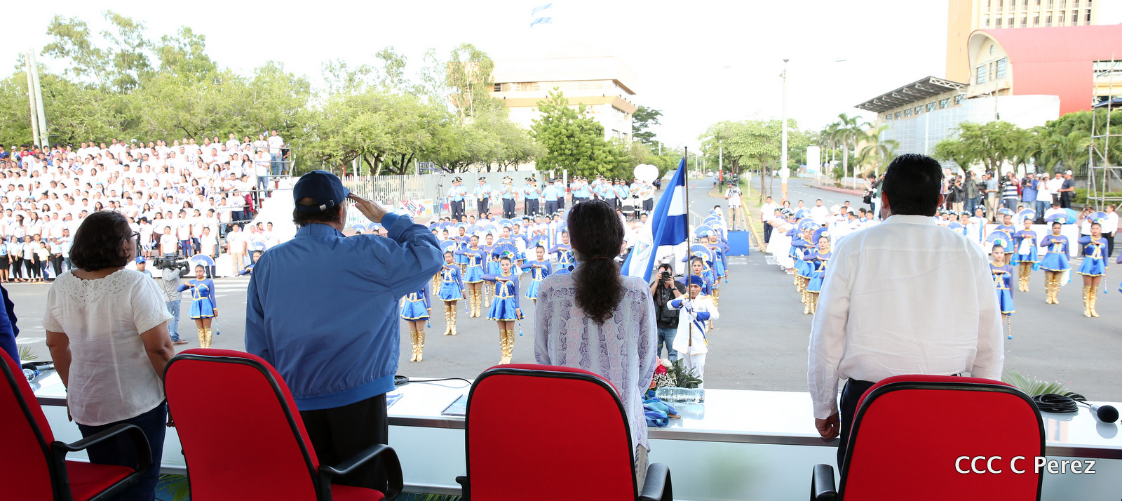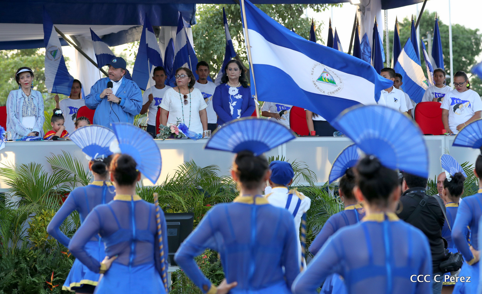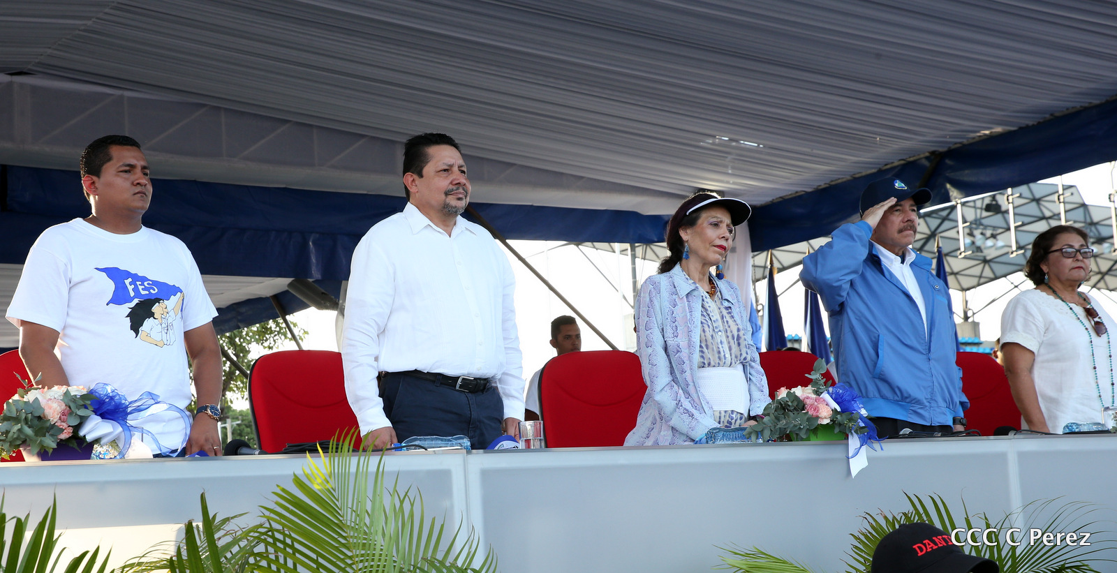 El Comandante Daniel Ortega y Compañera Rosario Murillo presidieron el desfile patrio 2018. Estos Jóvenes que han desfilado en todo el país, celebrando nuestra Independencia y el heroísmo de la Batalla de San Jacinto. Estos jóvenes, generación del Bicentenario, serán artífices, protagonistas y testigos de esa Nicaragua que prosperará, y prosperar quiere decir también crecer en Justicia, crecer en Capacidad de Amor al Prójimo.
