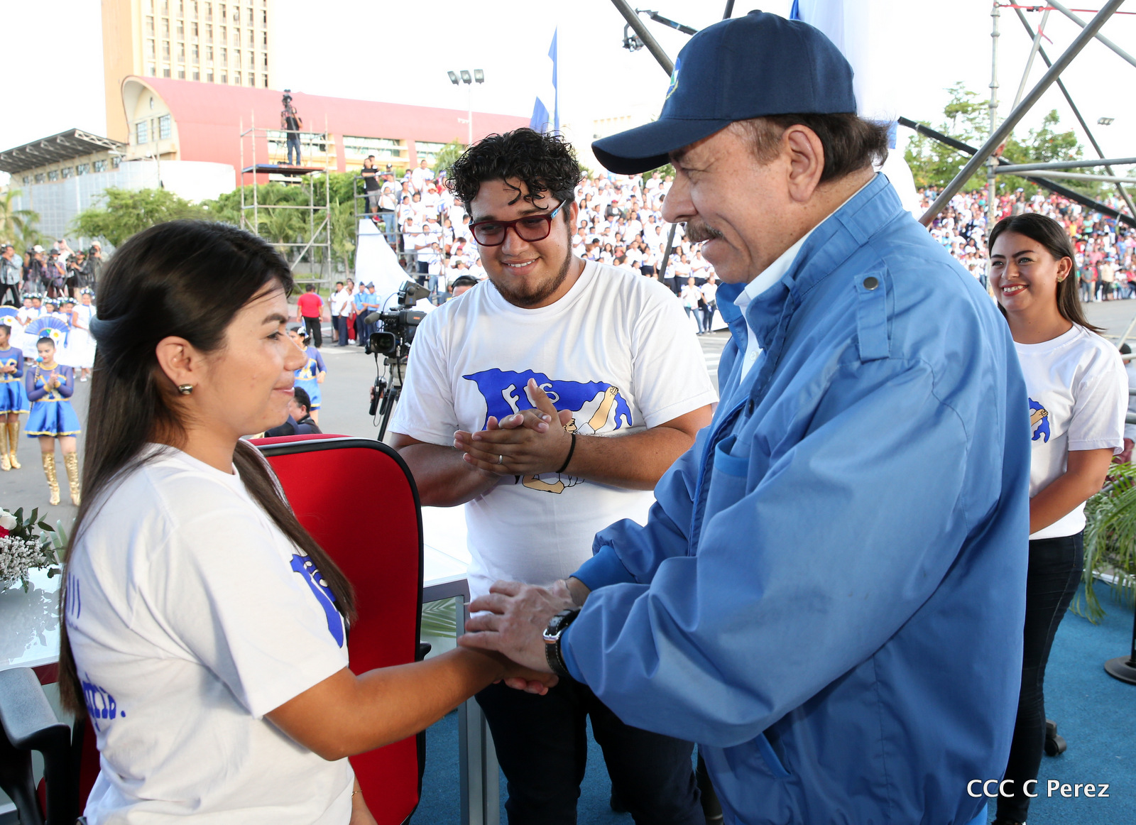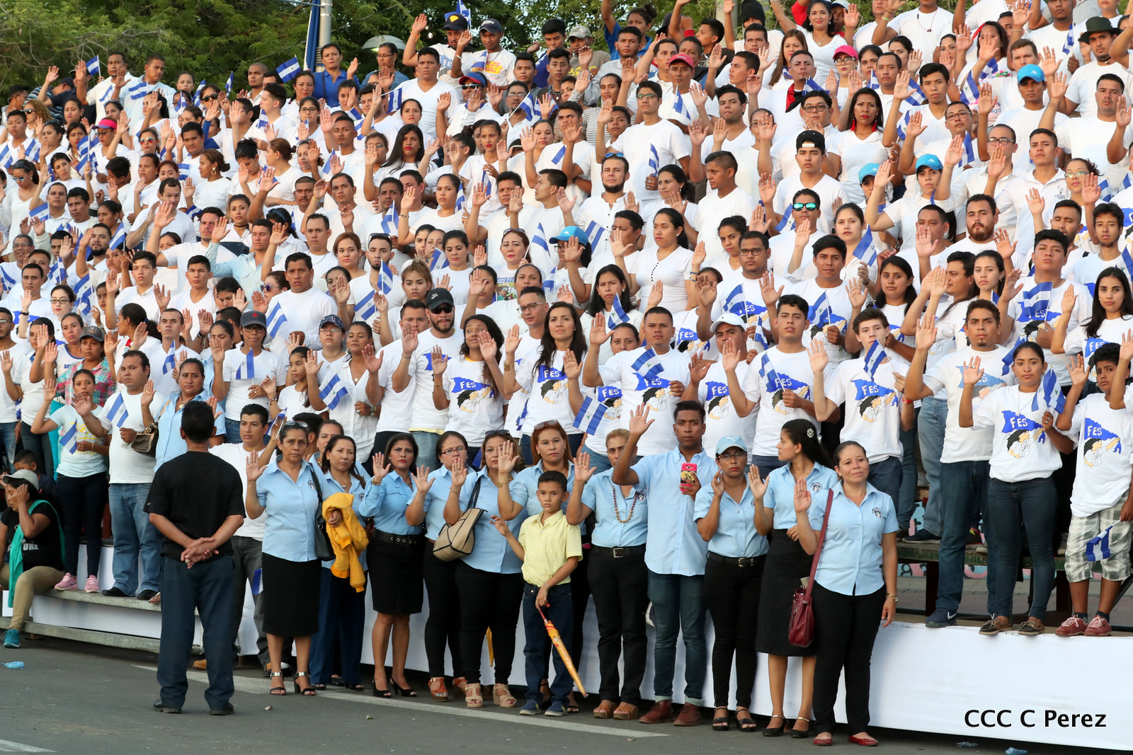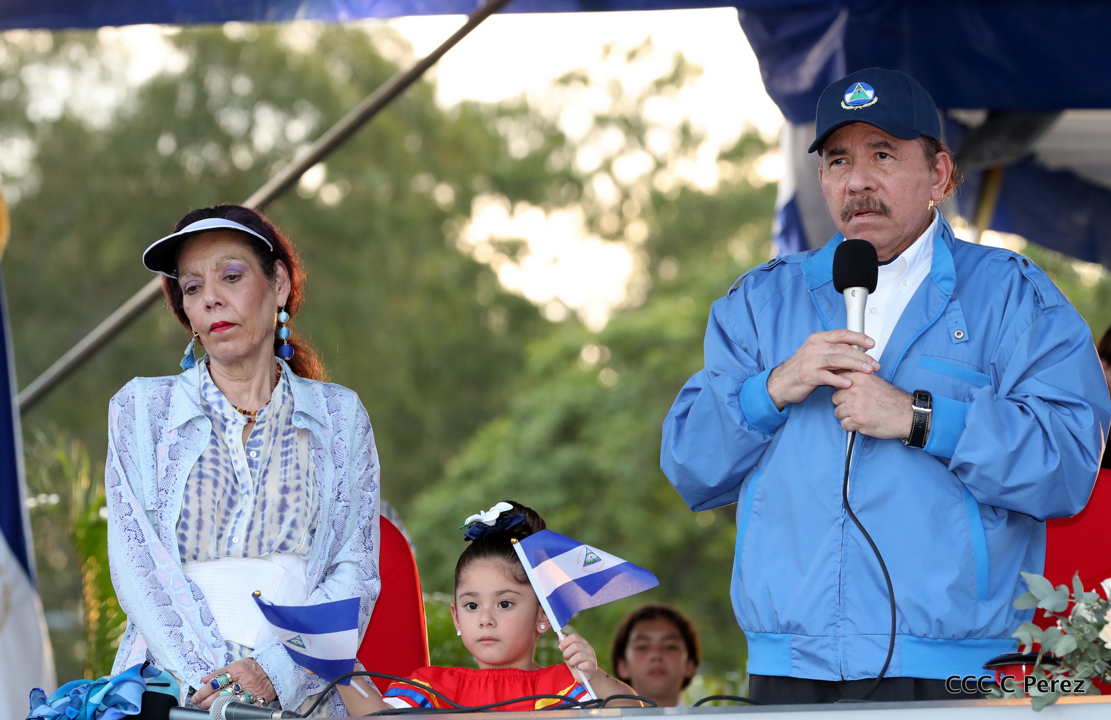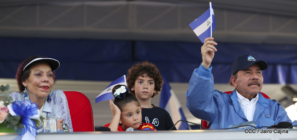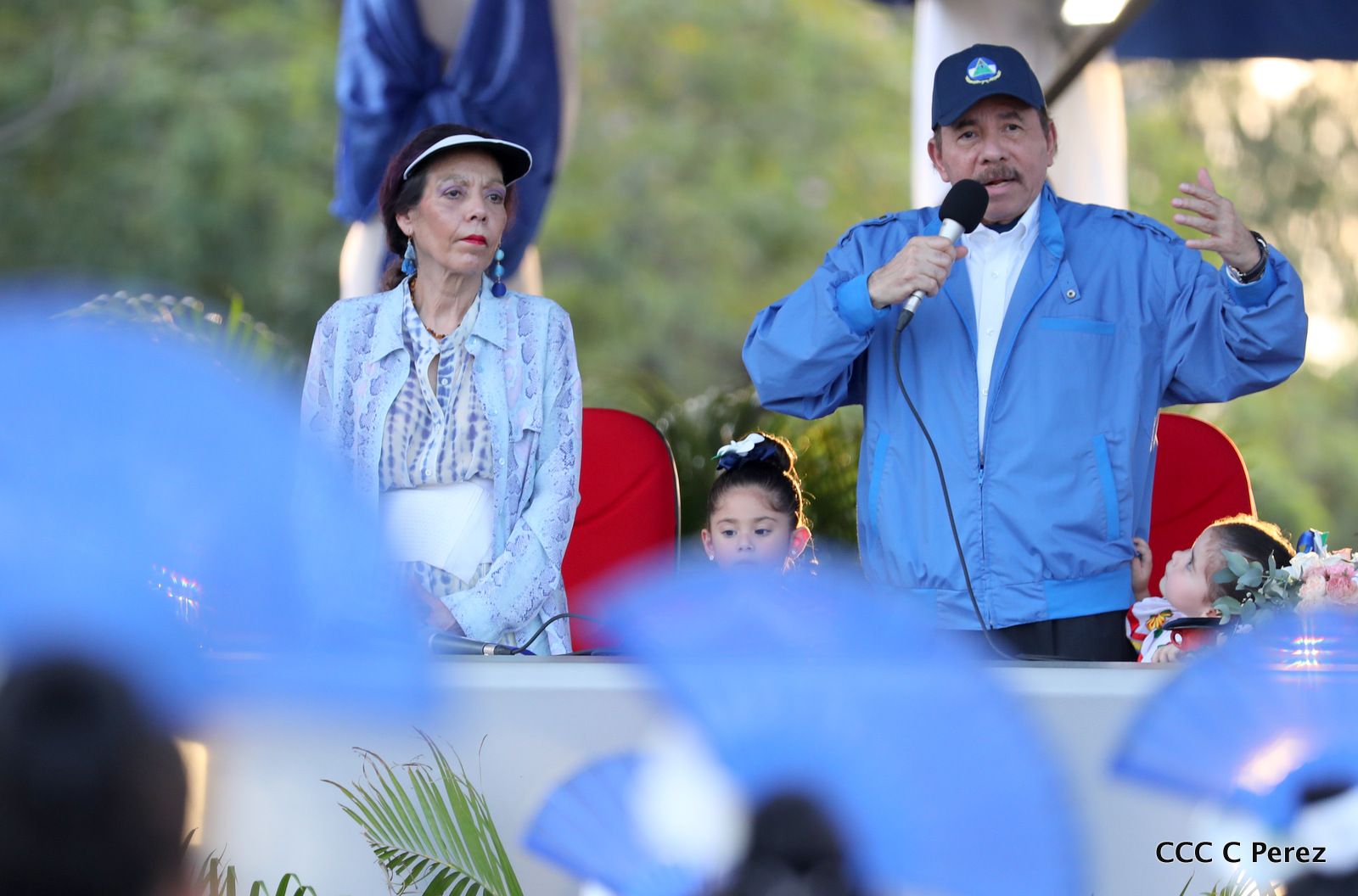 El Comandante Daniel Ortega y Compañera Rosario Murillo presidieron el desfile patrio 2018. Estos Jóvenes que han desfilado en todo el país, celebrando nuestra Independencia y el heroísmo de la Batalla de San Jacinto. Estos jóvenes, generación del Bicentenario, serán artífices, protagonistas y testigos de esa Nicaragua que prosperará, y prosperar quiere decir también crecer en Justicia, crecer en Capacidad de Amor al Prójimo.