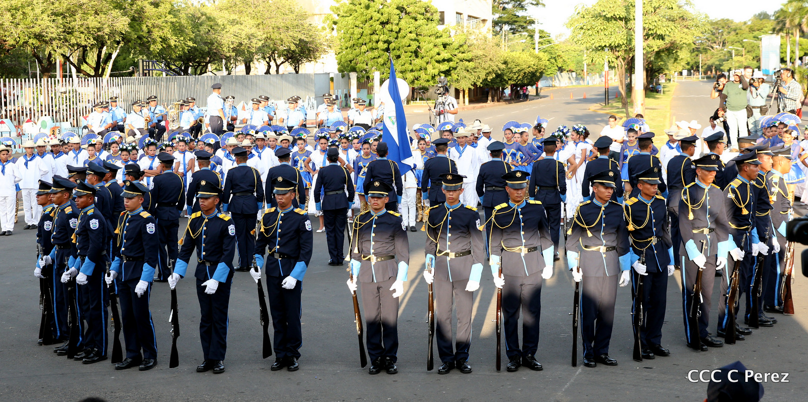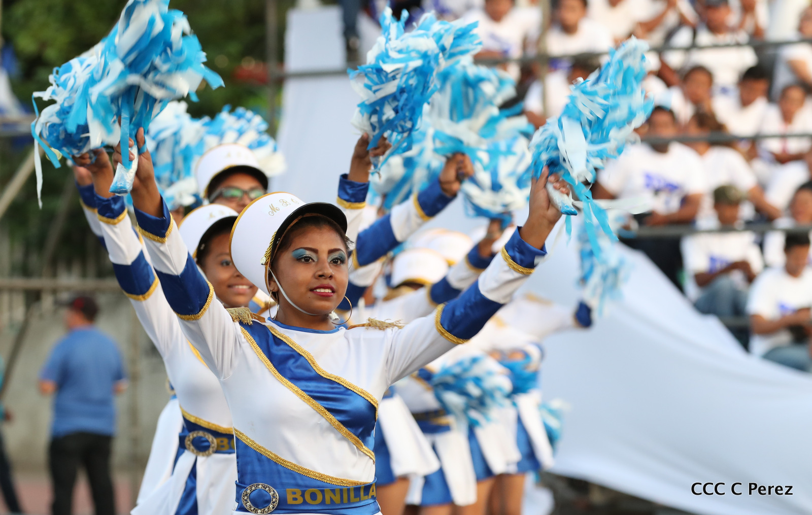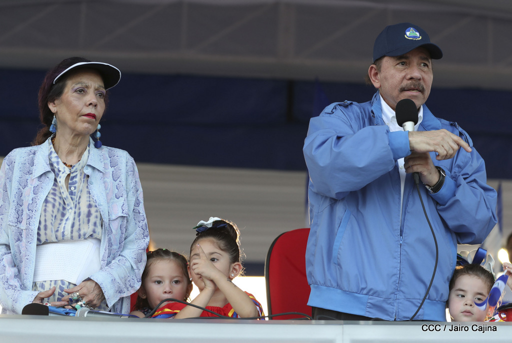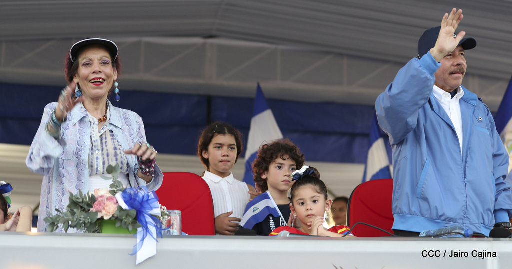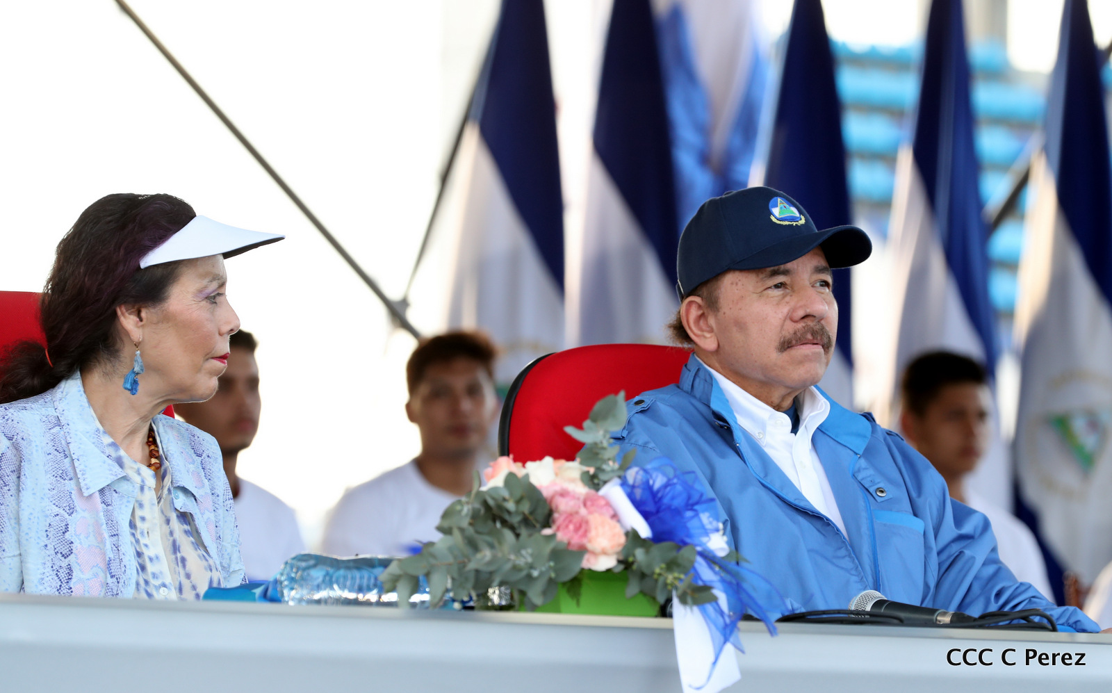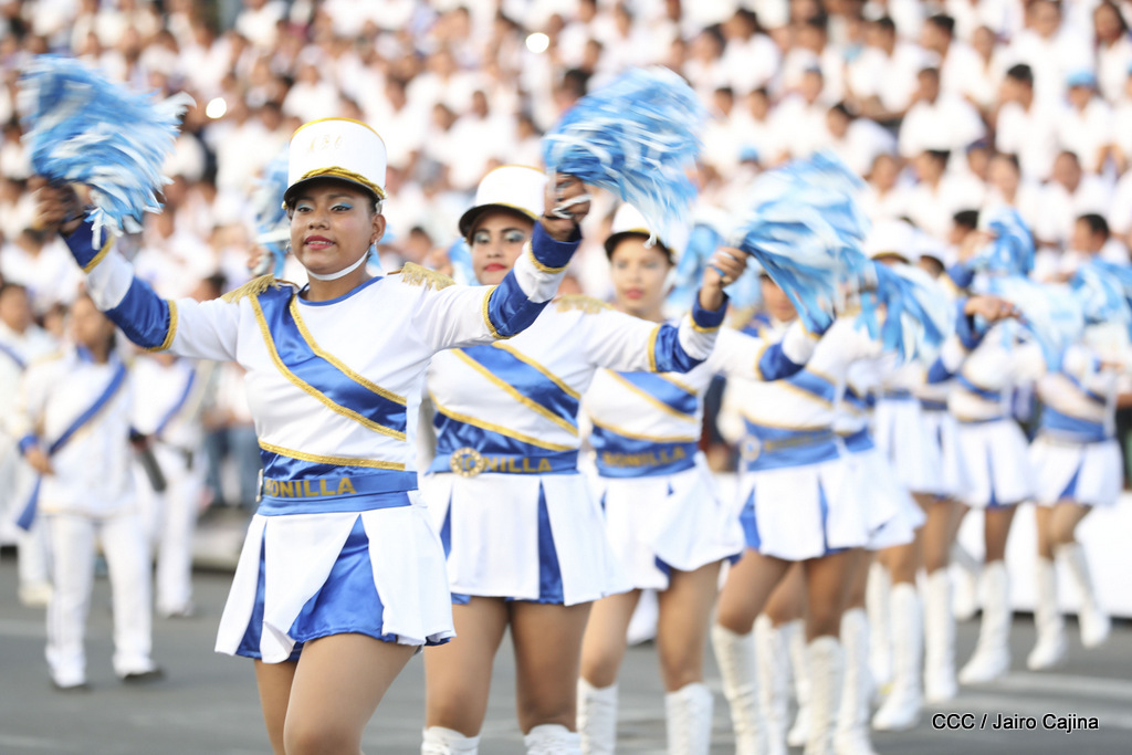 El Comandante Daniel Ortega y Compañera Rosario Murillo presidieron el desfile patrio 2018. Estos Jóvenes que han desfilado en todo el país, celebrando nuestra Independencia y el heroísmo de la Batalla de San Jacinto. Estos jóvenes, generación del Bicentenario, serán artífices, protagonistas y testigos de esa Nicaragua que prosperará, y prosperar quiere decir también crecer en Justicia, crecer en Capacidad de Amor al Prójimo.