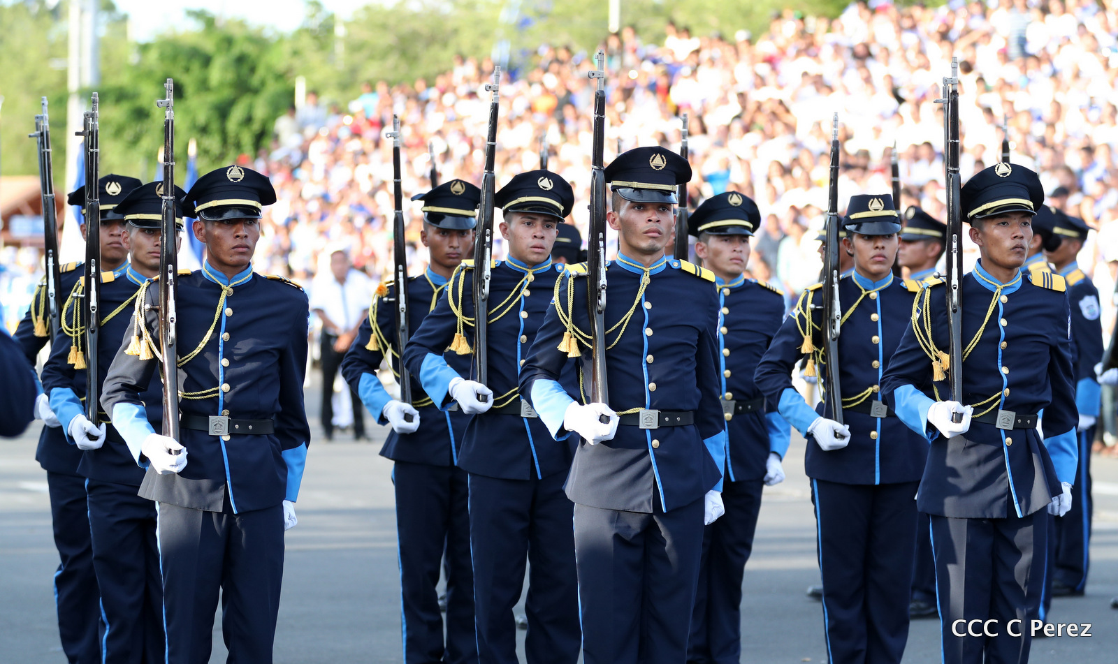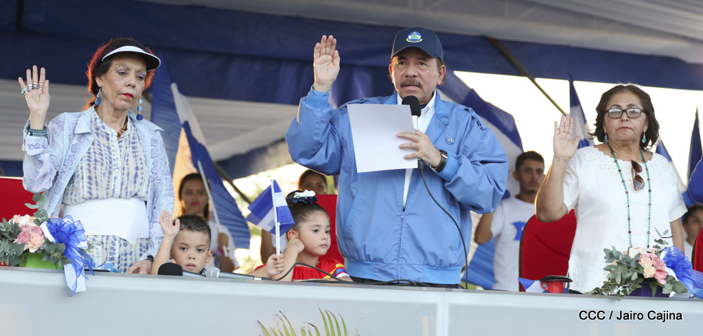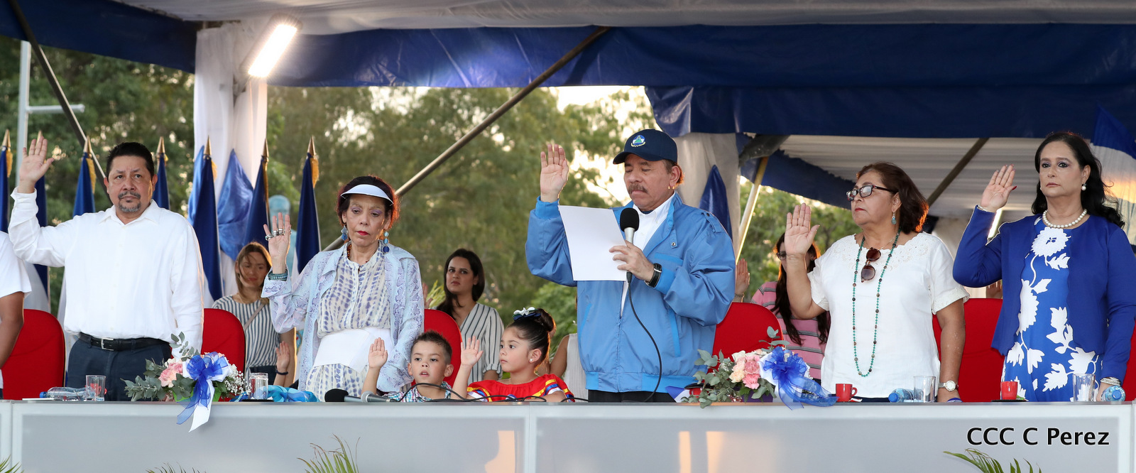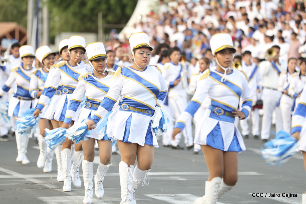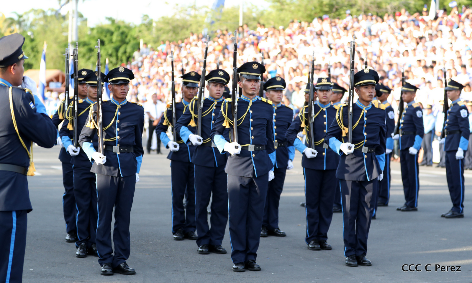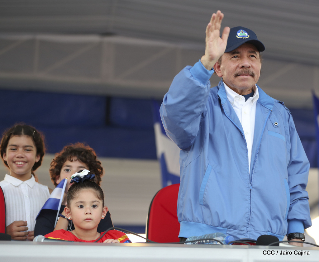 El Comandante Daniel Ortega y Compañera Rosario Murillo presidieron el desfile patrio 2018. Estos Jóvenes que han desfilado en todo el país, celebrando nuestra Independencia y el heroísmo de la Batalla de San Jacinto. Estos jóvenes, generación del Bicentenario, serán artífices, protagonistas y testigos de esa Nicaragua que prosperará, y prosperar quiere decir también crecer en Justicia, crecer en Capacidad de Amor al Prójimo.