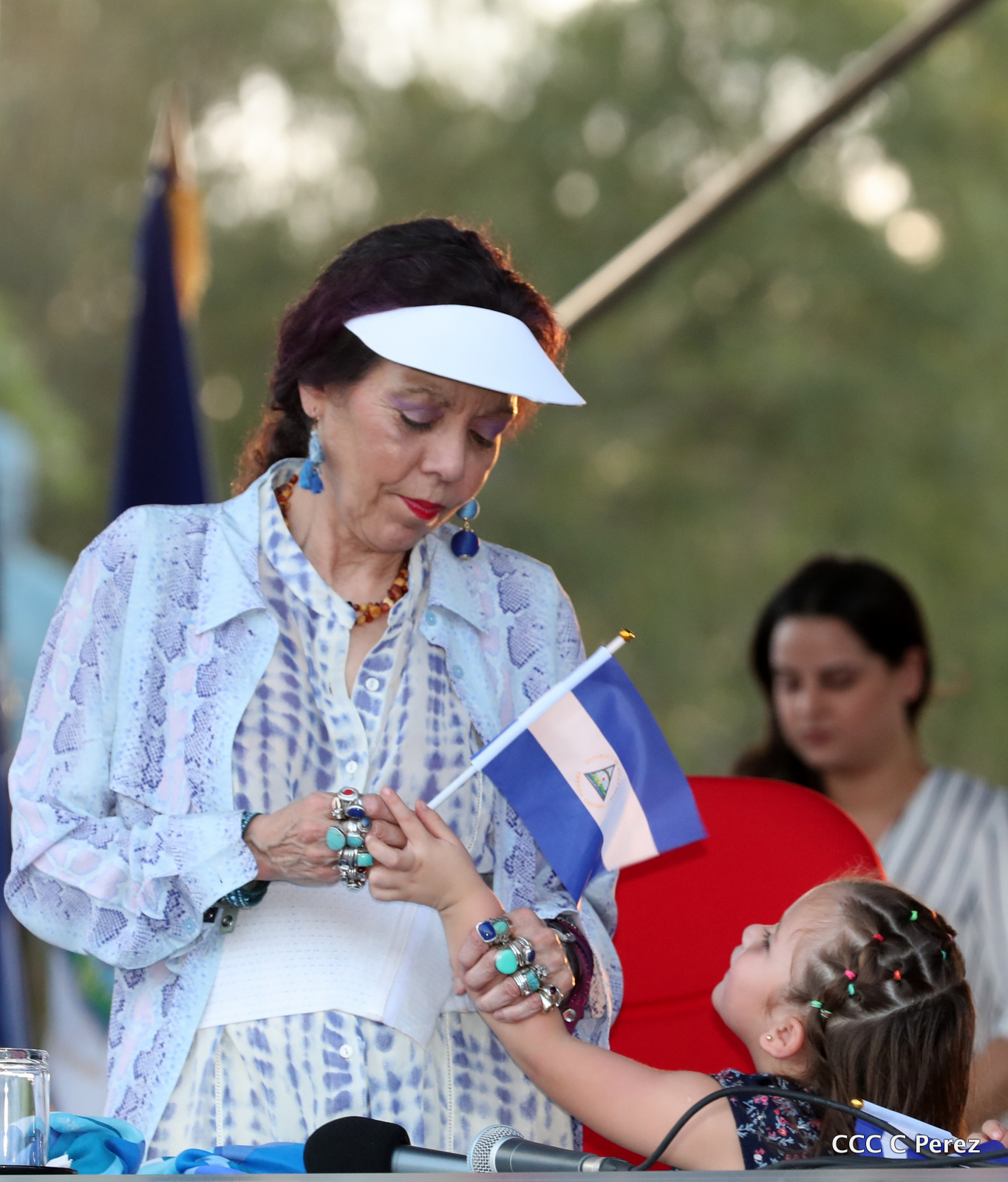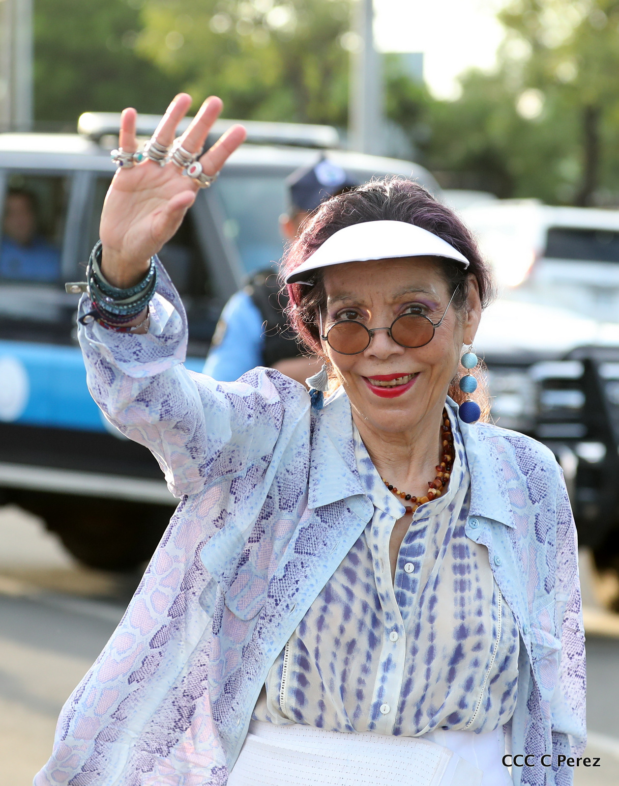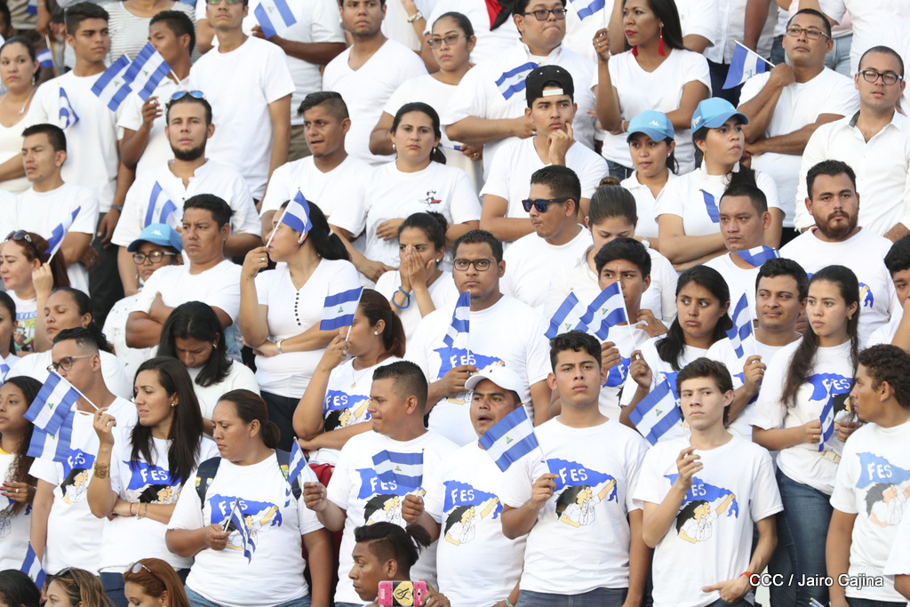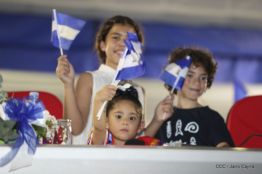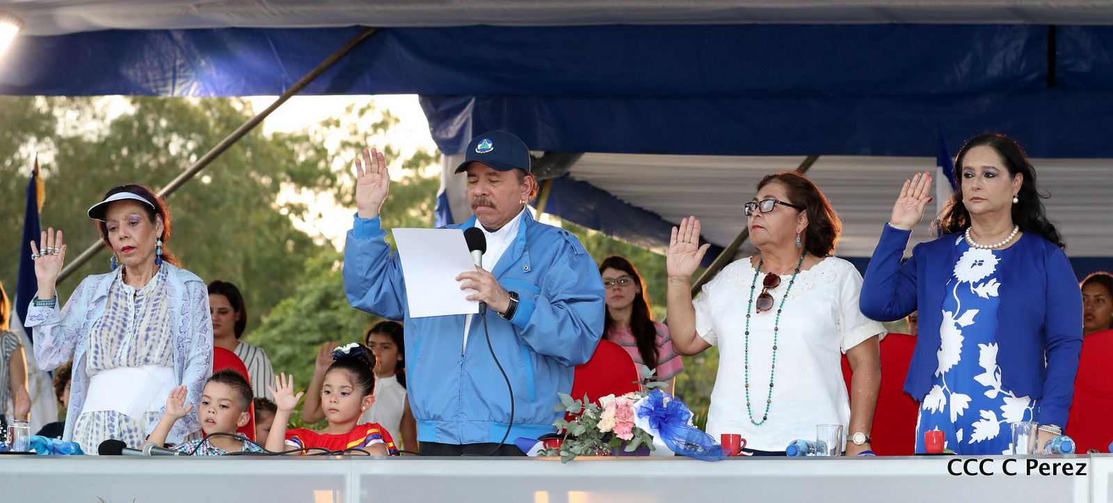 El Comandante Daniel Ortega y Compañera Rosario Murillo presidieron el desfile patrio 2018. Estos Jóvenes que han desfilado en todo el país, celebrando nuestra Independencia y el heroísmo de la Batalla de San Jacinto. Estos jóvenes, generación del Bicentenario, serán artífices, protagonistas y testigos de esa Nicaragua que prosperará, y prosperar quiere decir también crecer en Justicia, crecer en Capacidad de Amor al Prójimo.