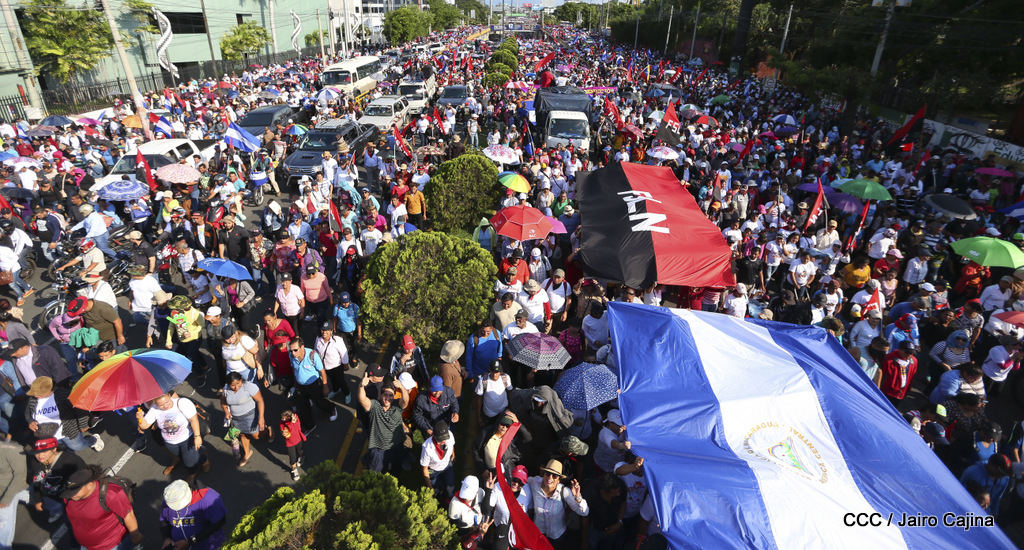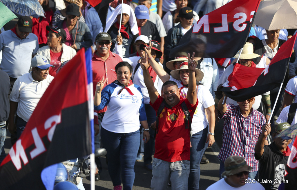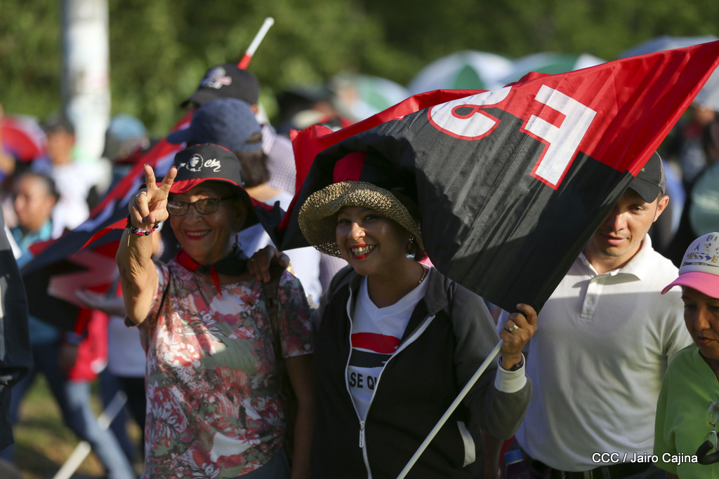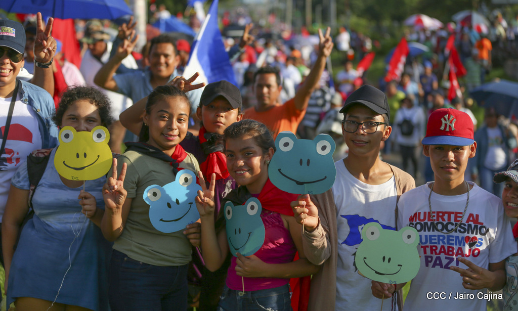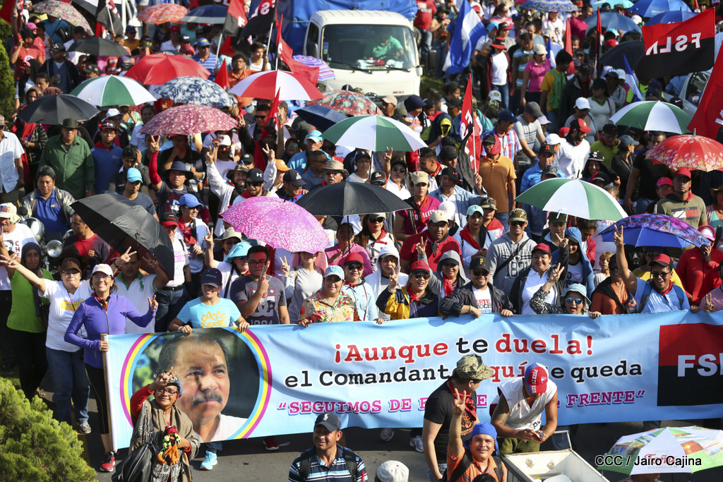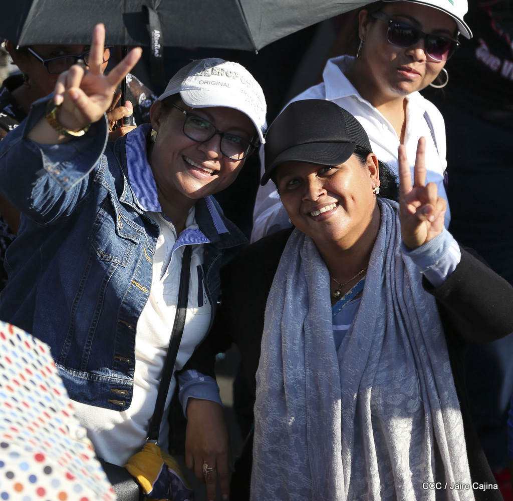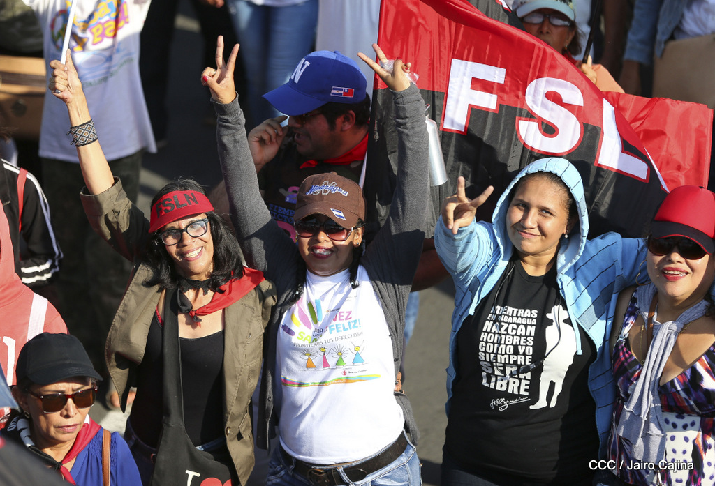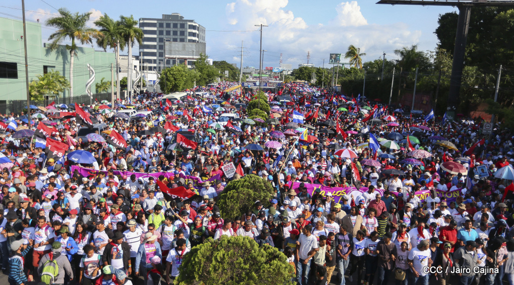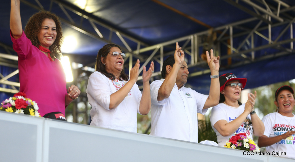 Miles de nicaragüenses marcharon este miércoles por la tarde desde la rotonda Jean Paul Genie hasta la Avenida de Bolívar y Chávez, donde fueron recibidos por nueve alcaldes de Managua, encabezados por la compañera Guiomar Irías, presidente ejecutiva de INIFOM, para ratificar su compromiso por la paz, la justicia y el resurgir de la Nación.