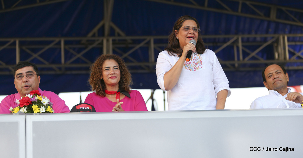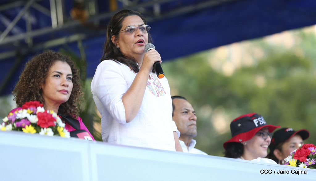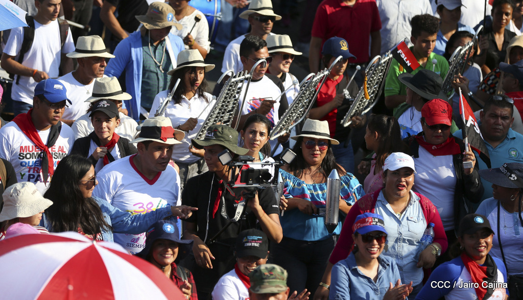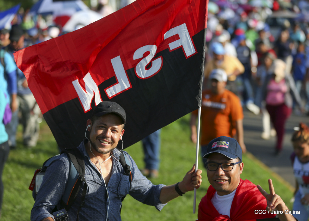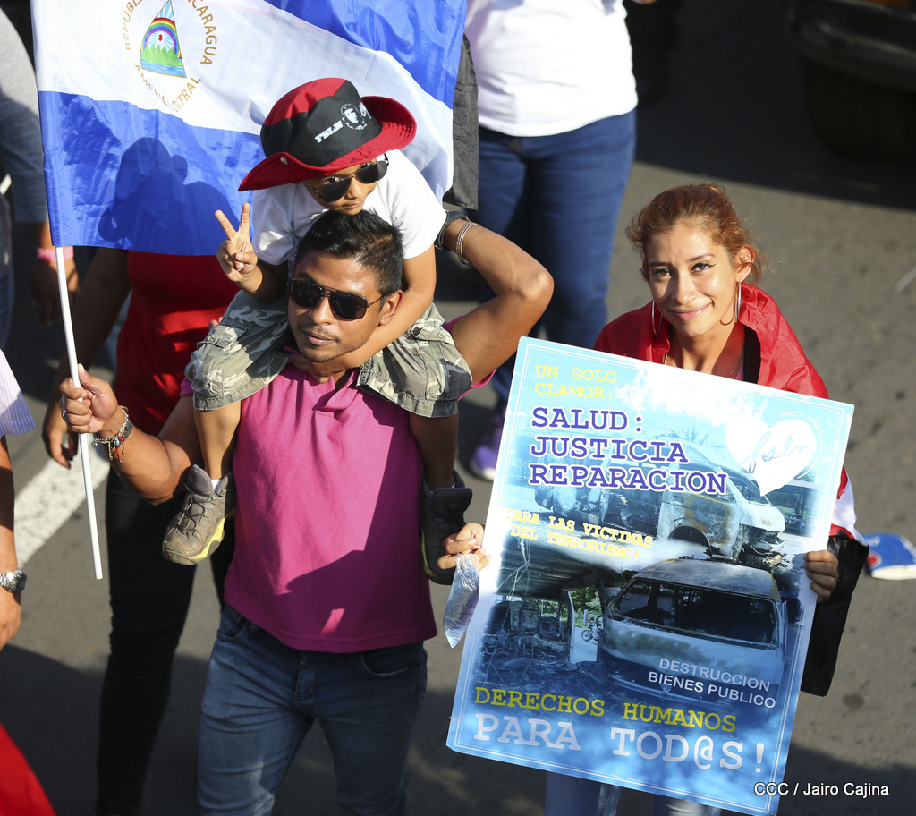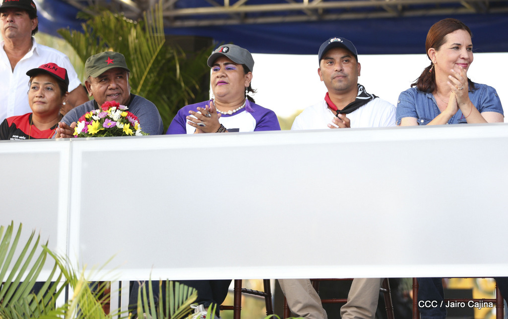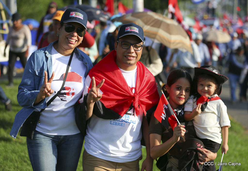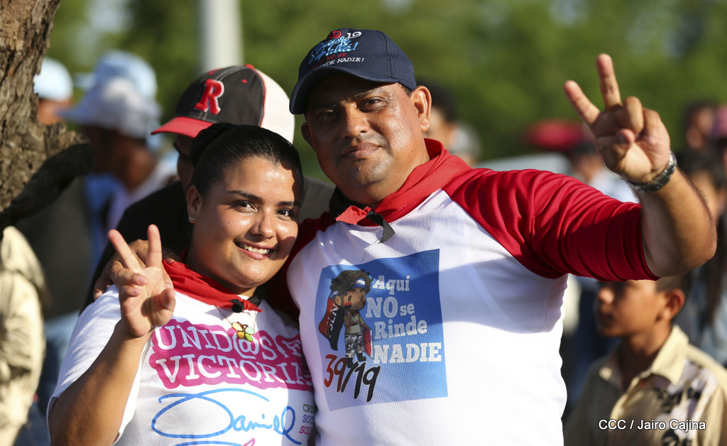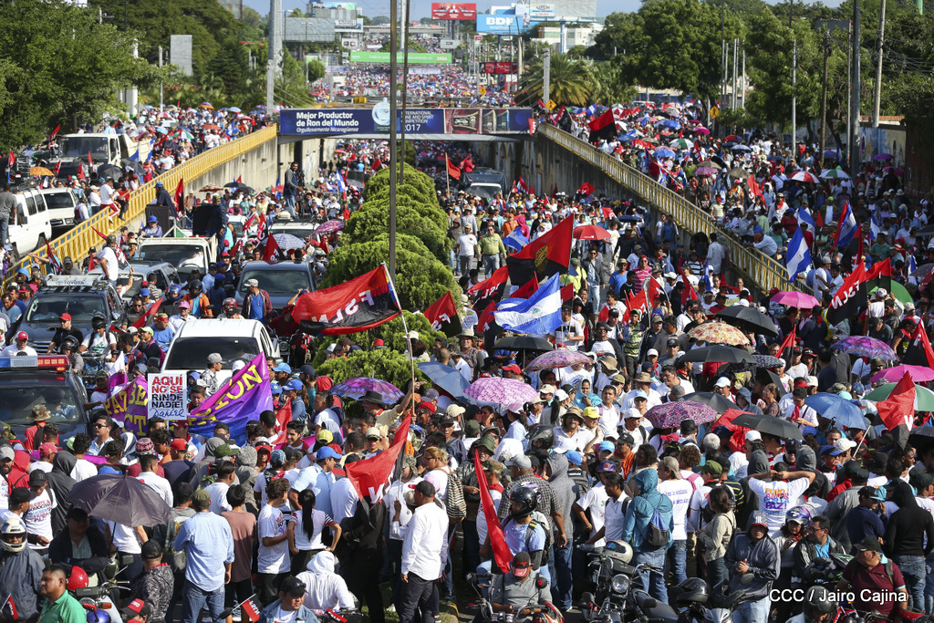 Miles de nicaragüenses marcharon este miércoles por la tarde desde la rotonda Jean Paul Genie hasta la Avenida de Bolívar y Chávez, donde fueron recibidos por nueve alcaldes de Managua, encabezados por la compañera Guiomar Irías, presidente ejecutiva de INIFOM, para ratificar su compromiso por la paz, la justicia y el resurgir de la Nación.