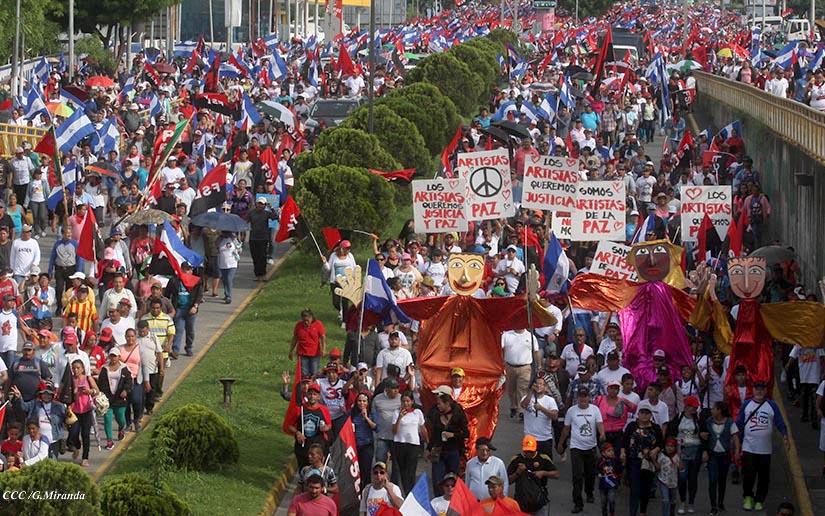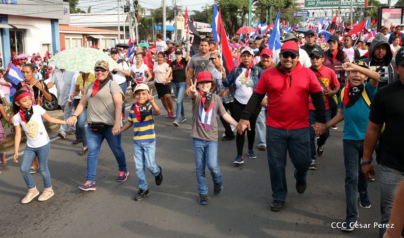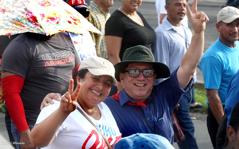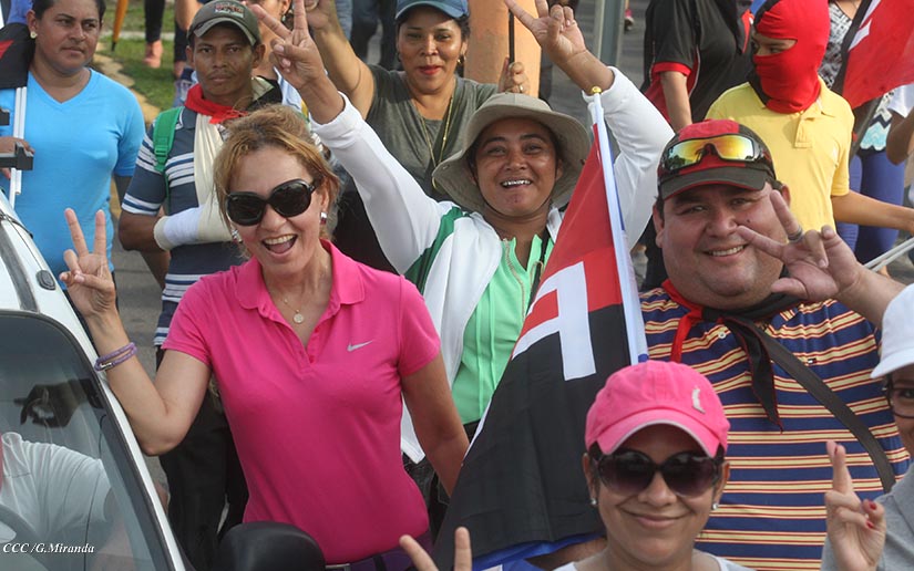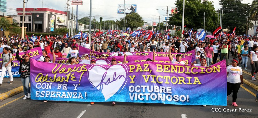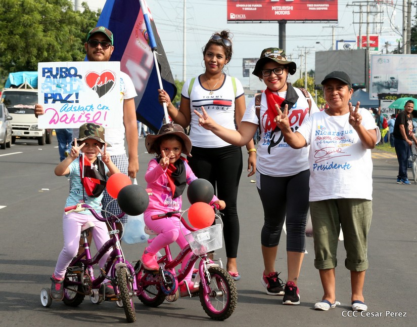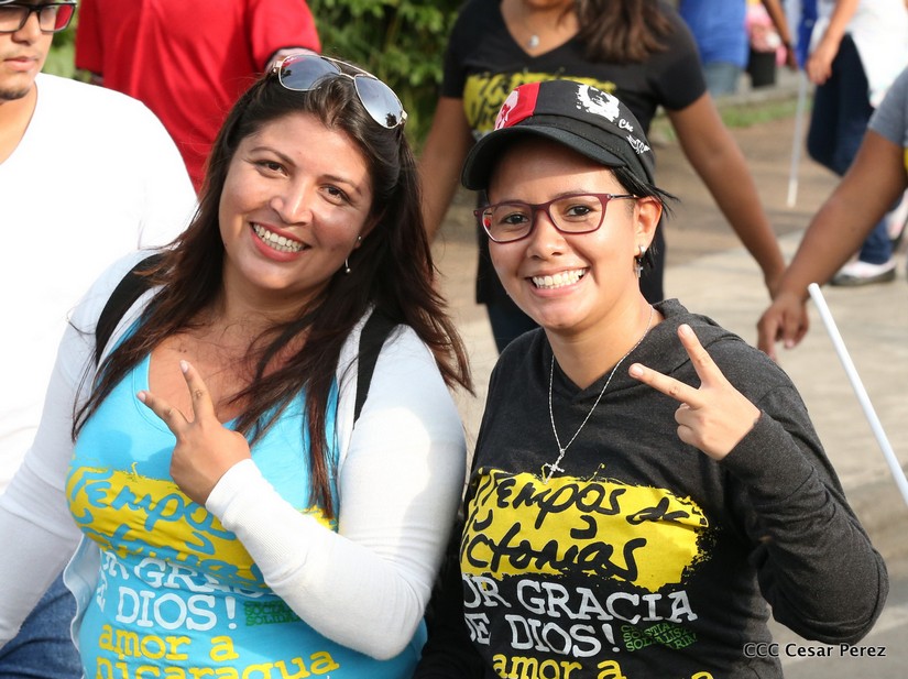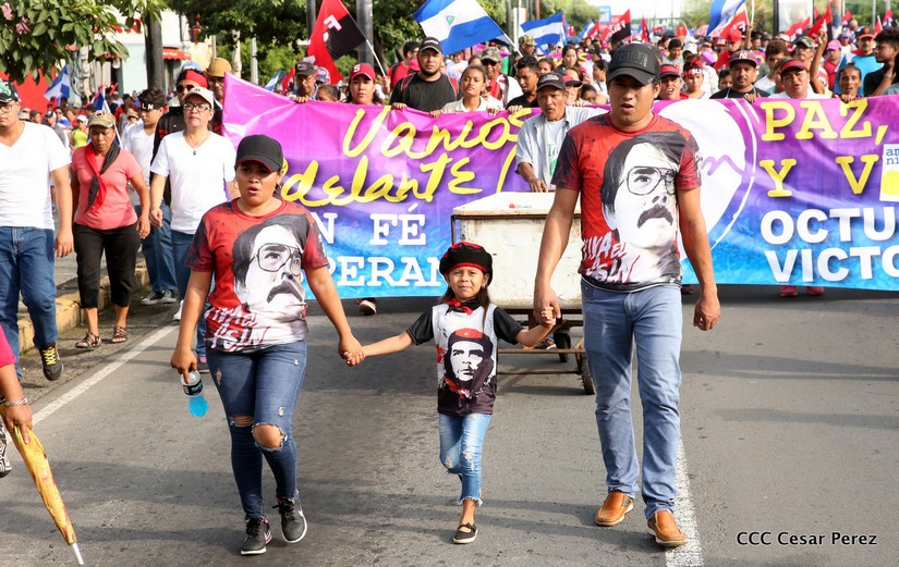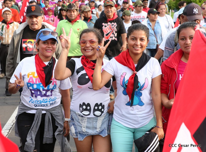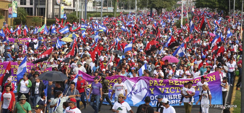 Cientos de miles de capitalinos se congregaron la tarde de este sábado 13 de Octubre en la Rotonda Jean Paul Genie para participar de la caminata en la que se reafirma el compromiso con la paz. Al finalizar la caminata escucharon el mensaje del Presidente Daniel Ortega en el marco de la santificación de Monseñor Romero.