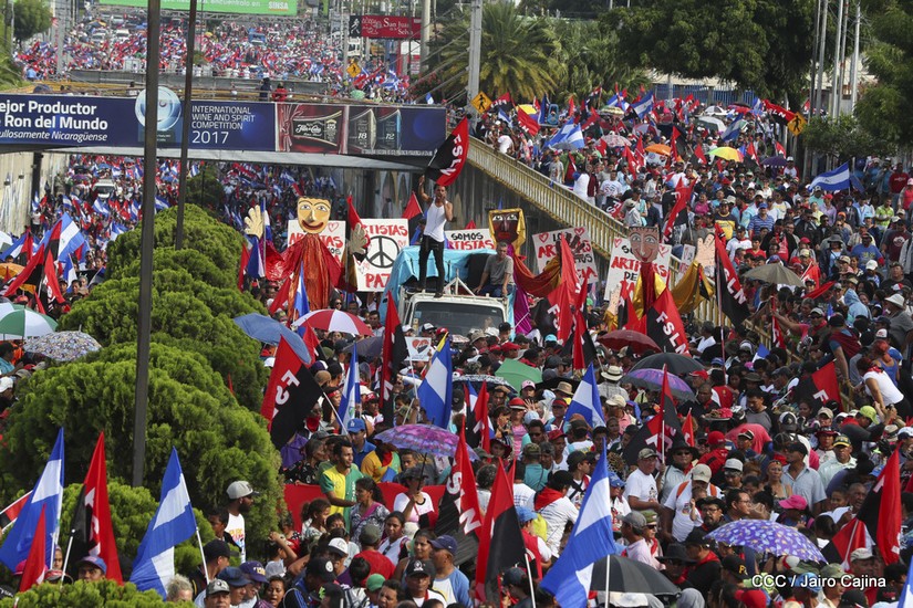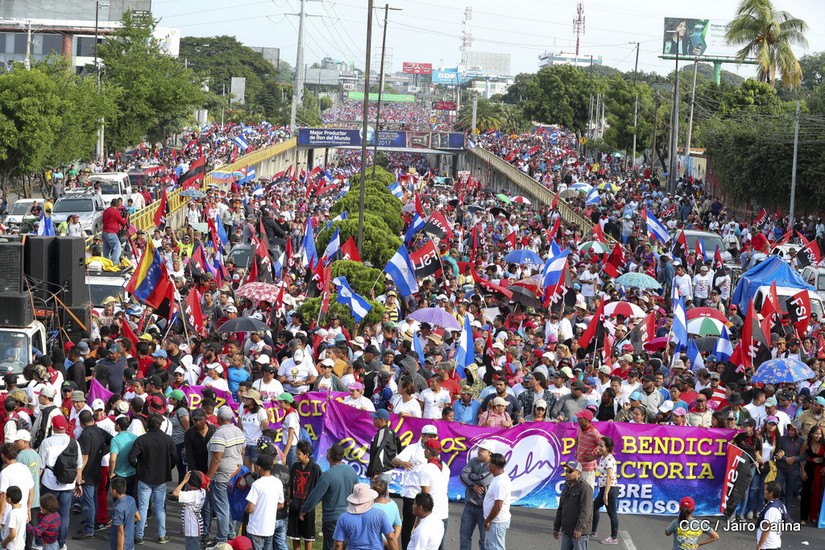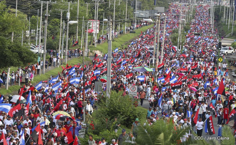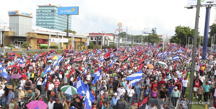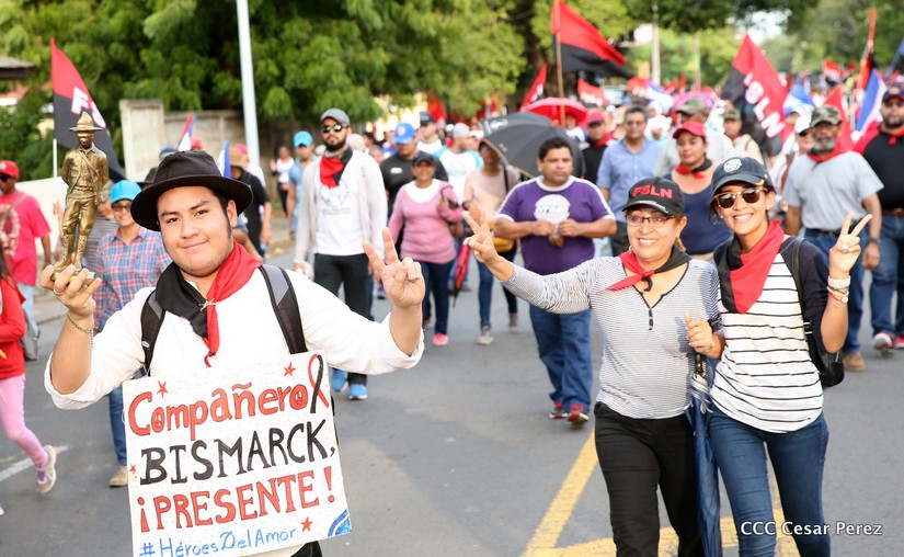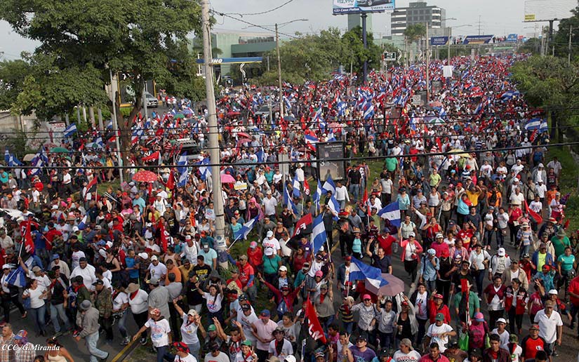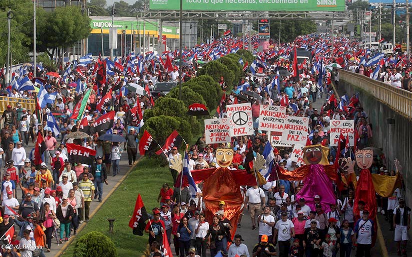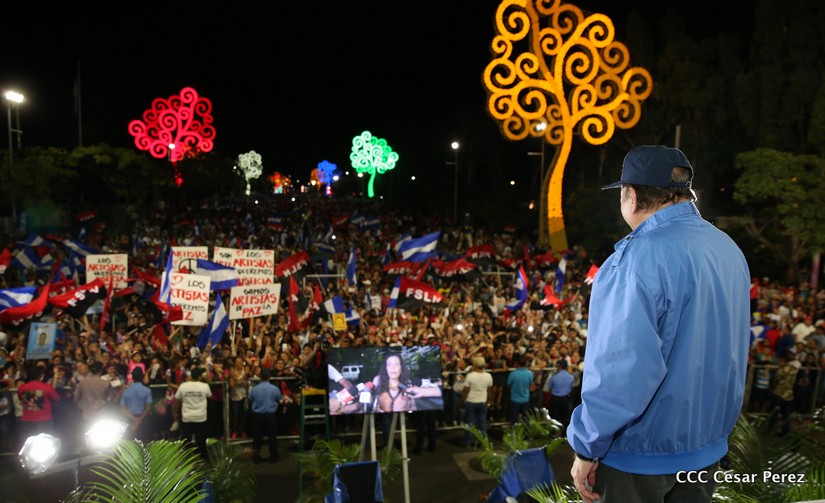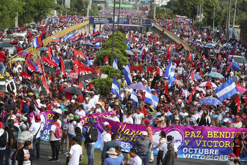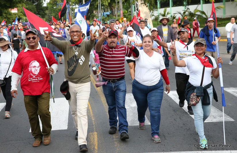 Cientos de miles de capitalinos se congregaron la tarde de este sábado 13 de Octubre en la Rotonda Jean Paul Genie para participar de la caminata en la que se reafirma el compromiso con la paz. Al finalizar la caminata escucharon el mensaje del Presidente Daniel Ortega en el marco de la santificación de Monseñor Romero.