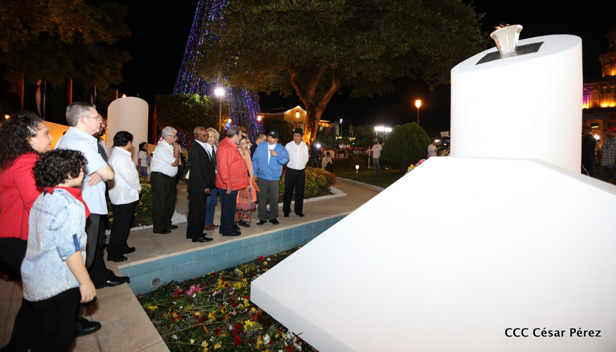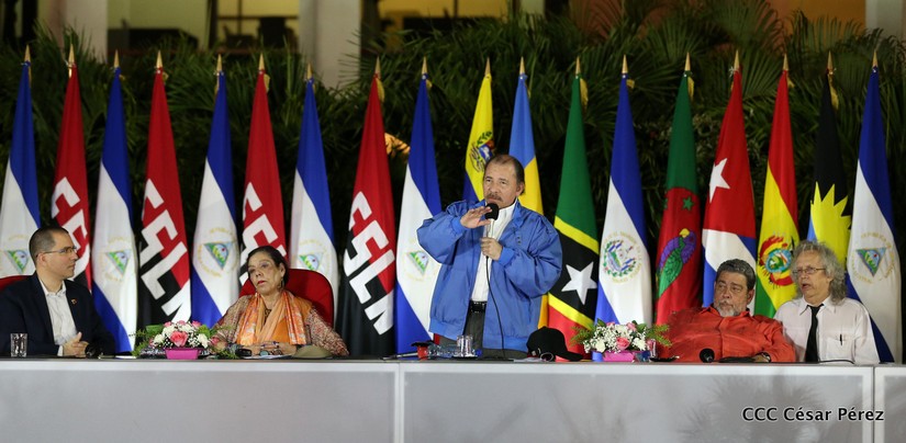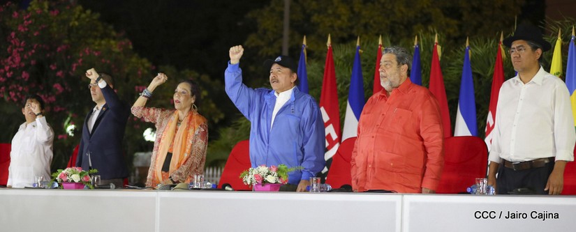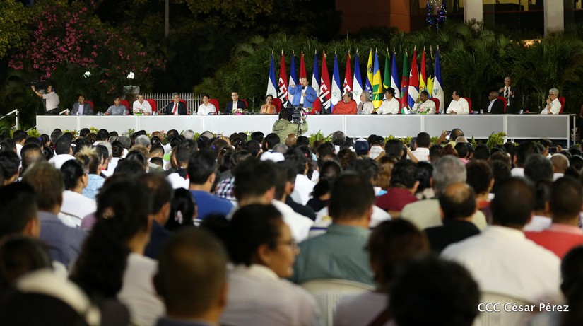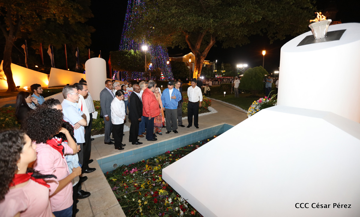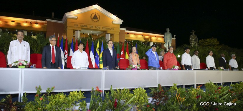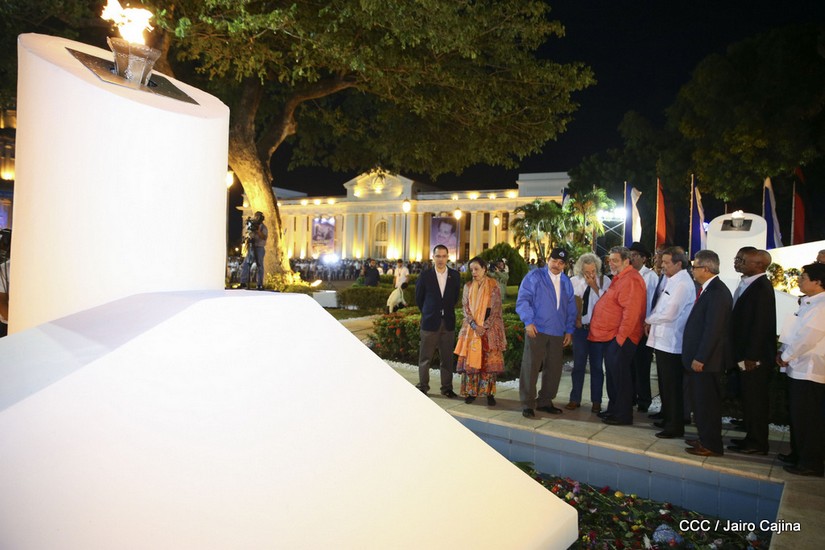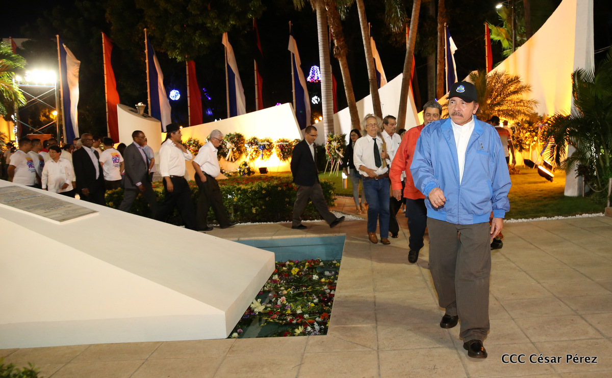 El Presidente de la República, Comandante Daniel Ortega y la Vicepresidenta compañera Rosario Murillo, acompañados de los cancilleres participantes en la XVII Reunión Ordinaria del Consejo Político de la Alianza Bolivariana de los Pueblos (ALBA- TCP), presidieron el homenaje al Comandante Carlos Fonseca Amador, en el 42 aniversario de su tránsito a la inmortalidad.