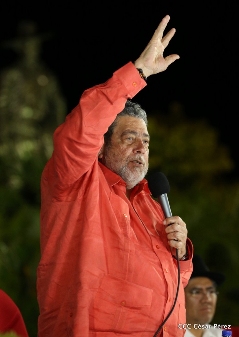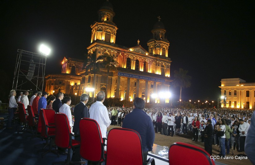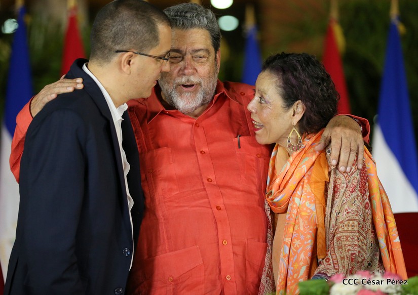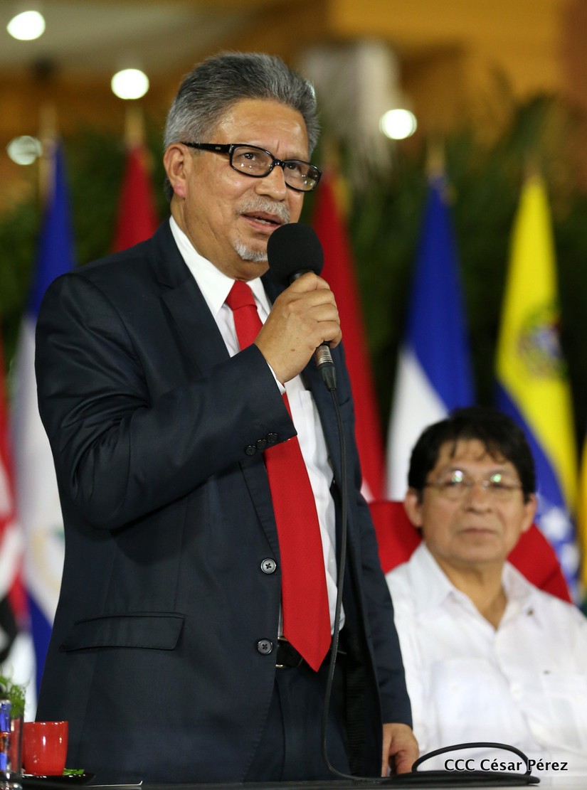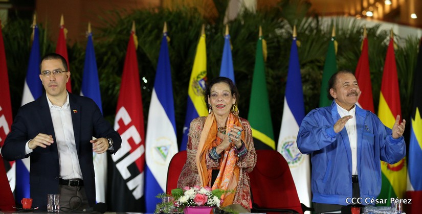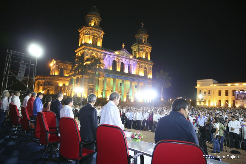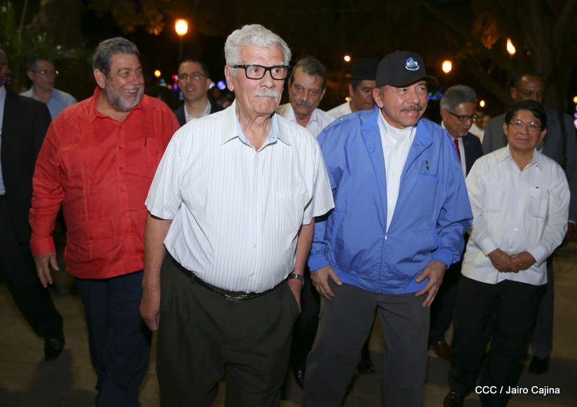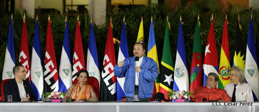 El Presidente de la República, Comandante Daniel Ortega y la Vicepresidenta compañera Rosario Murillo, acompañados de los cancilleres participantes en la XVII Reunión Ordinaria del Consejo Político de la Alianza Bolivariana de los Pueblos (ALBA- TCP), presidieron el homenaje al Comandante Carlos Fonseca Amador, en el 42 aniversario de su tránsito a la inmortalidad.