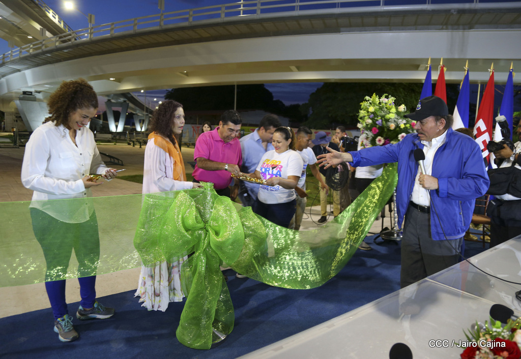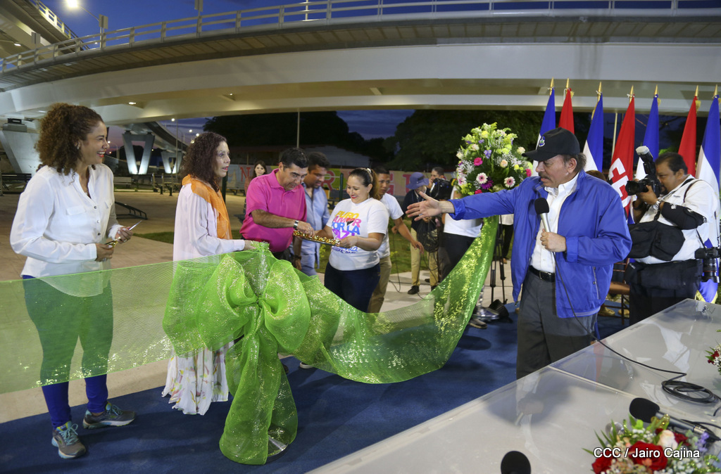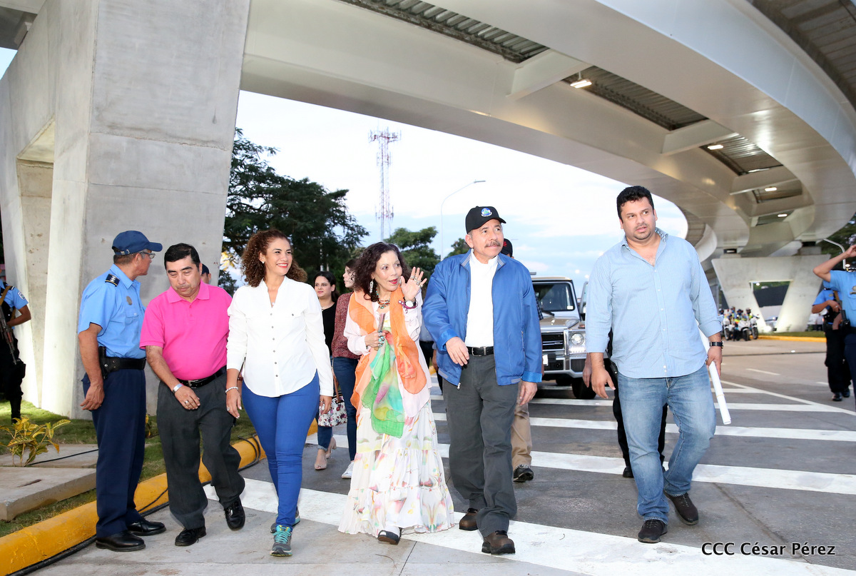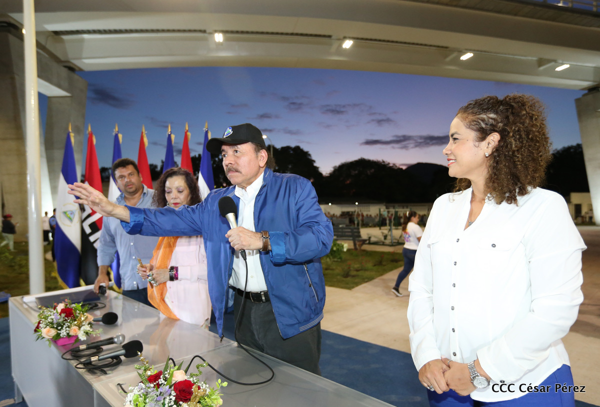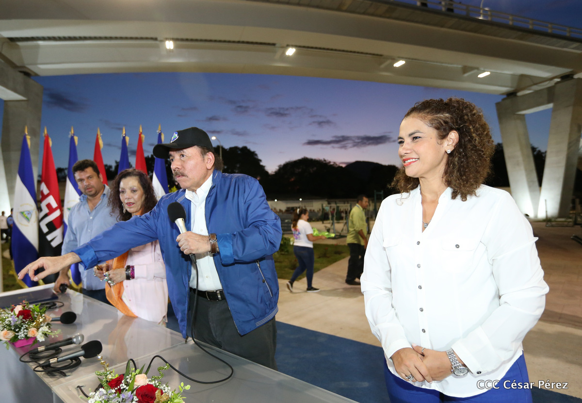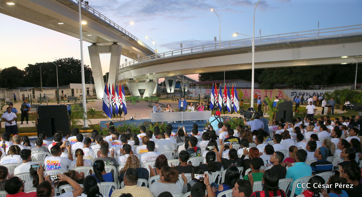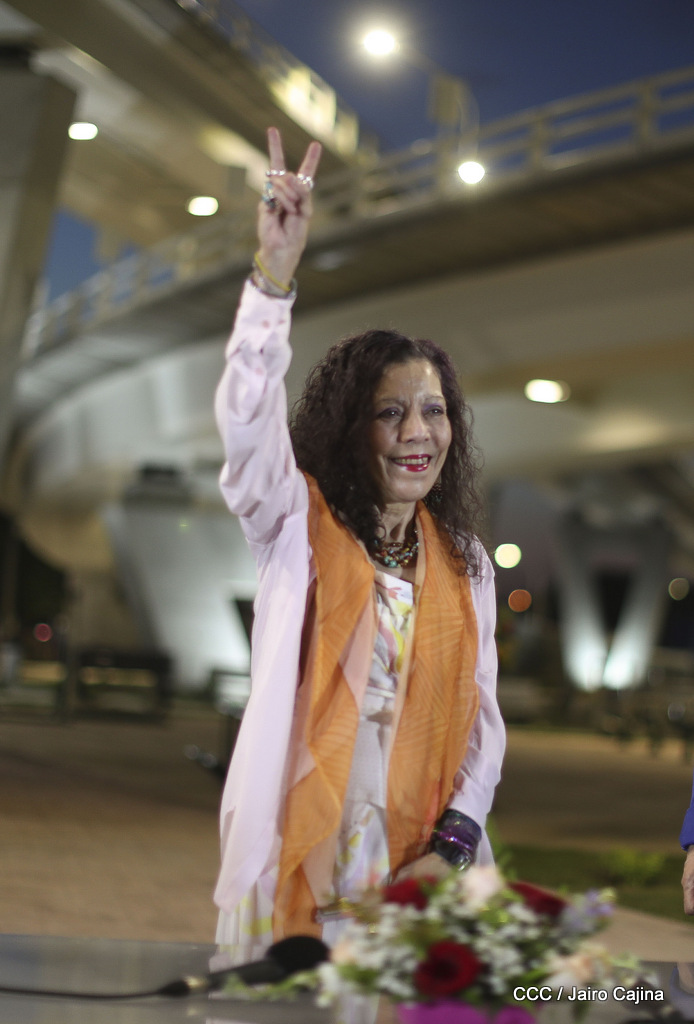 Fíjense cómo cambia Managua y en qué tiempos está cambiando Managua y con qué gobierno está cambiando Managua. De Las Piedrecitas al Luis Alfonso Velásquez, al Salvador Allende, a la avenida de Bolívar a Chávez, al Estadio Denis Martínez, al Estadio de Fútbol, al Polideportivo Alexis Argüello, al Centro de Piscinas Michel Richardson, al Paseo Xolotlán. ¡Cómo va cambiando Managua, y todos los parques liceos deportivos que tenemos en los barrios de Managua y en los departamentos de nuestro país, es decir creciendo Nicaragua en todos los campos!