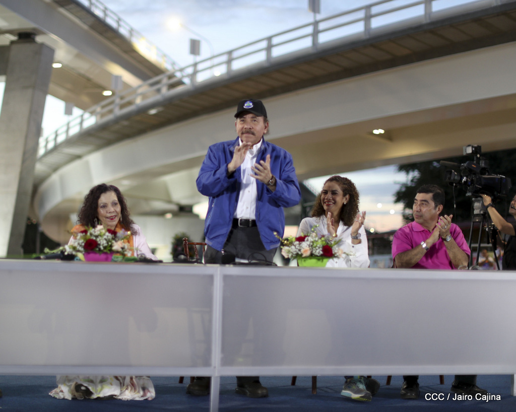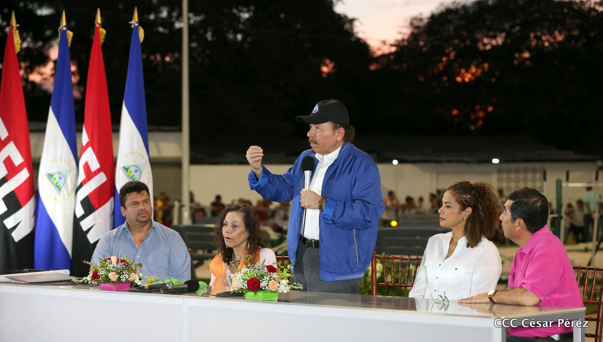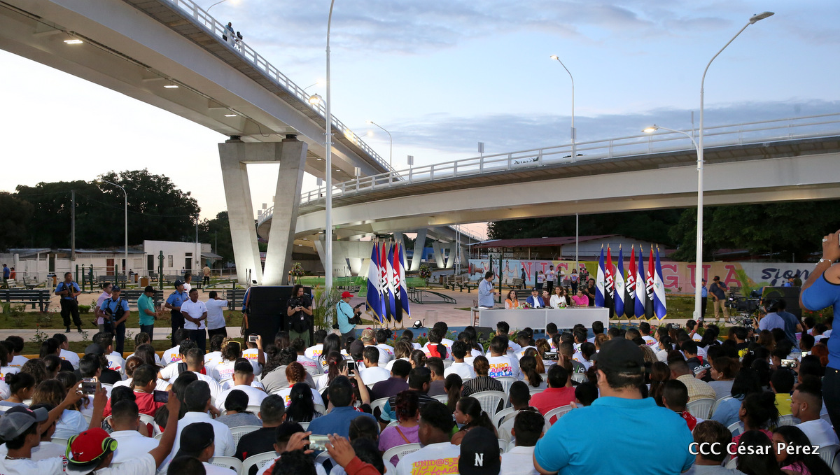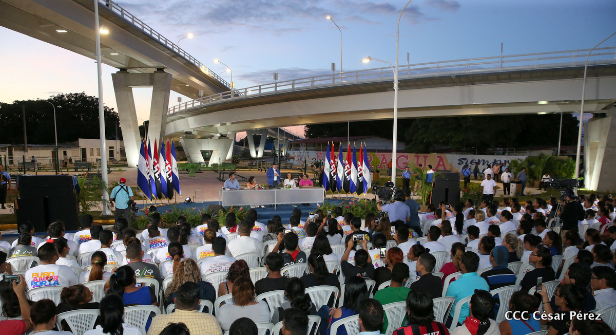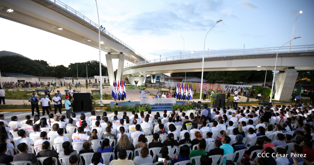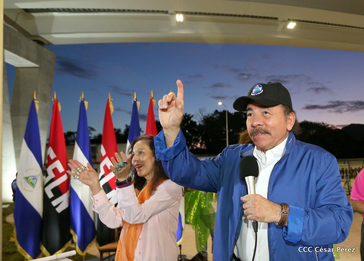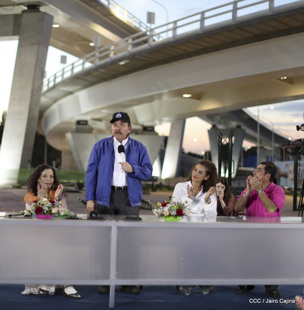 Fíjense cómo cambia Managua y en qué tiempos está cambiando Managua y con qué gobierno está cambiando Managua. De Las Piedrecitas al Luis Alfonso Velásquez, al Salvador Allende, a la avenida de Bolívar a Chávez, al Estadio Denis Martínez, al Estadio de Fútbol, al Polideportivo Alexis Argüello, al Centro de Piscinas Michel Richardson, al Paseo Xolotlán. ¡Cómo va cambiando Managua, y todos los parques liceos deportivos que tenemos en los barrios de Managua y en los departamentos de nuestro país, es decir creciendo Nicaragua en todos los campos!
