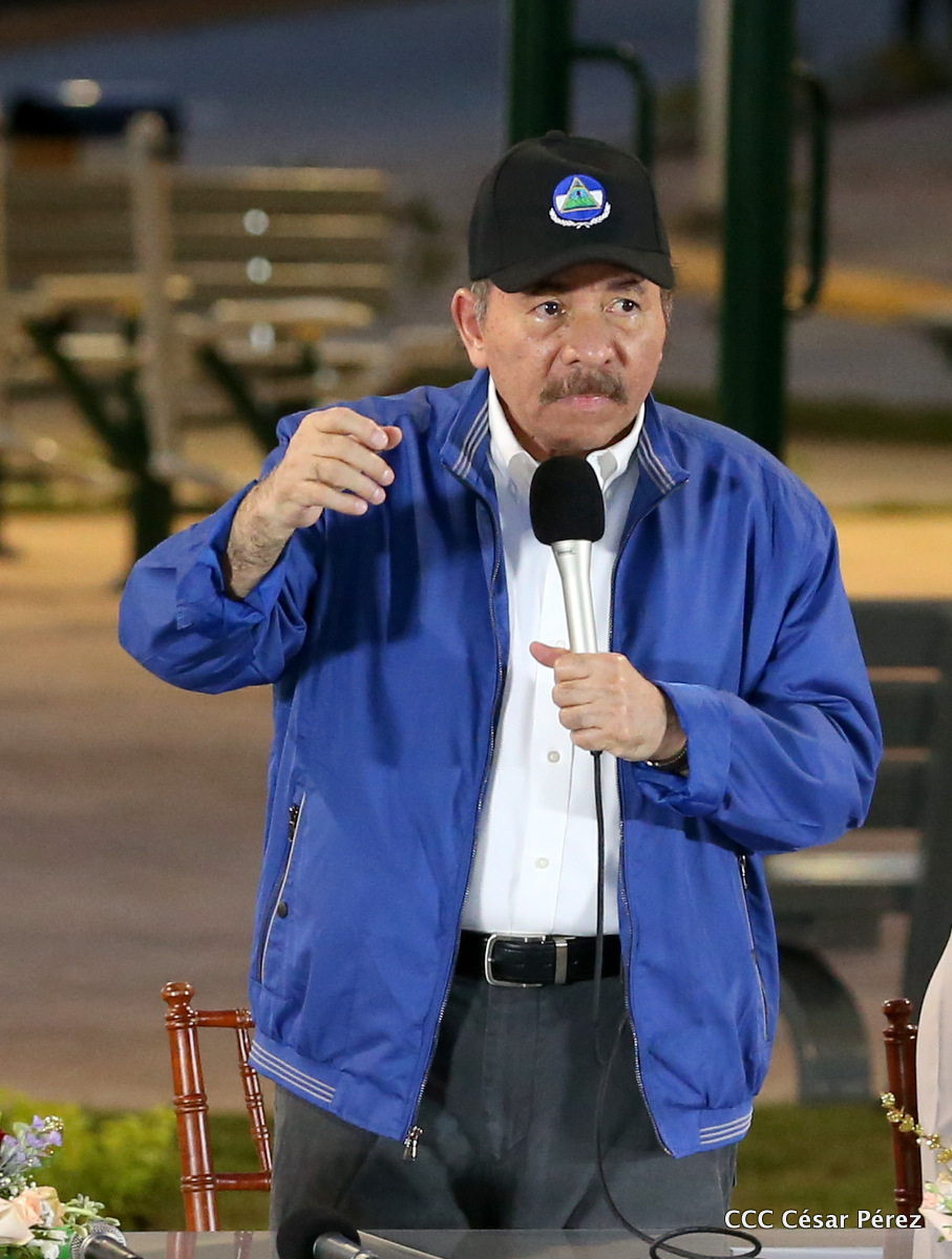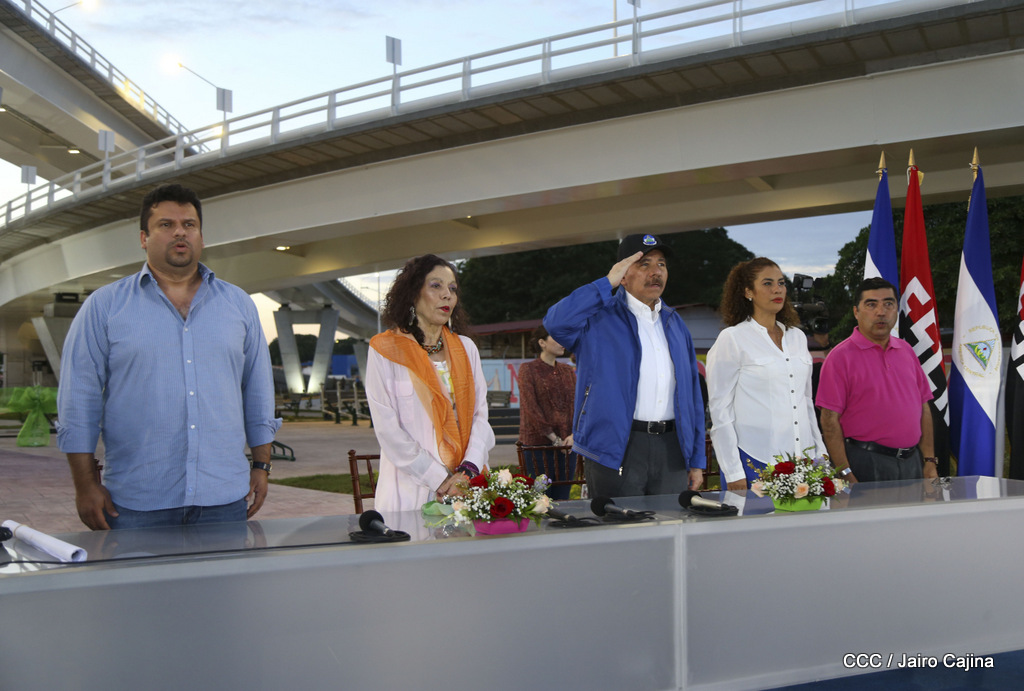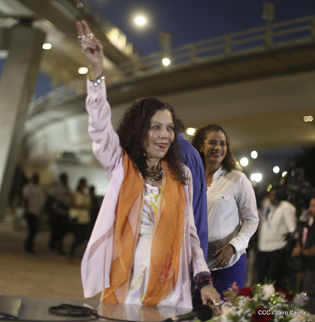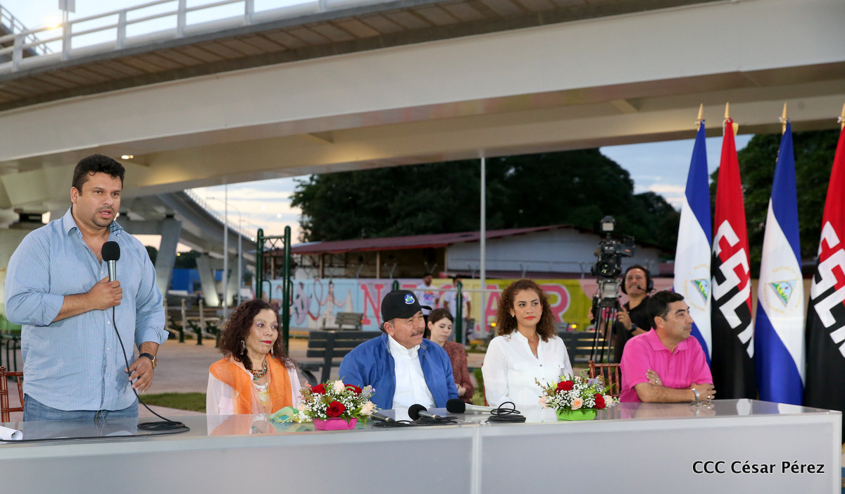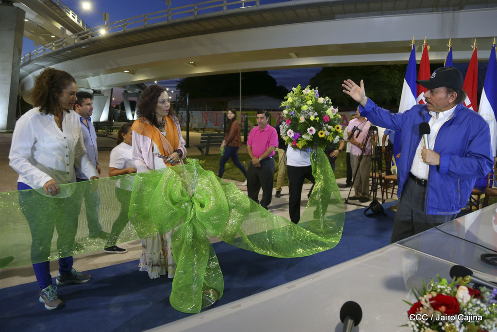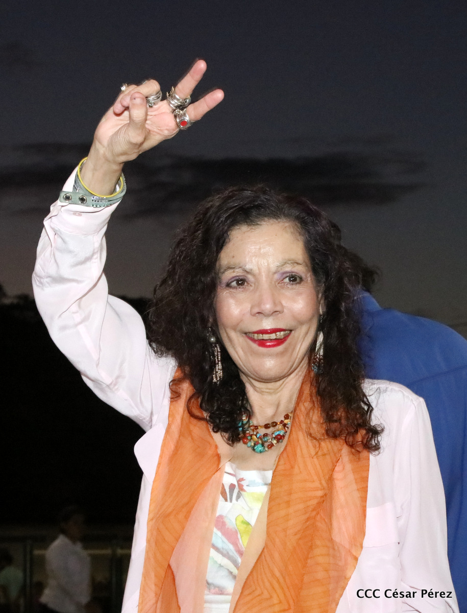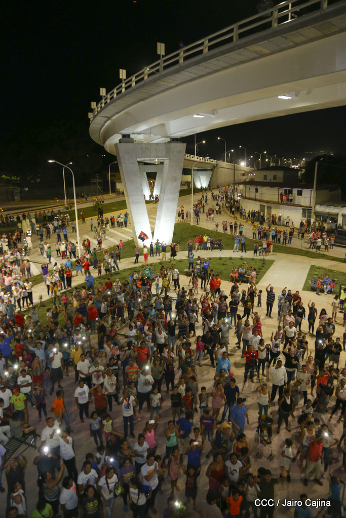 Fíjense cómo cambia Managua y en qué tiempos está cambiando Managua y con qué gobierno está cambiando Managua. De Las Piedrecitas al Luis Alfonso Velásquez, al Salvador Allende, a la avenida de Bolívar a Chávez, al Estadio Denis Martínez, al Estadio de Fútbol, al Polideportivo Alexis Argüello, al Centro de Piscinas Michel Richardson, al Paseo Xolotlán. ¡Cómo va cambiando Managua, y todos los parques liceos deportivos que tenemos en los barrios de Managua y en los departamentos de nuestro país, es decir creciendo Nicaragua en todos los campos!