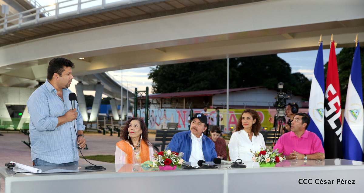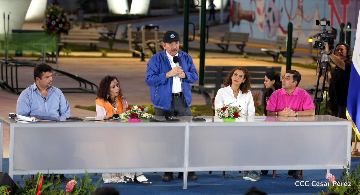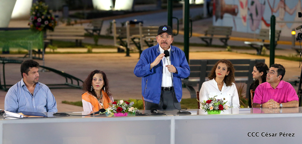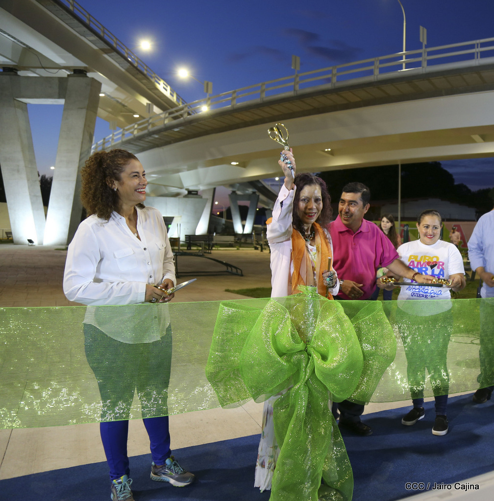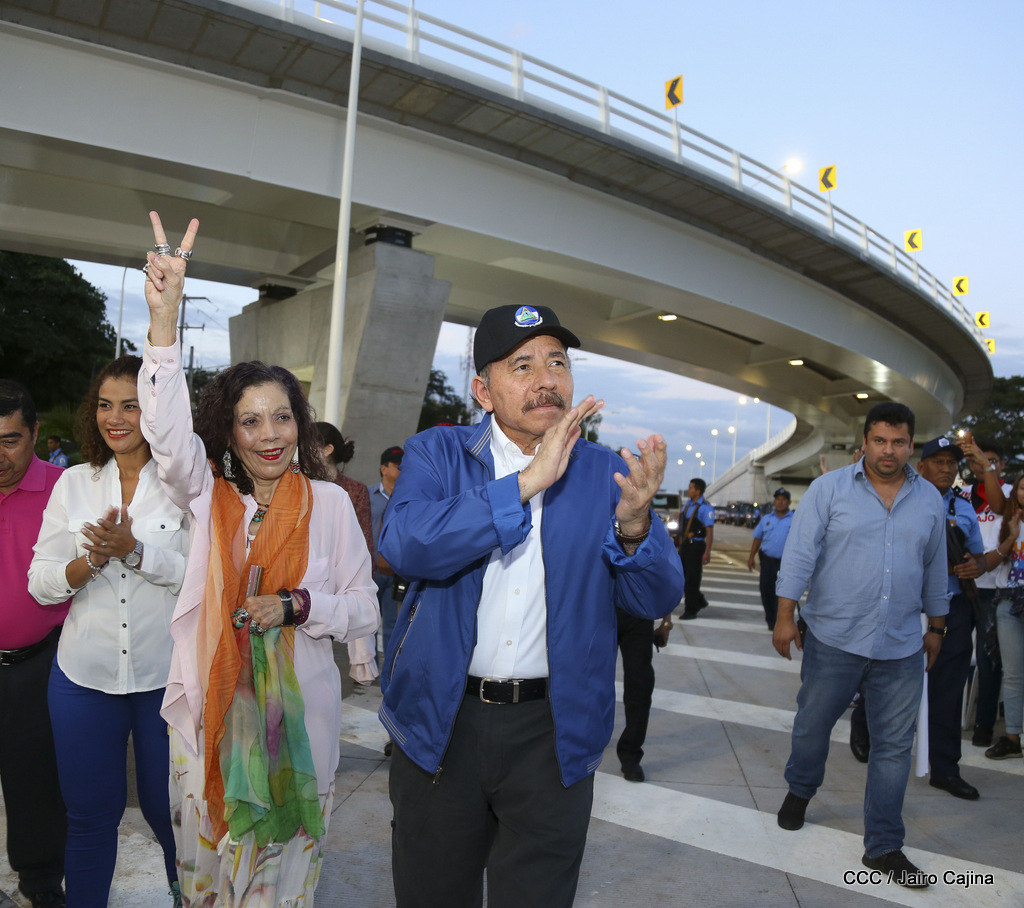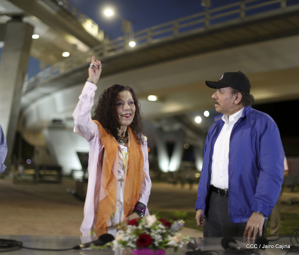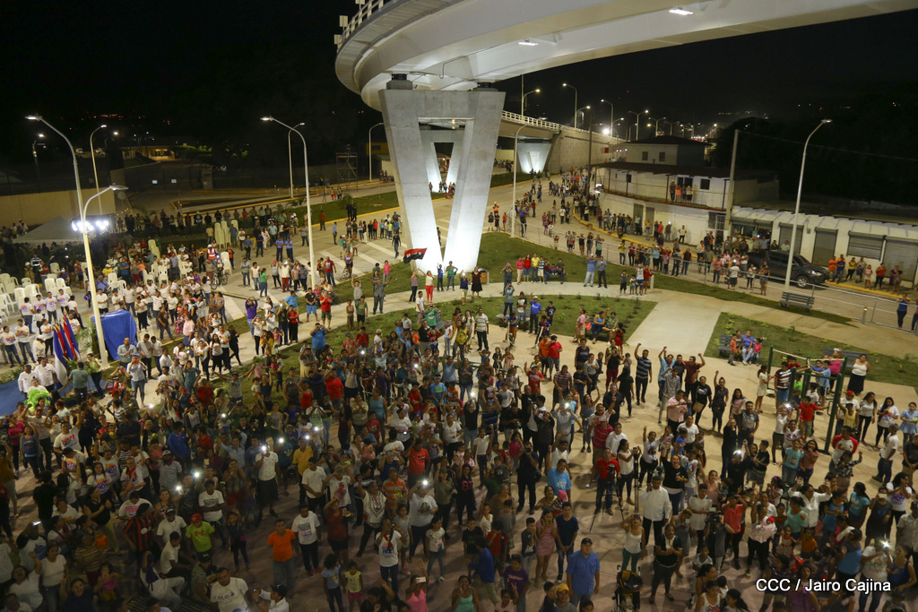Fíjense cómo cambia Managua y en qué tiempos está cambiando Managua y con qué gobierno está cambiando Managua. De Las Piedrecitas al Luis Alfonso Velásquez, al Salvador Allende, a la avenida de Bolívar a Chávez, al Estadio Denis Martínez, al Estadio de Fútbol, al Polideportivo Alexis Argüello, al Centro de Piscinas Michel Richardson, al Paseo Xolotlán. ¡Cómo va cambiando Managua, y todos los parques liceos deportivos que tenemos en los barrios de Managua y en los departamentos de nuestro país, es decir creciendo Nicaragua en todos los campos!
