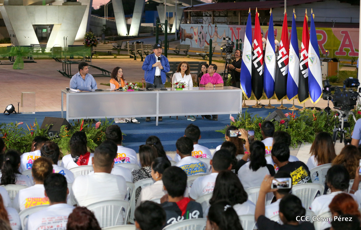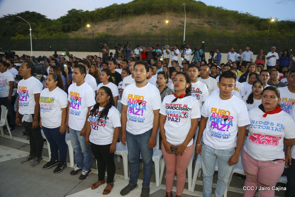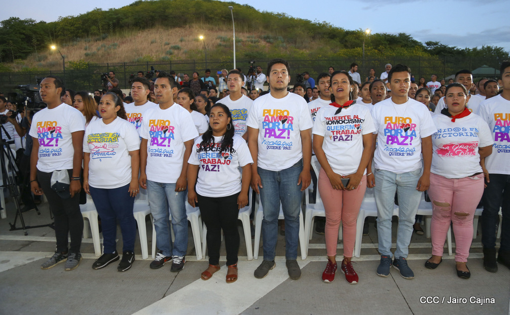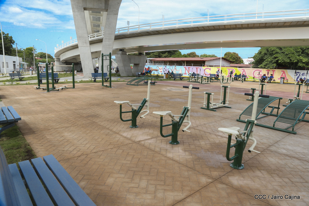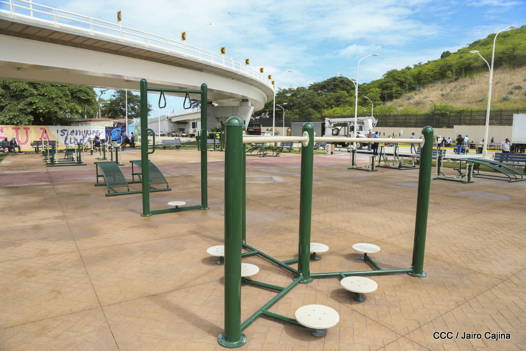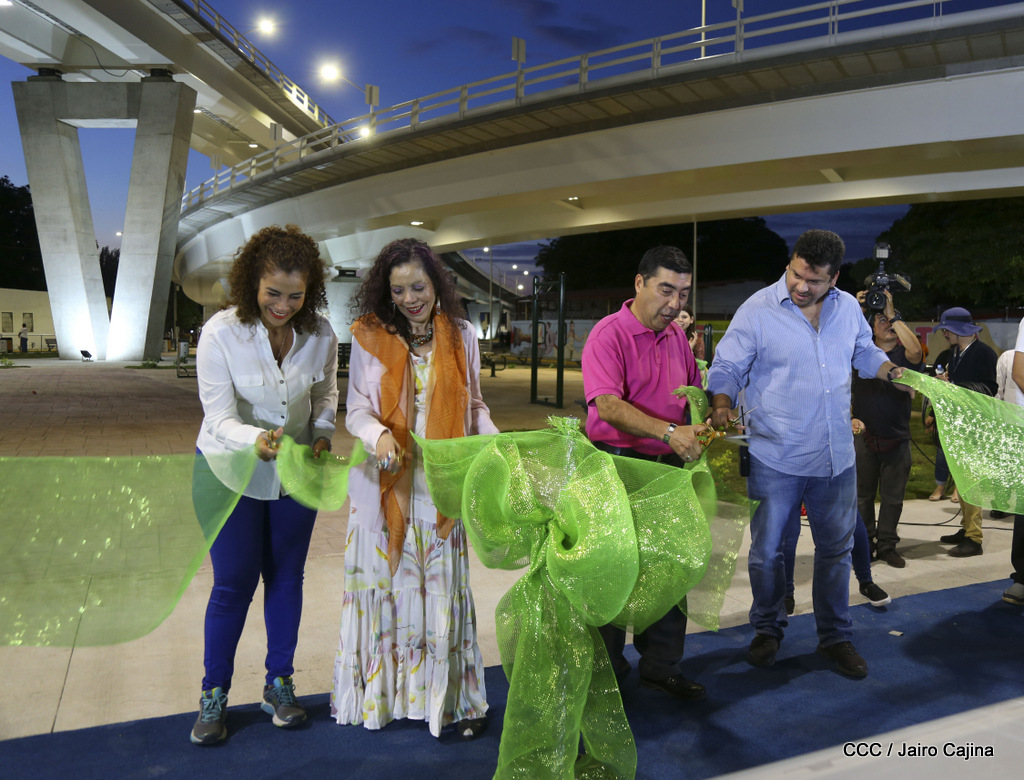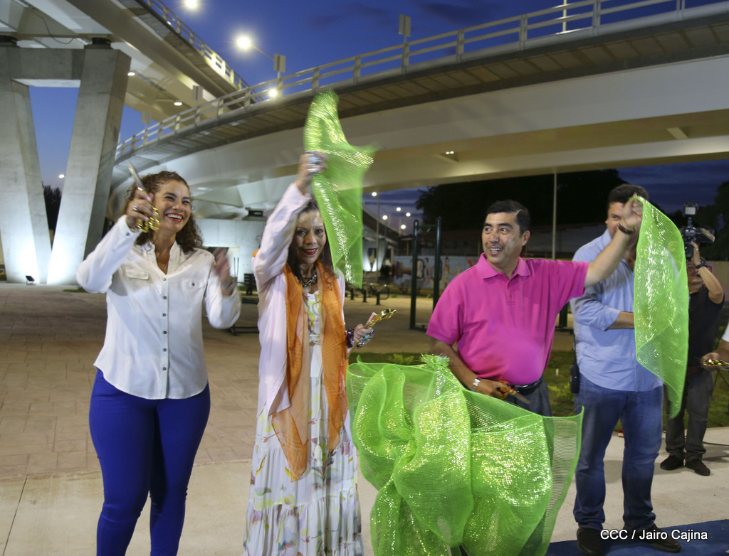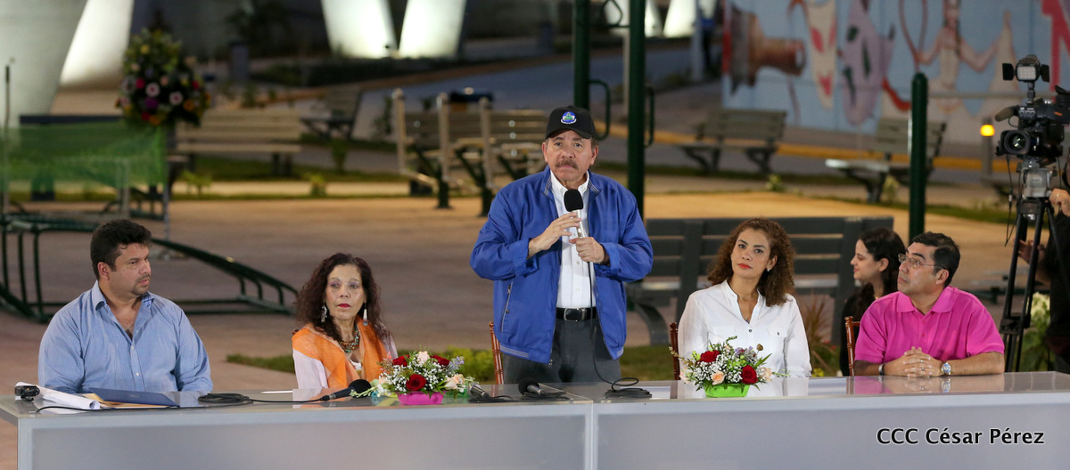 Fíjense cómo cambia Managua y en qué tiempos está cambiando Managua y con qué gobierno está cambiando Managua. De Las Piedrecitas al Luis Alfonso Velásquez, al Salvador Allende, a la avenida de Bolívar a Chávez, al Estadio Denis Martínez, al Estadio de Fútbol, al Polideportivo Alexis Argüello, al Centro de Piscinas Michel Richardson, al Paseo Xolotlán. ¡Cómo va cambiando Managua, y todos los parques liceos deportivos que tenemos en los barrios de Managua y en los departamentos de nuestro país, es decir creciendo Nicaragua en todos los campos!