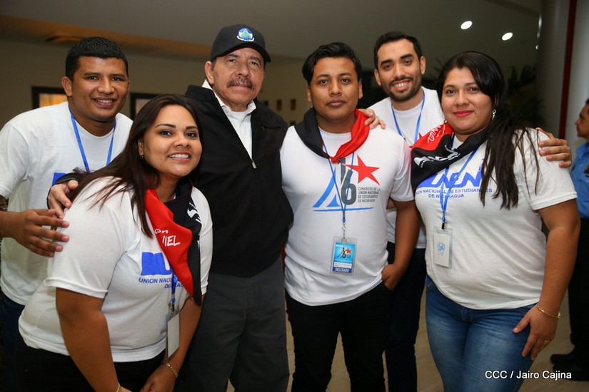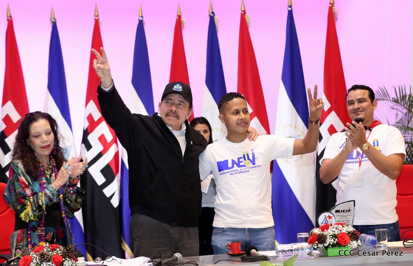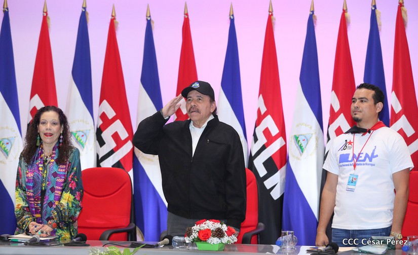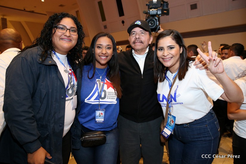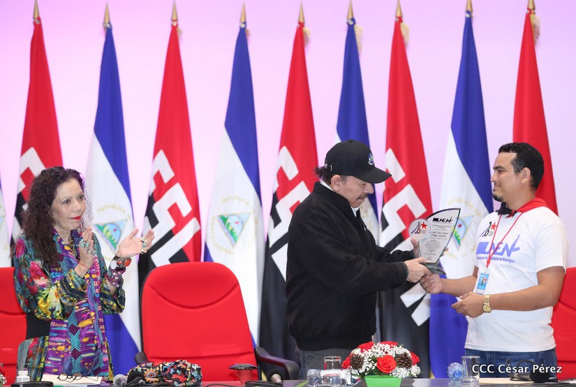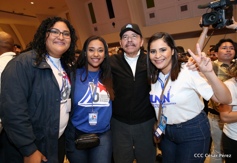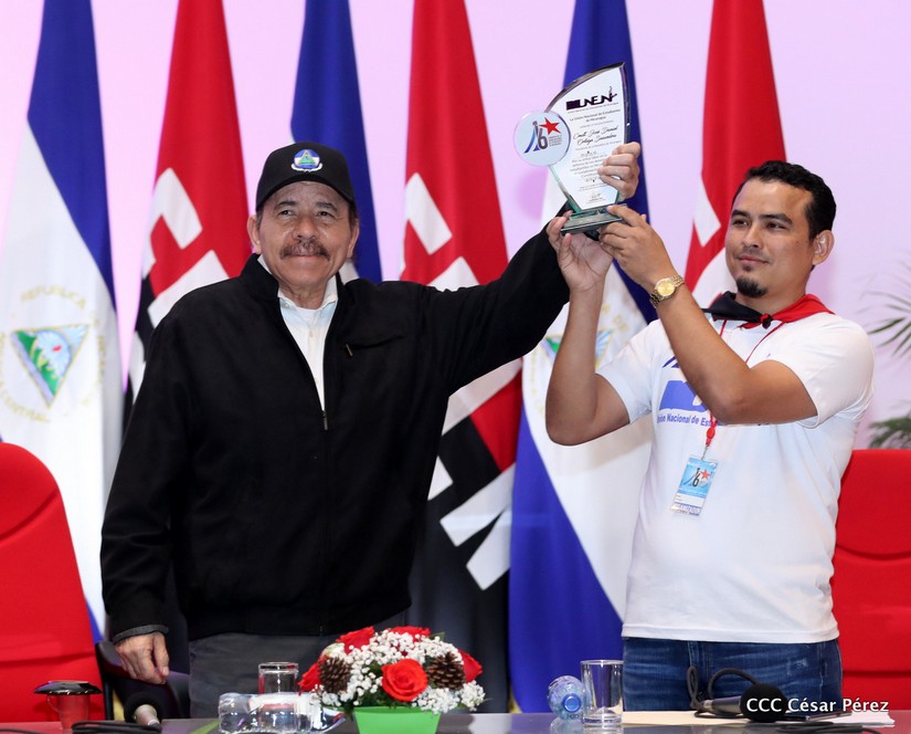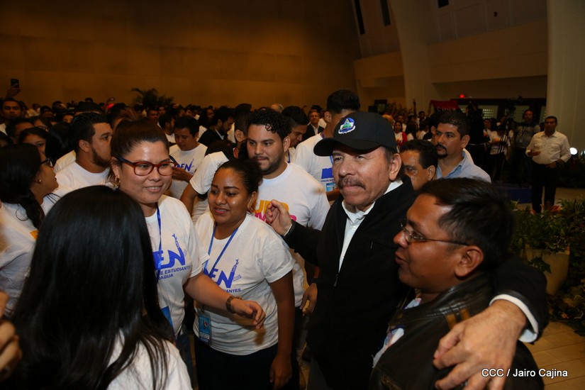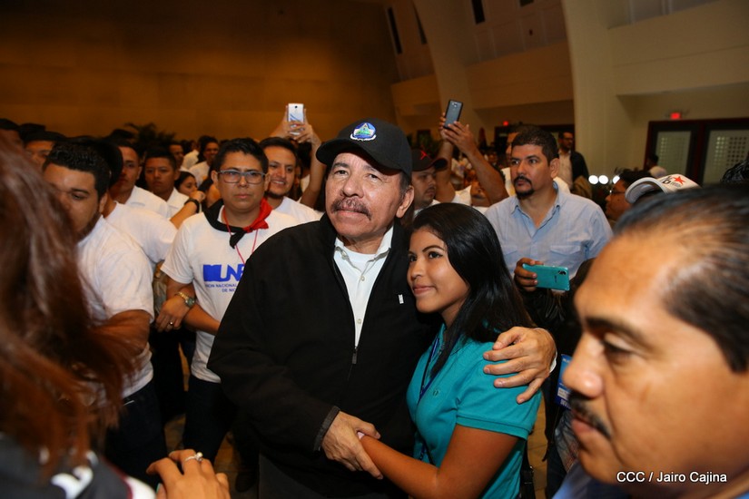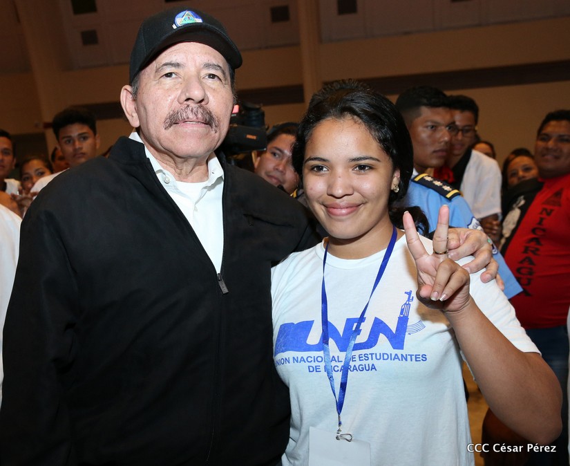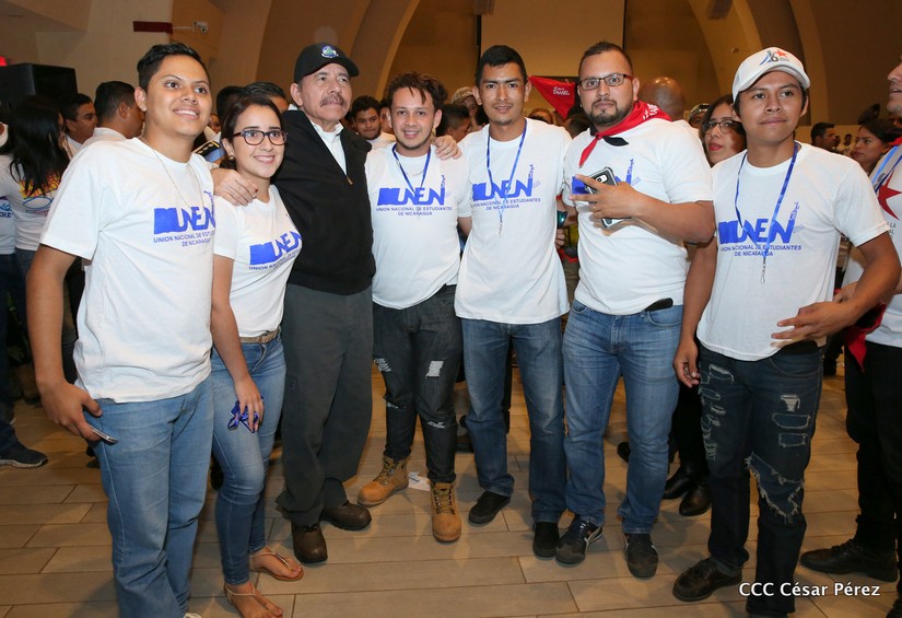 El Presidente de la República, comandante Daniel Ortega Saavedra y la vicepresidenta compañera Rosario Murillo, presidieron la noche de este lunes la clausura del XVI Congreso de la Unión Nacional de Estudiantes de Nicaragua (UNEN).