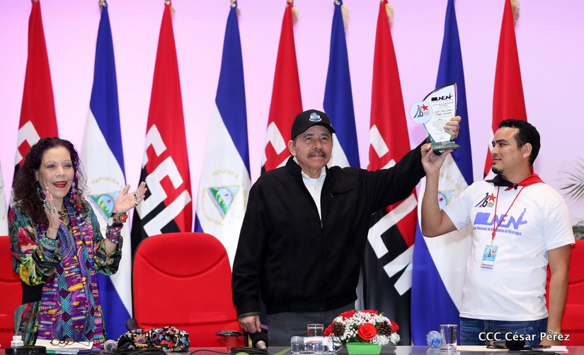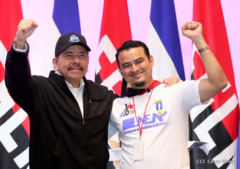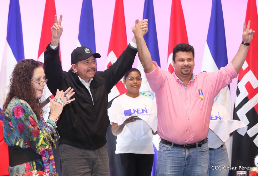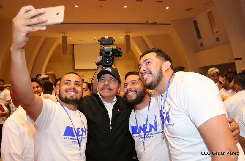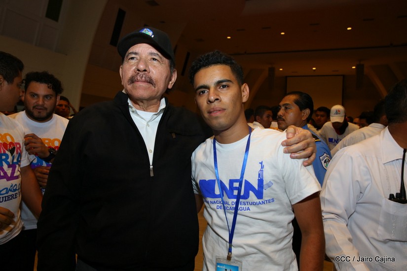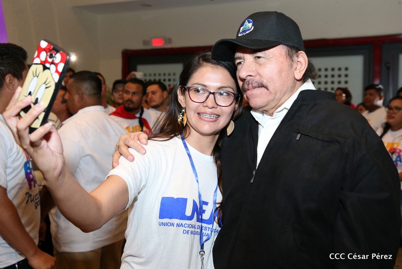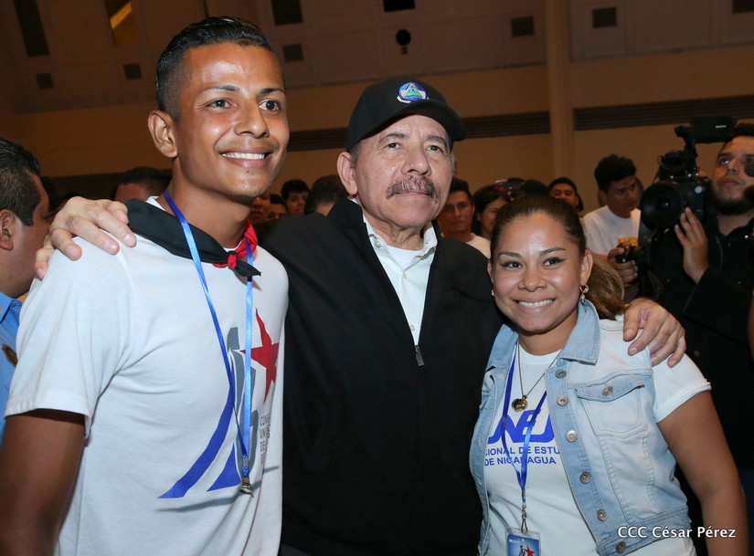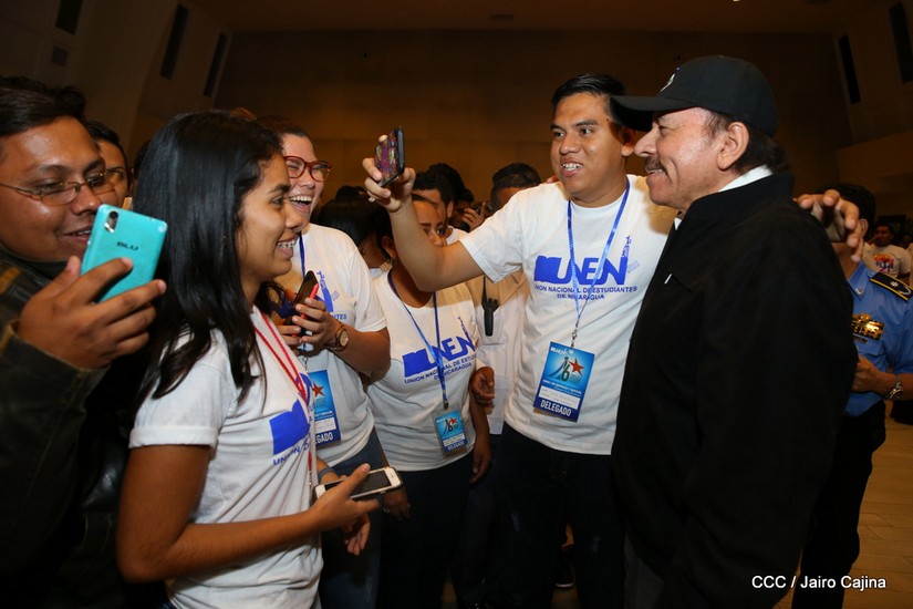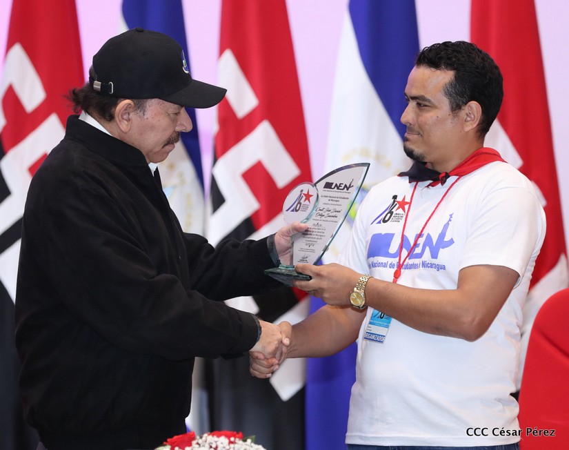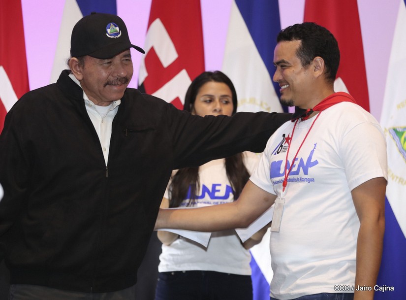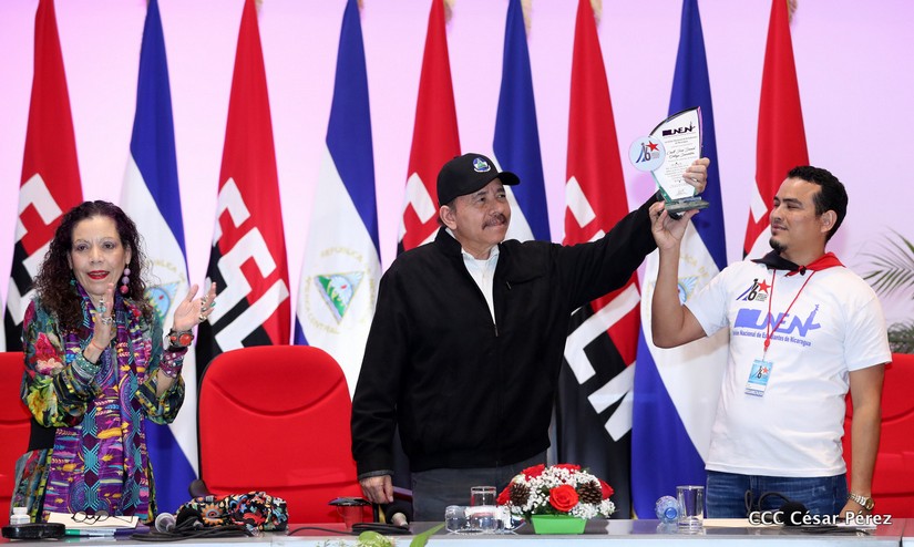 El Presidente de la República, comandante Daniel Ortega Saavedra y la vicepresidenta compañera Rosario Murillo, presidieron la noche de este lunes la clausura del XVI Congreso de la Unión Nacional de Estudiantes de Nicaragua (UNEN).